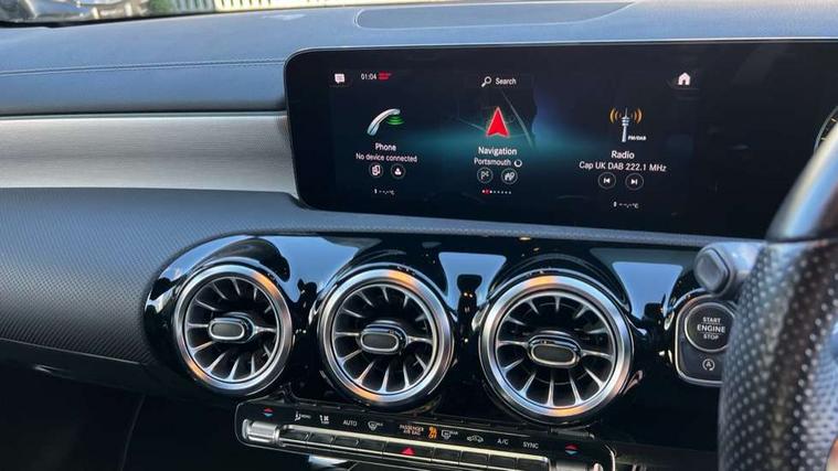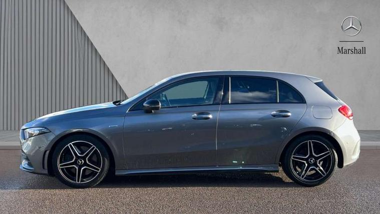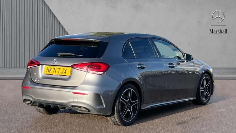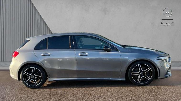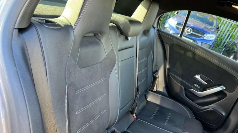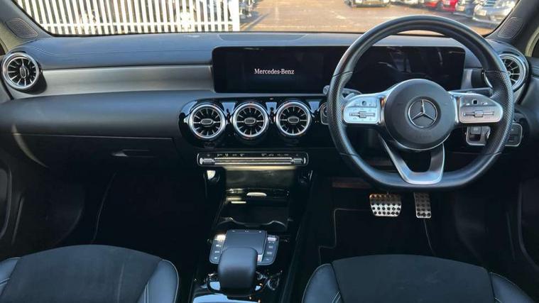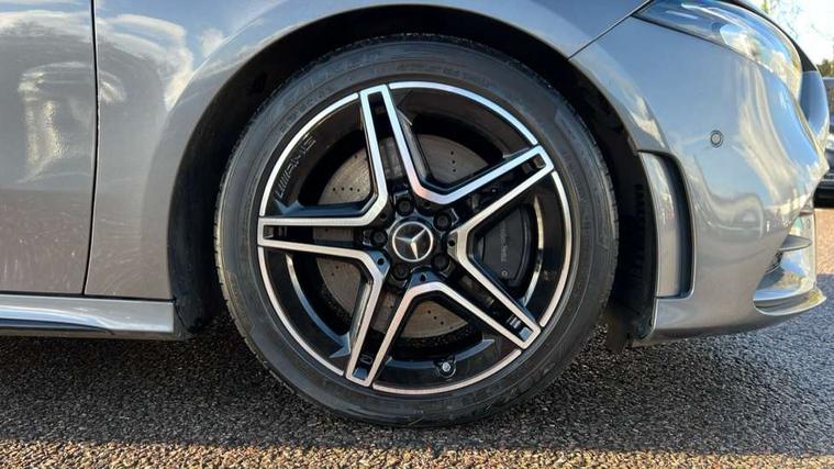 10.25" Digital instrument cluster display screen, 10.25" media display, 180 degree rear view camera with parking guidelines, Active parking assist with visual and audible warning of detected obstacles, Attention assist, Brake pad wear indicator warning light, Car wash mode, Cruise control + speed limiter, Direct steering, Dual bluetooth interfaces, DYNAMIC SELECT with a choice of driving modes (ECO, Comfort, Sport and Individual), ECO start/stop function, Fluid level warning indicator for fuel, oil, coolant and washer fluid, Hard-disk navigation, Hey Mercedes Voice activation, Lamp failure indicator, Lane keeping system, Mercedes me connect including emergency call system, accident recovery, breakdown and maintenance management, Mercedes me remote services, Outside temperature gauge, Owners manual in English, Pre-installation for private car sharing, Preinstallation for Mercedes Benz link, Service indicator (ASSYST), Smartphone integration with Apple CarPlay and Android auto, Speed sensitive power steering, Trip computer, Ultrasonic sensors positioned in the front and rear bumpers, Lowered comfort suspension, Rear axle multi-link, 10 speakers, 2 USB ports (type C) in rear stowage compartment and one in front of center console, DAB Digital radio, MBUX multimedia system with DAB digital radio and touchpad including satellite navigation, Mercedes-Benz sound system - 100W, 4 Electric Front and Rear windows, Adaptive brake lights, AMG bodystyling - Front apron with splitter in chrome, rear apron with chrome trim and chrome visible trim elements in tailpipe, Black weather strip, Body colour bumpers, Body colour door handles, Body colour side skirt, Body coloured door mirrors, Electric adjustable and heated door mirrors with integrated LED side indicators, Exclusive diamond radiator grille, Exhaust system - Twin visible tailpipes in polished stainless steel, Headlamp assist automatic headlamp activation, Heated glass rear windscreen + timer control, High gloss black beltline, LED High level third brake light, LED high performance headlamps with integrated LED daytime running lights, LED tail lamp, Privacy glass, Radio aerial, Rain sensing windscreen wipers with two sensitivity settings, Rear fog lights, Rear wiper, Window line trim strip in high gloss black, 3 Spoke flat bottom leather multi function steering wheel with perforated leather in grip area, 40:20:40 split folding rear seats, Artico man-made leather/Microfibre Dinamica upholstery with contrast stitching in light grey, Auto Mercedes-Benz child seat recognition sensor, Black air vents with surround in silver chrome, Black roof lining, Brushed stainless steel sports pedals with rubber studs, Controller on centre console with chrome surround, Floor mats with black top stitching and embroidered edition logo and piping in light grey, Front centre armrest with storage compartment, Front seat backs luggage nets, Front seat cushion length adjustment, Galvanished gear shift paddles on steering wheel, Heated front seats, Height/reach adjustable steering column, Illuminated front door sills with changeable cover, Interior lighting - 64 colour Ambient lighting, Interior mirror with reading lamps in black and frameless, Manual height adjustable front seats, Rear armrest with 2 cupholders, Rear head restraints, Seat occupancy sensor for front passenger seat, Sports seats with integrated headrests, Stowage compartment in centre console with retractable cover, Sunvisors with illuminated vanity mirrors, Touchpad on center console, Twin front cupholders, Two zone thermotronic luxury automatic climate control, Light and sight pack - A Class, Mirror package - A Class, Night pack - A Class Saloon/Hatchback, Seat comfort pack - A Class, 3 rear 3 point seatbelts, ABS with Brake Assist, Active bonnet, Active brake assist includes forward collision warning system with autonomous braking, Adaptive brake assist with hold function and hill start assist, Black seatbelts, Childproof locks manually operated for rear doors and electrically operated for rear power windows, Crash responsive emergency lighting, Driver and passenger head and side airbags, Drivers knee airbag, Dual stage driver/passenger airbags, Electronic parking brake, ESP curve dynamic assist, ESP with ASR, Front and rear seatbelt reminder, Front brake callipers with Mercedes Benz lettering, ISOFIX and top tether child seat fixing points in two outer rear seats, Perforated front brake discs, Tyre pressure monitoring system, Warning triangle and first aid kit, Window airbags, Alarm system/interior protection/immobiliser, Keyless entry lock/unlock, Keyless Go, Remote central locking and crash sensor with emergency opening function, Urban guard vehicle protection system with immobiliser and interior protection, Matrix look light longitudinal grain aluminium trim element, 18" AMG 5 twin spoke light alloy wheels aerodynamically optimised painted in black with highsheen finish, Summer tyres, Tirefit sealant kit,