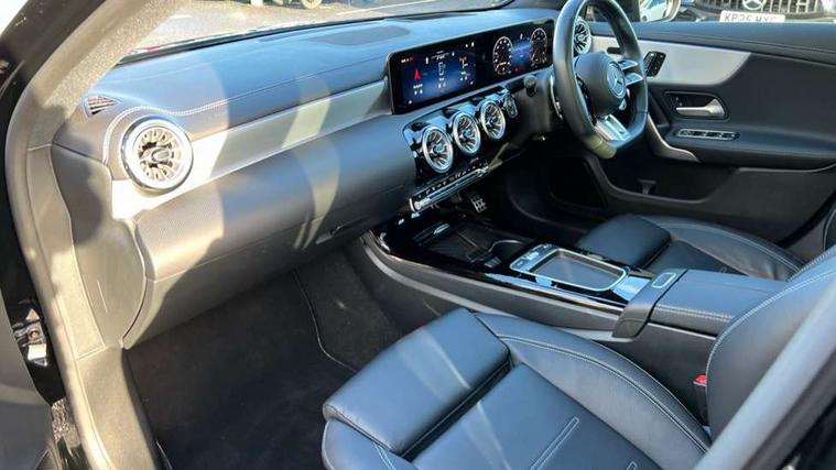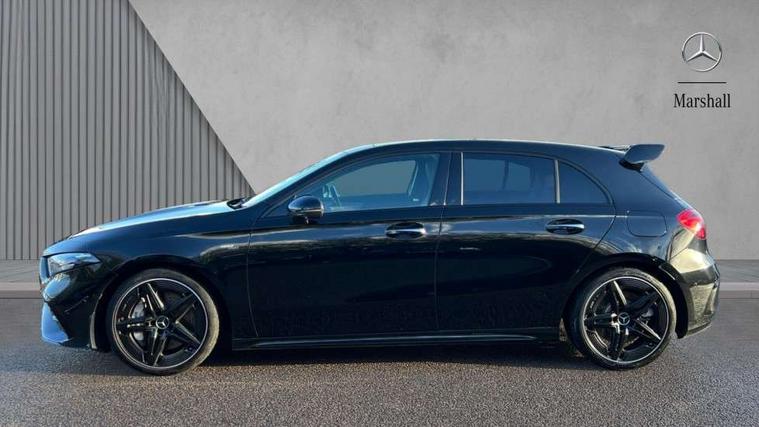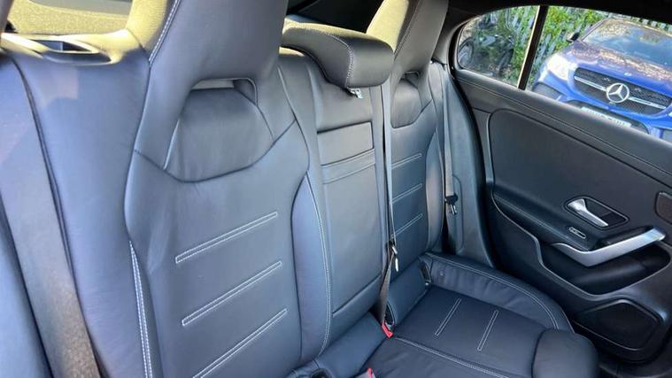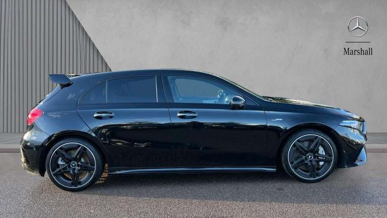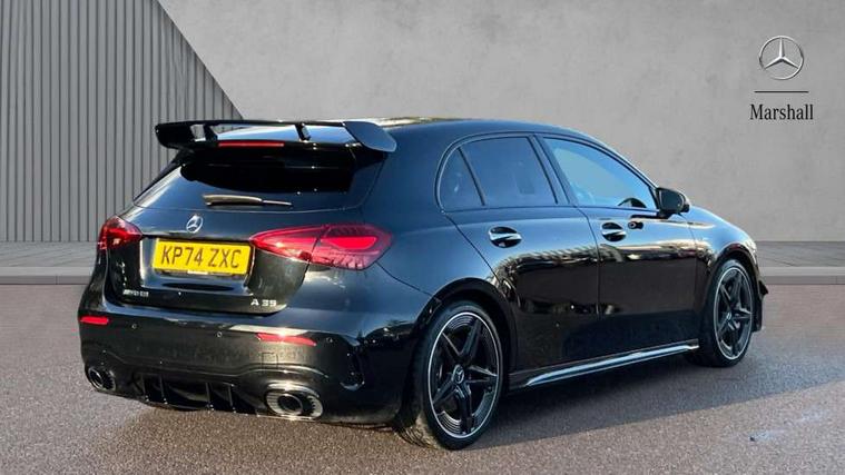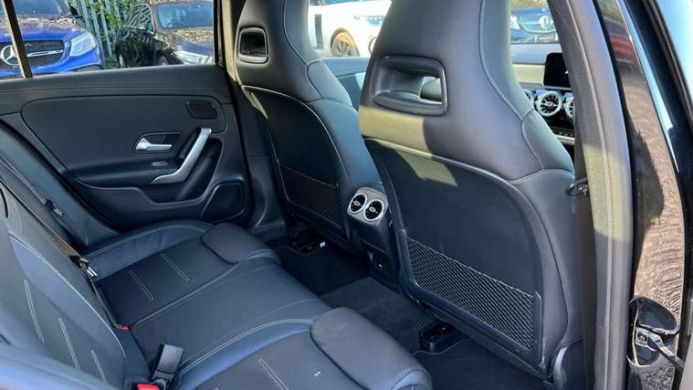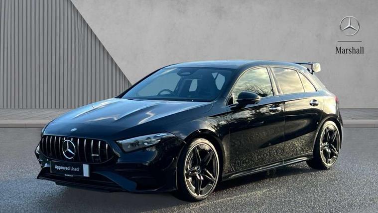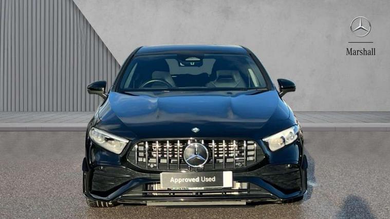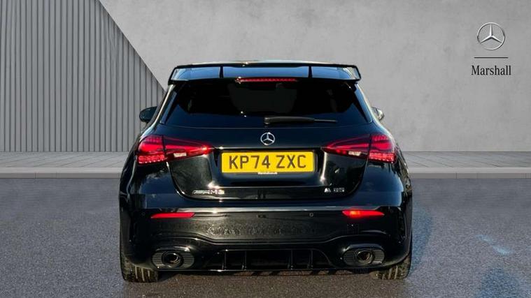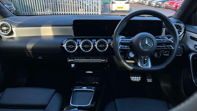 10.25 inch touchscreen central media display, 10.25" Digital instrument cluster display screen, Attention assist, Brake pad wear indicator warning light, Car wash mode, Direct steering, Direction indicators with lane change function, Dual bluetooth interfaces, DYNAMIC SELECT with driving programs (Slippery, Comfort, Sport, Sport+ and Individual), Easy pack tailgate hands-free access, ECO start/stop function, Engine start/stop button, Fingerprint scanner, Fluid level warning indicator for fuel, oil, coolant and washer fluid, Fluorescent jacket for driver, Hard-disk navigation, Head up Display, Hey Mercedes Voice activation, Lamp failure indicator, MBUX augmented reality for navigation, MBUX Interior assistant, Mercedes me connect including emergency call system, accident recovery, breakdown and maintenance management, Mercedes me remote services, Outside temperature gauge, Owners manual in English, Pre-installation of private car share, Preinstallation for Mercedes Benz link, Remote boot closing, Service indicator (ASSYST), Smartphone integration with Apple CarPlay and Android auto, Speed sensitive power steering, Tailgate, Traffic sign assist, Trip computer in multifunction display with current consumption indicator, Wireless charging, AMG suspension, Suspension with adaptive damping system, DAB Digital radio, MBUX multimedia system, Mercedes Benz advanced sound system (225 W) with 10 speakers, 1 central speaker, speakers on doors, a tweeter on door, one sub woofer + boost amplifier, 4 Electric Front and Rear windows, Adaptive brake lights, AMG body styling - AMG front apron with front splitter and AMG rear apron and visible exhaust tailpipe trim elements, AMG Front apron with flics as air deflector elements on the outer air intakes, AMG radiator grille with twin blade lamella and AMG Lettering, AMG Rear apron with specific diffuser look with four vertical fins and two round chrome plated tailpipe trim elements with a diameter of 90 mm, AMG spoiler lip on roof, Beltline strips in High gloss Black, Body colour bumpers, Body colour door handles with chrome inserts, Body colour side skirt, Electric adjustable and heated door mirrors with integrated LED side indicators, Front splitter and trim elements on the louvres in the outer air inlets, Front wings wheel arches with TURBO 4MATIC lettering, Headlamp assist automatic headlamp activation, Heat insulating dark tinted rear and rear side windows, Heated glass rear windscreen + timer control, LED daytime running lights, LED High level third brake light, LED tail lamp, Multibeam LED headlamps with adaptive highbeam assist and cornering function, Panoramic sliding sunroof, Privacy glass, Radio aerial, Rain sensing windscreen wipers with two sensitivity settings, Rear fog lights, Rear side wing doors, Rear windscreen wiper, Surround lighting with logo projection, Wider wheel arches for AMG wheels, Window line trim strip in black, 3 seat bench in 2nd row, 40:20:40 split folding rear seats, Air conditioning - Two zone thermotronic luxury automatic climate control with display, AMG floor mats, AMG Performance steering wheel in nappa leather, Automatic child seat recognition sensor, Black air vents with surround in silver chrome, Black roof lining, Brushed stainless steel sports pedals with rubber studs, Electrically adjustable front memory seats including lumbar support and backrest inclination, Front centre armrest with stowage, Front seat backs luggage nets, Height/reach adjustable steering column, Illuminated AMG front door sills with changeable cover, Interior lighting - 64 colour Ambient lighting, Interior mirror with reading lamps in black and frameless, Rear armrest with 2 cupholders, Seat occupancy sensor for front passenger seat, Silver coloured aluminium gear shift paddles on steering wheel, Single front passenger seat, Sports seats with integrated headrests, Stowage compartment in centre console with retractable cover, Sunvisors with illuminated vanity mirrors, Twin front cupholders, Aerodynamic pack - A Class, AMG night pack - A Class, Light and sight package - A Class, Mirror package - A Class, Parking pack with 360 degree camera - A Class, Seat comfort pack - A Class, USB pack plus - A Class, Winter pack - A Class, 3 rear 3 point seatbelts, ABS with Brake Assist, Active bonnet, Adaptive brake assist with hold function and hill start assist, Black seatbelts, Bonnet with power domes, Childproof locks manually operated for rear doors and electrically operated for rear power windows, Crash responsive emergency lighting, Driver and passenger head and side airbags, Drivers knee airbag, Dual stage driver/passenger airbags, Electronic parking brake, ESP curve dynamic assist, ESP with ASR, Exit warning, Front and rear seatbelt reminder, Front brake calipers with AMG lettering, ISOFIX and top tether child seat fixing points in two outer rear seats, Tyre pressure monitoring system, Warning triangle and first aid kit, Window airbags, Alarm system/interior protection/immobiliser, Guard 360 degree vehicle protection, Keyless entry lock/unlock, Keyless Go, Remote central locking and crash sensor with emergency opening function, Light longitudinal grain aluminium trim, 19" AMG 5 twin spoke light alloy wheels aerodynamically optimised painted in matt black with high sheen rim flange, Summer tyres, Tirefit sealant kit,
