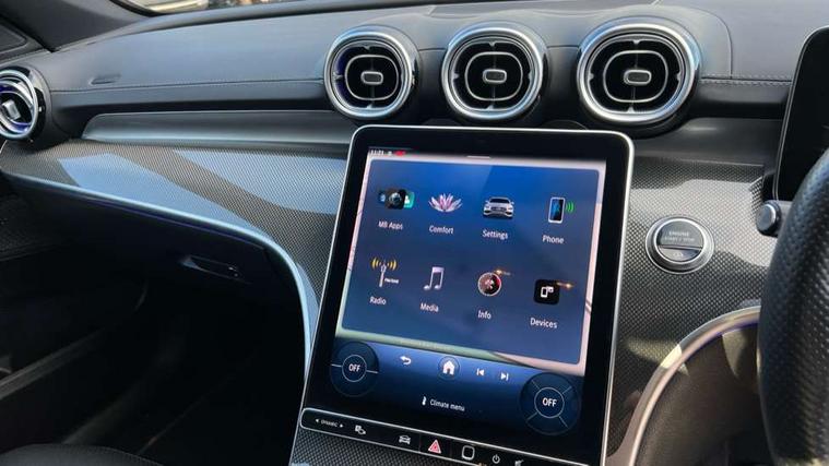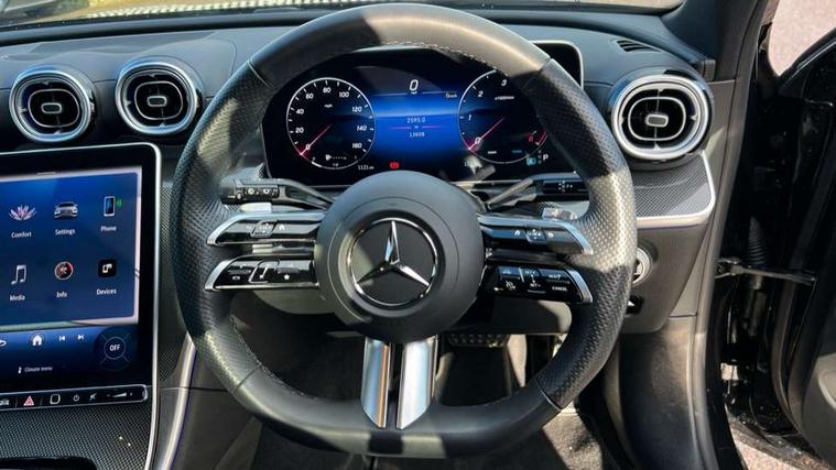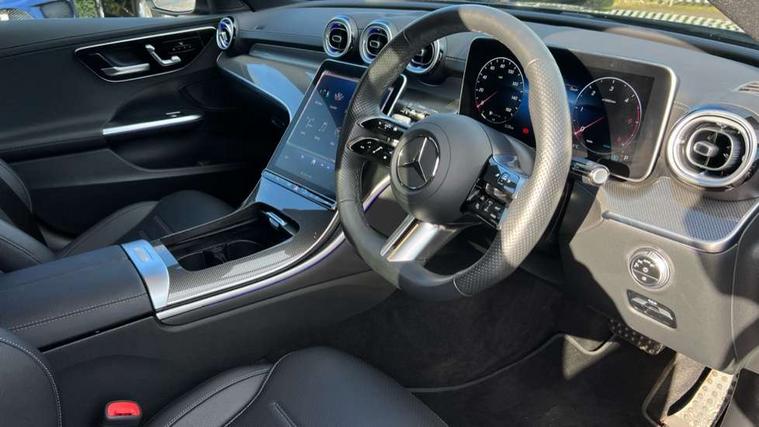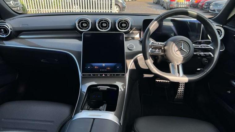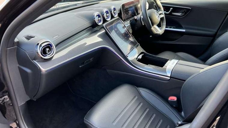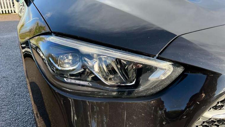 11.9" high resolution multimedia colour display, 12.3" digital instrument cluster display, Active lane keeping assist, Active parking assist with PARKTRONIC, Attention assist, Blind spot assist, Cruise control with speedtronic variable speed limiter, DYNAMIC SELECT with a choice of driving modes (Comfort, ECO, Sport, Sport+, Individual), E-call, Extended MBUX functions, Finger print sensor, Fluorescent jacket for driver, Hard disc navigation, MBUX navigation premium, Mercedes me remote services, Outside temperature gauge, Service indicator (ASSYST), Smartphone integration, Sports direct steer speed sensitive steering, Status display for rear seat belts in instrument cluster, Traffic sign assist, Wireless charging system for mobile devices, 9G TRONIC 9 speed automatic transmission, Diesel particulate filter, Sport suspension, DAB Digital radio, MBUX multimedia system, Adaptive brake lights, Adaptive high beam assist, Aluminium roof rails, AMG body styling front apron, rear apron and side skirts, AMG Line exterior, Body coloured bumpers, Body coloured door mirrors, Electric windows with one touch opening/closing and obstruction sensors, Electrically adjustable and heated door mirrors, Heat insulating dark tinted glass, LED daytime running lights, LED high performance headlamps, LED Indicators, LED tail lights, LED third brake light, Radiator diamond grille with integrated Mercedes Benz star and louvre silver with chrome pins, Rain sensor with automatic windscreen wiper activation, Rear side wing doors, Rear wiper, Two visible exhaust pipes integrated into rear bumper, 3 seat bench in 2nd row, 40:20:40 split folding rear bench seat, Ambient lighting premium, Ambient lighting with projection of brand logo, AMG floor mats, AMG line interior, Artico man-made leather upholstery, Auto Mercedes-Benz child seat recognition sensor, Black roof liner, Double cupholder in centre console, Electrically height/reach adjustable steering column, Folding rear seat backrest, Front and rear head restraints, Gearshift paddles on steering wheel, Heated front seats, Illuminated door sills with Mercedes Benz lettering, Illuminated glove compartment stowage, Load compartment cover, Multifunction sports steering wheel in nappa leather, Rear top tether child seat ISOFIX attachment, Single front passenger seat, Sports seats, Sunvisors with illuminated vanity mirrors, THERMATIC 2 zone automatic climate control, Boot comfort package - C Class, Easy pack tailgate - C Class, Interior light package - C Class, Memory package - C Class, Mirror package - C Class, Parking package with reversing camera - C Class, Stowage space pack - C Class, USB package plus - C Class, 3 rear 3 point seatbelts, Active bonnet pedestrian safety measure which detects an impact and raises bonnet, Active brake assist, Adaptive brake system with HOLD function and brake drying in the wet, Anti-lock braking system (ABS), Black seat belts, Brake calipers with Mercedes-Benz lettering + perforated front brake discs, Child proof door locks, Drivers knee airbag, Drivers pelvis airbag, Dual stage driver/passenger airbags, Electric parking brake, Electronic Stability Programme (ESP), Front centre airbag between driver and front passenger seats, Front side airbags, Tyre pressure monitoring system, Warning triangle and first aid kit, Window airbags for driver, front passenger and rear passenger, Antitheft alarm system, Interior monitoring system and Increased antitheft protection, Central locking with interior switch, automatic locking and crash sensor with emergency opening function, Chrome surround in electric key, Keyless Go, Urban guard vehicle protection plus, Dashboard, instrument panel and beltlines in ARTICO man made leather in nappa look, Metal structure trim element with centre console in metal structure finish, 18" AMG 5 spoke design aerodynamically optimised alloy wheels painted in tantalite grey with high sheen finish, TIREFIT with tyre inflation compressor,