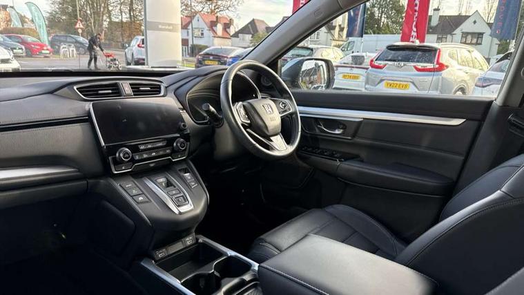 Adaptive cruise control, Agile handling assist, BLIS (Blind Spot Information System) with dual power heated blind spot mirrors, Bluetooth hands free telephone connection, E-call, Economy mode, Electric power steering, Emergency stop signalling system, Forward collision warning, Front parking sensors, Honda CONNECT with GARMIN Navigation + 7" touchscreen, DAB radio, Apple CarPlay, Android Auto, Aha app integration and internet browsing, Intelligent multi info display, Lane departure warning system, Lane keep assist system, Low speed following, Rear parking sensors, Rear view camera, Road departure mitigation, Speed limiter, Traffic sign recognition, Vehicle stability assist, 2 USB sockets in rear, 2x USB sockets in front, 9 speakers, DAB Digital radio, Dashboard centre speaker, Front tweeters, Steering wheel mounted controls, Subwoofer, Aspheric door mirrors, Auto dimming rear view mirror, Automatic headlights with dusk sensor, Body colour bumpers, Body colour door handles, Cornering light, Door mirrors tilt when reversing, Electric front windows/one touch facility, Electric rear windows + one touch facility, Electrically adjustable and heated door mirrors, Electrically retractable door mirrors, Front windscreen de-icer, High beam assist, LED daytime running lights, LED front fog lights, LED Headlights, LED rear lights, Rain sensor, Rear privacy glass, Rear side wing doors, Rear wiper, Roof rails, Shark fin roof aerial, Tailgate spoiler, Third brake light, Welcome home function, 3 seat bench in 2nd row, 60/40 split folding rear seat, Accessory sockets, Ambient interior lighting, AWD emblem rear, Cargo hooks, Courtesy lights, Driver's electric adjustable lumbar support, Driver/passenger front seatback pockets, Driver/passenger sunvisors with illuminated vanity mirrors, Dual zone automatic climate control, Electric lumbar adjustment on passenger's seat, Footwell ambient lighting, Front centre armrest, Front map lights, Front passenger seat height adjust, Heated front seats, Height adjustable driver's seat, Hybrid emblem, Illuminated glovebox, Instrument panel with garnish wood film, Isofix child seat preparation, Leather steering wheel, Leather upholstery, Paddle shift controls, Rear air vents, Rear centre armrest, Rear headrests, Rear reading lights, Rear seat conversation mirror, Silver interior door handles, Single front passenger seat, Sunglasses holder with mirror, Tilt/telescopic adjustable steering wheel, Tonneau cover, Trunk light, 5 x 3 point seatbelts, ABS/EBD, Anti-whiplash front headrests, Brake assist function, Collision mitigation braking system, Deflation detection system, Driver airbag, Electronic parking brake with auto hold, Front and rear curtain airbags, Front and rear seat belts with emergency locking retractor (ELR), Front side airbags, Hill start assist, Manual child lock in rear doors, Passenger airbag deactivate switch, Honda super locks, Immobiliser, Security alarm, Smart entry + Smart start, Ultrasonic security sensor, Tyre repair kit,