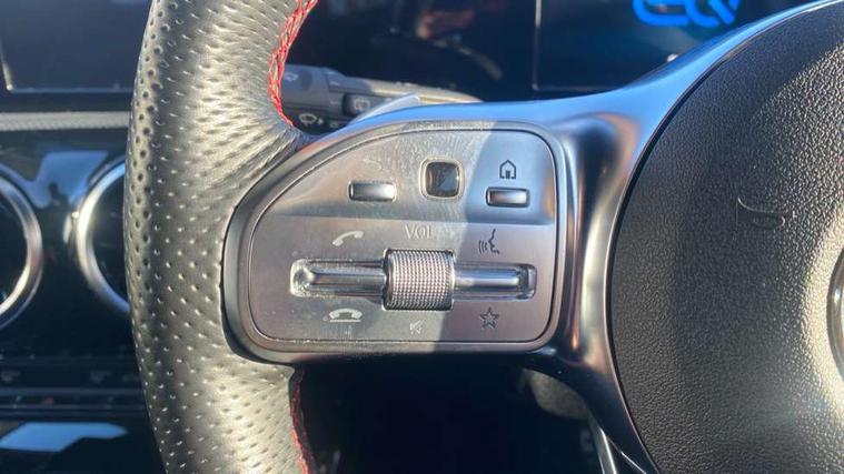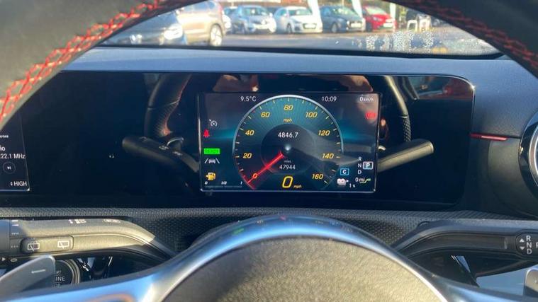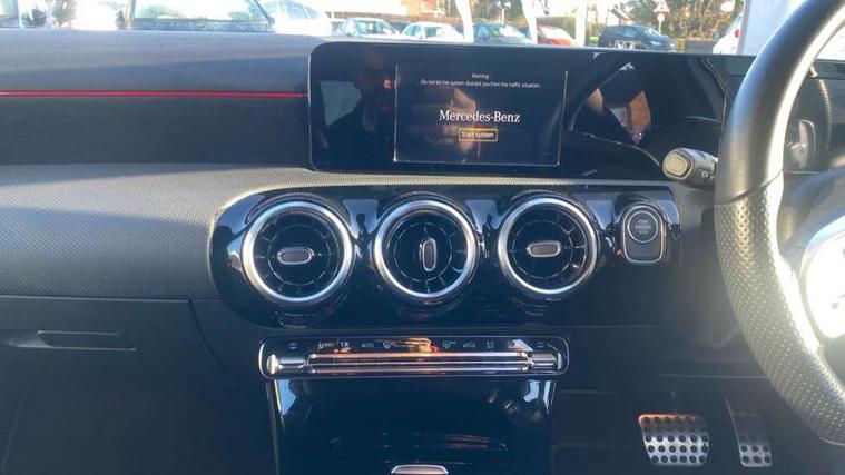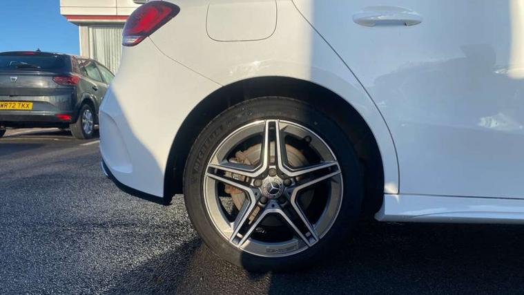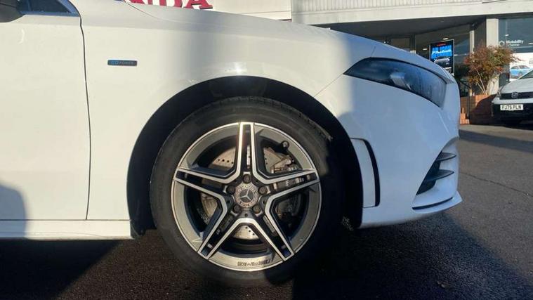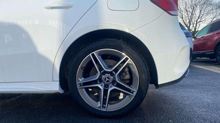 180 degree rear view camera with parking guidelines, 7" colour screen in instrument panel, 7" touchscreen media display, Acoustic ambient protection, Attention assist, Brake pad wear indicator warning light, Car wash mode, Cruise control + speed limiter, Direct steering, Dual bluetooth interfaces, DYNAMIC SELECT with a choice of driving modes (ECO, Comfort, Sport and Individual), ECO start/stop function, Fluid level warning indicator for fuel, oil, coolant and washer fluid, Hard-disk navigation, Hey Mercedes Voice activation, Lamp failure indicator, Mercedes me connect including emergency call system, accident recovery, breakdown and maintenance management, Mercedes me remote services, Outside temperature gauge, Owners manual in English, Pre-installation for private car sharing, Preinstallation for Mercedes Benz link, Remote and charging services plus, Service indicator (ASSYST), Speed sensitive power steering, Trip computer, 7.4 kW monophase on board charger, Comfort suspension, Mode 3 charging cable 11 kW, Rear axle multi-link, 2 USB ports (type C) in rear stowage compartment and one in front of center console, 6 speakers, DAB Digital radio, MBUX multimedia system with DAB digital radio and touchpad including satellite navigation, Mercedes-Benz sound system - 100W, 4 Electric Front and Rear windows, Adaptive brake lights, AMG bodystyling - Front apron with splitter in chrome, rear apron with chrome trim and chrome visible trim elements in tailpipe, Black weather strip, Body colour bumpers, Body colour door handles, Body colour side skirt, Body coloured door mirrors, Chrome beltline trim, Diamond radiator grille with chrome pins and silver louvre + chrome insert, Electric adjustable and heated door mirrors with integrated LED side indicators, EQ badging, Exhaust system - Twin visible tailpipes in polished stainless steel, Headlamp assist automatic headlamp activation, Heated glass rear windscreen + timer control, LED high performance headlamps with integrated LED daytime running lights, LED tail lamp, LED third brake light, Privacy glass, Radio aerial, Rain sensing windscreen wipers with two sensitivity settings, Rear fog lights, Rear wiper, Window line trim strip in chrome, 3 pin charging cable plug, 3 Spoke flat bottom leather multi function steering wheel with perforated leather in grip area, 40:20:40 split folding rear seats, Artico man-made leather/Microfibre Dinamica upholstery with red contrast stitching, Auto Mercedes-Benz child seat recognition sensor, Black air vents with surround in silver chrome, Black roof lining, Brushed stainless steel sports pedals with rubber studs, Charging socket, Controller on centre console with chrome surround, Floor mats with stitched edging and AMG lettering, Front centre armrest with storage compartment, Front door sills with Mercedes Benz lettering, Front seat backs luggage nets, Front seat cushion length adjustment, Galvanished gear shift paddles on steering wheel, Heated front seats, Height/reach adjustable steering column, Interior mirror with reading lamps in black and frameless, Manual height adjustable front seats, Pre-entry climate control, Rear head restraints, Seat occupancy sensor for front passenger seat, Sports seats with integrated headrests, Stowage compartment in centre console with retractable cover, Sunvisors with illuminated vanity mirrors, Touchpad on center console, Twin front cupholders, Two zone thermotronic luxury automatic climate control, Light and sight pack - A Class, Seat comfort pack - A Class, 3 rear 3 point seatbelts, ABS with Brake Assist, Active bonnet, Active brake assist includes forward collision warning system with autonomous braking, Adaptive brake assist with hold function and hill start assist, Black seatbelts, Childproof locks manually operated for rear doors and electrically operated for rear power windows, Crash responsive emergency lighting, Driver and passenger head and side airbags, Drivers knee airbag, Dual stage driver/passenger airbags, Electronic parking brake, ESP curve dynamic assist, ESP with ASR, Front and rear seatbelt reminder, Front brake callipers with Mercedes Benz lettering, ISOFIX and top tether child seat fixing points in two outer rear seats, Perforated front brake discs, Radar based regeneration, Tyre pressure monitoring system, Warning triangle and first aid kit, Window airbags, Alarm system/interior protection/immobiliser, Keyless Go, Remote central locking and crash sensor with emergency opening function, Urban guard vehicle protection system with immobiliser and interior protection, Dinamica microfibre trim in black, 18" AMG 5 twin spoke light alloy wheels in titanium grey with highsheen finish, Summer tyres, Tirefit sealant kit,