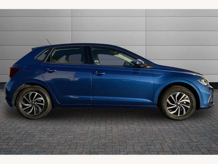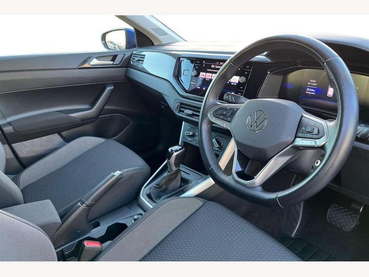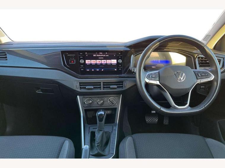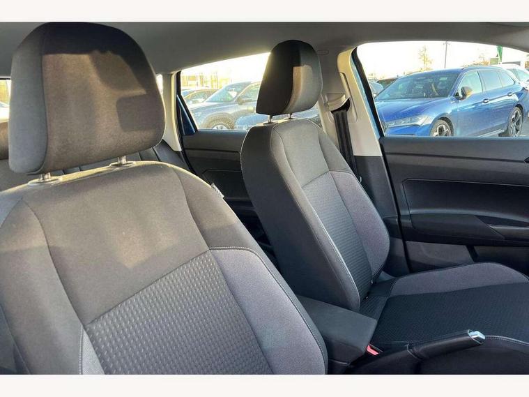 Adaptive cruise control with follow-to-stop and speed limiter, Advanced driver attention and drowsiness monitor, Bluetooth mobile phone interface, Dynamic road sign display, Emergency call service, Power assisted speed sensitive steering, Preparation for navigation system with media and internet package, Preparation for We connect and We connect plus, Speedo and rev counter, electronic odometer, trip, service interval display and exterior temperature gauge, Standard rear axle, Travel Assist - Lane keeping system and traffic jam assist, Travel assist including emergency assist, Trip computer, Warning signal and warning light for front and rear seatbelts not fastened, Washer fluid level indicator, Wireless app connect, Front wheel drive, Rear shock absorpion, Start-stop system with battery regeneration (recuperation - energy recovery during braking), DAB Digital radio, Diversity antenna for FM reception, Automatic dimming interior rear view mirror, Automatic headlight control with LED separate daytime running lights with coming/leaving home function, Body colour bumpers with chrome inserts, Body colour door handles, Body colour door mirrors, Electric front windows, Engine badge deletion, Headlight range adjustment, Heat insulating and laminated safety glass windshield, Heat insulating darkened glass in side and rear windows, Heat insulating glass windscreen, LED Headlights, LED rear combination lamps, Power folding adjustable/heated exterior mirrors and front passenger exterior mirror lowering function, Rain sensor, Rear electric windows, Rear fog light, Rear side wing doors, Rear windscreen washer and wiper with interval delay, Third brake light, 12V power socket in centre console, 2 front and 2 rear reading lights with switch off delay and dimmer, 2 USB-C ports in the front, 2 USB-C charging sockets on the center console in the rear, 3 rear head restraints, 60/40 split folding rear seat and rear seat bench not split, Ceramique roof lining, Chrome plated radiator grille inserts, air vent surrounds and light switch surrounds, Door and side trim panel, Driver and front passenger seat height adjustment, Driver/passenger sunvisors with illuminated vanity mirrors, Front centre armrest, Front seat backrest storage pockets, Front standard seats, Handbrake lever handle in leather, Hartley/Thomas cloth upholstery, Headliner in recycled material, Isofix child seat preparation easy-fit (for two outer rear seats, and front passenger seat) compatible with I-size, Leather trimmed gear knob, Luggage compartment cover, Luggage compartment lighting, Removable luggage compartment floor, Single front passenger seat, Standard climatic zones, Standard pedal cluster, Three spoke leather wrapped multifunction steering wheel with shifting paddles, Light and vision pack - Polo, 3 point height adj front seatbelts + pretensioners, 3x3 point rear seatbelts, ABS, Driver and front passenger airbag with front passenger airbag deactivation, Drivers and front passengers safety optimised head restraints, ESC (Electronic stability control) + EDL (Electronic Differntial lock) and ASR (Traction control), Extended and predictive pedestrian/ cyclist protection, Front assist with autonomous emergency braking (for Adaptive Cruise Control ACC up to 130 mph), Front curtain and side airbags with center airbag, Front disc brakes, Hill hold control, Manual child lock in rear doors, Rear drum brakes, Single tone horn, Tyre pressure loss indicator, Alarm with interior protection, Anti-theft alarm system with interior monitoring, backup horn, and towing protection, Anti-theft wheel bolts, Electronic engine immobiliser, Lava stone black gloss/matt decorative inserts in dash and front door panels, Low rolling resistance tyres,