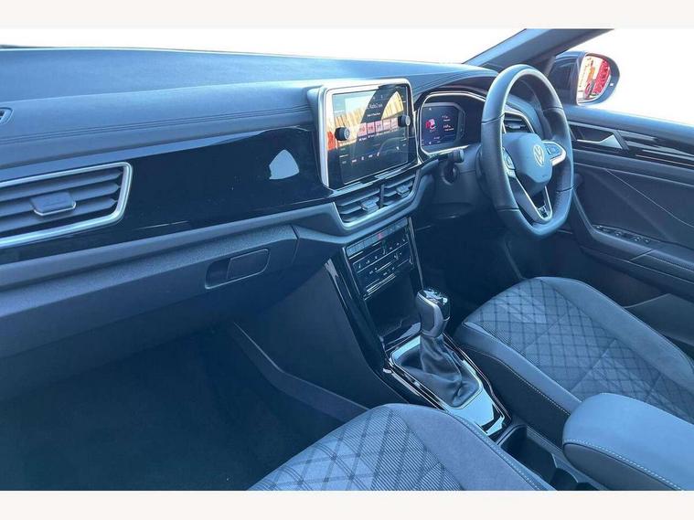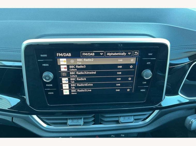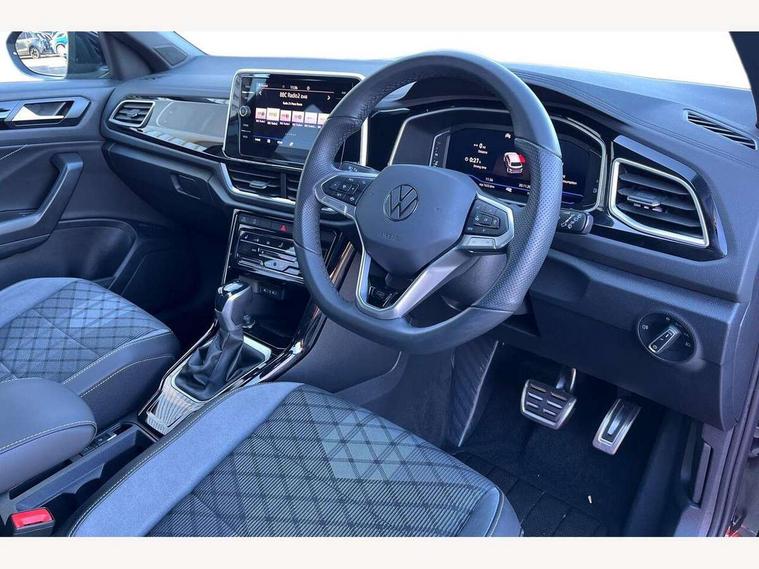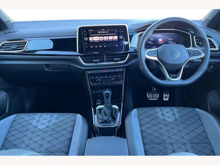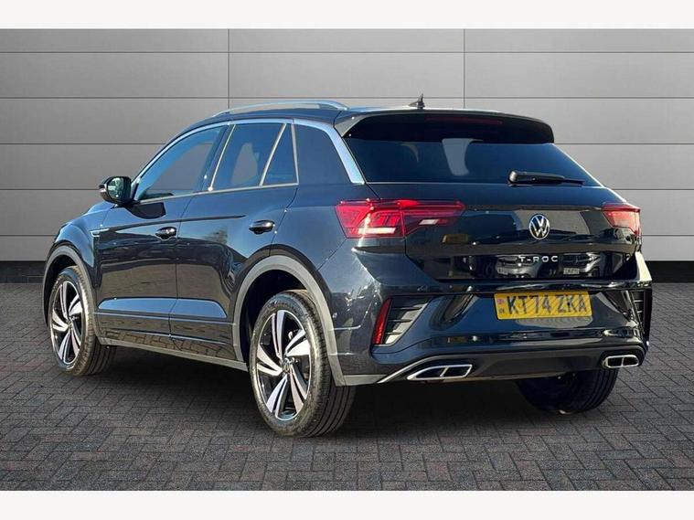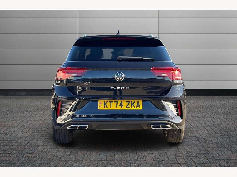 10.25" Digital cockpit pro, Advanced driver attention and drowsiness monitor, Dynamic road sign display, Emergency call service, Lane keeping system Lane Assist, Mobile phone interface, Modified key software - reduce switch off time for key status change to Long no motion, Online services, Park assist including front and rear parking sensors, Service interval indicator, Tailgate/trunk lid release from outside, Think blue trainer driver tips and journey analysis, Warning sound and light for front seatbelts unfastened, Wireless app connect, Battery regeneration during braking, Start/stop function with battery regeneration, DAB Digital radio, Diversity antenna for FM reception, Front and rear 6 speakers, Music playback - MP3, WMA and AAC files, Premium USB cable in choice of either Apple or Android smartphone compatibility, SD card slot, Simultaneous pairing of 2 compatible mobile devices, Title and cover art display, We Connect and We Connect Plus functionality, Auto dimming interior rear view mirror, Automatic hazard lights activation under emergency braking, Automatic headlight control with LED separate daytime running lights with coming/leaving home function, Body coloured exterior mirror housings and door handles, Electrically adjustable and heated door mirrors, Extended roof spoiler, Exterior mirrors aspherical on driver side, convex on front passenger side, External USB type C socket and charging sockets, Front windscreen wiper with intermittent wipe and 4 position delay, Heated rear window, LED 3rd brake light, LED rear combination lamps, LED rear number plate lights, Power windows with comfort operation and circuit breaker, Privacy glass for rear side windows and rear window, R-Line design body coloured bumpers, Rain sensor, Rear exhaust tailpipe, Rear fog light on one side and reversing lights on both sides, Rear side wing doors, Rear wash/wipe with intermittent wipe setting, Remote electrically foldable door mirrors, puddle lights and reverse activated passenger's door mirror, 12V power socket in centre console, 3 rear head restraints, 3 seat bench in 2nd row, 4 load lashing points in luggage compartment, Air care climatronic air conditoning system with active combination filter and 2-zone temperature control, Black roof lining, Chrome plated decorative trims, Chrome plated radiator grille inserts, air vent surrounds and light switch surrounds, Door and side trim panel with leatherette insert, Front + rear carpet mats, Front centre armrest, Front cupholders x 2, Front footwell illumination, Front reading light, Front scuff plates with R Line logo, Front seat back storage pockets, Glove compartment door with light, Instrument lighting, white adjustable panel illumination, Interior ambient lighting and surround lighting, Interior light delay, Isofix child seat preparation, Leather gearshift handle, Load-through provision with cup holder when folded down ('Unsplit rear seat bench, split folding backrest, with centre armrest), Luggage compartment lighting, Single front passenger seat, Stainless steel pedals, Storage compartment in left and right luggage area, Storage compartment in rear doors, Storage compartments in driver and front passenger doors, Sunvisors with illuminated vanity mirrors, Variable boot floor, height adjustable and removable, Driver assistance pack without proactive passenger protection - T-Roc, 3 point height adj front seatbelts + pretensioners, 3 point seatbelts in outer rear with ECE label, ABS, Child locks on rear doors, City emergency braking and pedestrian monitoring, Driver and front passenger airbag with front passenger airbag deactivation, Driver and front passenger safety-optimised head restraints, Drivers seatbelt reminder, Electronic parking brake, Electronic Stability Control (ESC) inc EDL (Electronic Differential Lock) and ASR (Traction Control), Front and rear passengers curtain airbag system including front side airbags, Hill start assist, Predictive pedestrian protection, Rear disc brakes, Two tone horn, Tyre pressure loss indicator, Volkswagen roadside assistance, Piano black decorative inserts in dashboard and front door trim panels, Trims for alloy wheels,