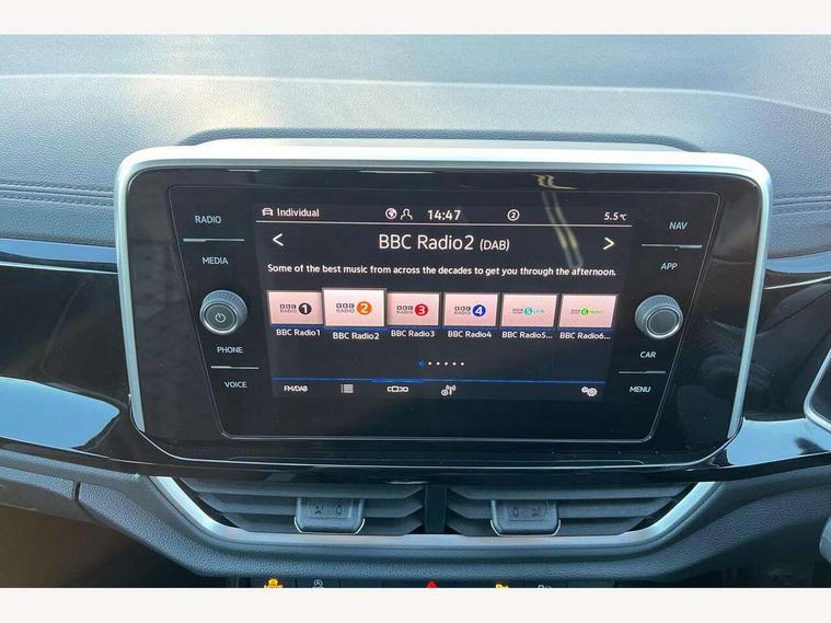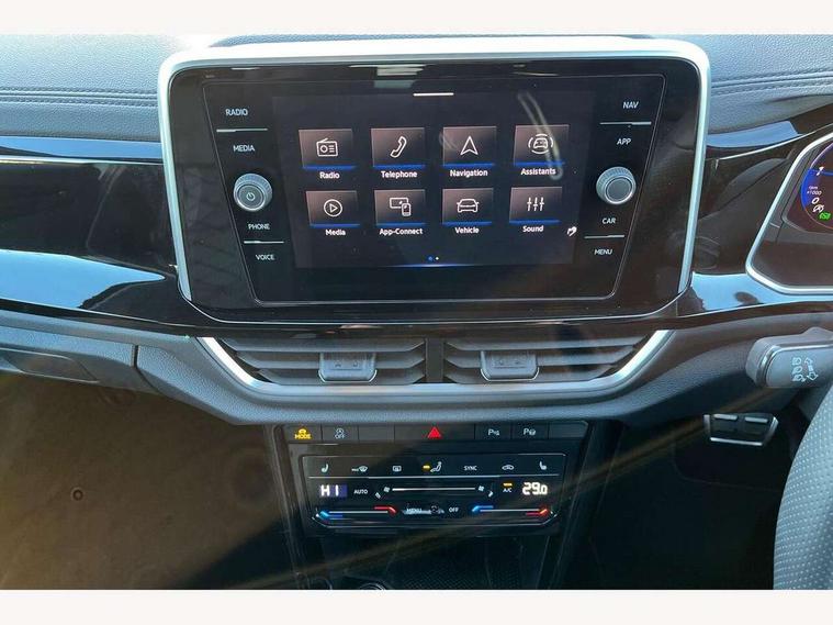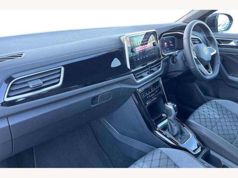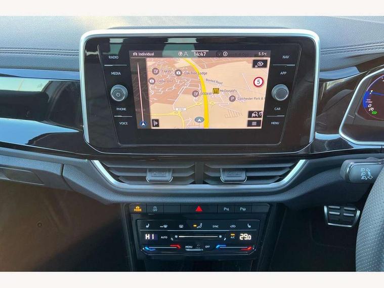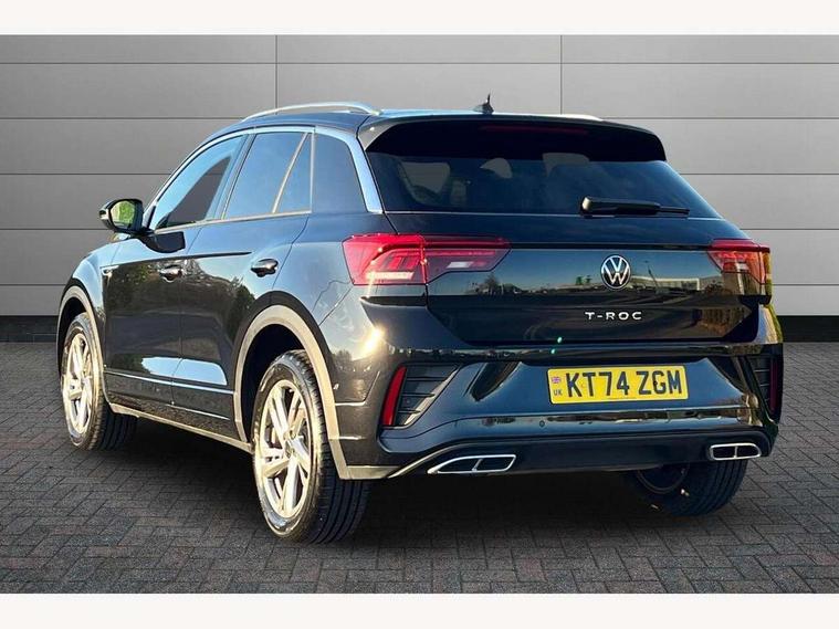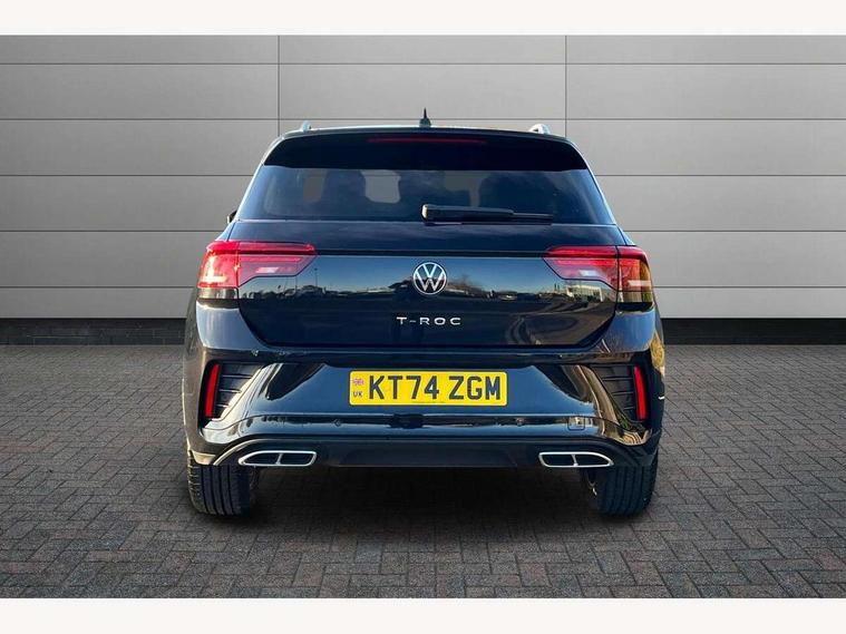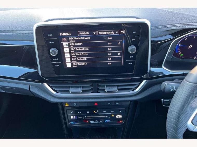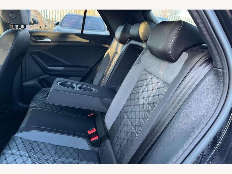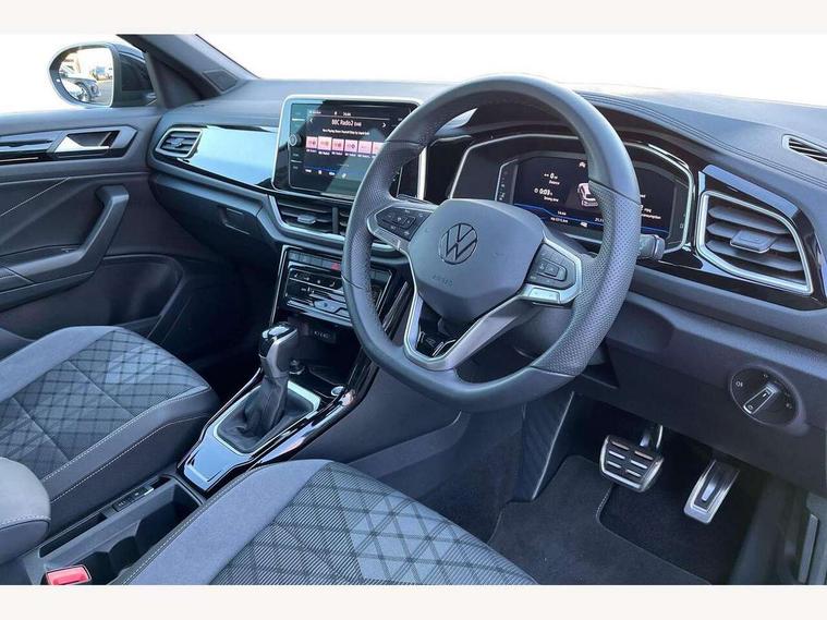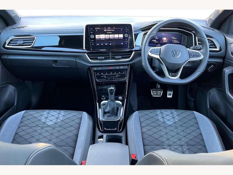 10.25" Digital cockpit pro, Advanced driver attention and drowsiness monitor, Dynamic road sign display, Emergency call service, Lane keeping system Lane Assist, Mobile phone interface, Modified key software - reduce switch off time for key status change to Long no motion, Online services, Park assist including front and rear parking sensors, Service interval indicator, Tailgate/trunk lid release from outside, Think blue trainer driver tips and journey analysis, Warning sound and light for front seatbelts unfastened, Wireless app connect, Battery regeneration during braking, Start/stop function with battery regeneration, DAB Digital radio, Diversity antenna for FM reception, Front and rear 6 speakers, Music playback - MP3, WMA and AAC files, Premium USB cable in choice of either Apple or Android smartphone compatibility, SD card slot, Simultaneous pairing of 2 compatible mobile devices, Title and cover art display, We Connect and We Connect Plus functionality, Auto dimming interior rear view mirror, Automatic hazard lights activation under emergency braking, Automatic headlight control with LED separate daytime running lights with coming/leaving home function, Body coloured exterior mirror housings and door handles, Electrically adjustable and heated door mirrors, Extended roof spoiler, Exterior mirrors aspherical on driver side, convex on front passenger side, External USB type C socket and charging sockets, Front windscreen wiper with intermittent wipe and 4 position delay, Heated rear window, LED 3rd brake light, LED rear combination lamps, LED rear number plate lights, Power windows with comfort operation and circuit breaker, Privacy glass for rear side windows and rear window, R-Line design body coloured bumpers, Rain sensor, Rear exhaust tailpipe, Rear fog light on one side and reversing lights on both sides, Rear side wing doors, Rear wash/wipe with intermittent wipe setting, Remote electrically foldable door mirrors, puddle lights and reverse activated passenger's door mirror, 12V power socket in centre console, 3 rear head restraints, 3 seat bench in 2nd row, 4 load lashing points in luggage compartment, Air care climatronic air conditoning system with active combination filter and 2-zone temperature control, Black roof lining, Chrome plated decorative trims, Chrome plated radiator grille inserts, air vent surrounds and light switch surrounds, Door and side trim panel with leatherette insert, Front + rear carpet mats, Front centre armrest, Front cupholders x 2, Front footwell illumination, Front reading light, Front scuff plates with R Line logo, Front seat back storage pockets, Glove compartment door with light, Instrument lighting, white adjustable panel illumination, Interior ambient lighting and surround lighting, Interior light delay, Isofix child seat preparation, Leather gearshift handle, Load-through provision with cup holder when folded down ('Unsplit rear seat bench, split folding backrest, with centre armrest), Luggage compartment lighting, Single front passenger seat, Stainless steel pedals, Storage compartment in left and right luggage area, Storage compartment in rear doors, Storage compartments in driver and front passenger doors, Sunvisors with illuminated vanity mirrors, Variable boot floor, height adjustable and removable, Driver assistance pack without proactive passenger protection - T-Roc, 3 point height adj front seatbelts + pretensioners, 3 point seatbelts in outer rear with ECE label, ABS, Child locks on rear doors, City emergency braking and pedestrian monitoring, Driver and front passenger airbag with front passenger airbag deactivation, Driver and front passenger safety-optimised head restraints, Drivers seatbelt reminder, Electronic parking brake, Electronic Stability Control (ESC) inc EDL (Electronic Differential Lock) and ASR (Traction Control), Front and rear passengers curtain airbag system including front side airbags, Hill start assist, Predictive pedestrian protection, Rear disc brakes, Two tone horn, Tyre pressure loss indicator, Volkswagen roadside assistance, Piano black decorative inserts in dashboard and front door trim panels, Trims for alloy wheels,
