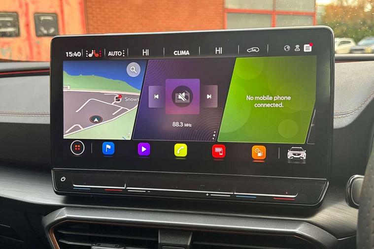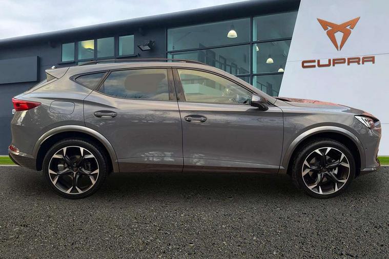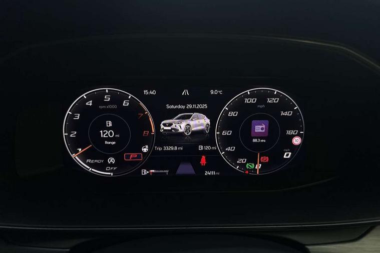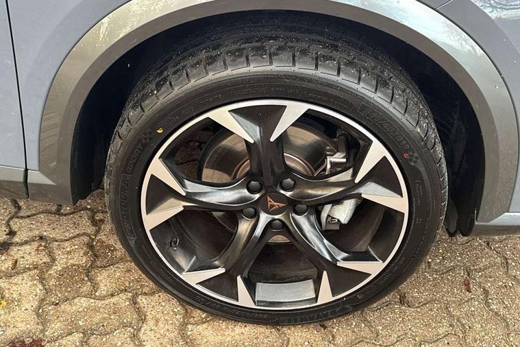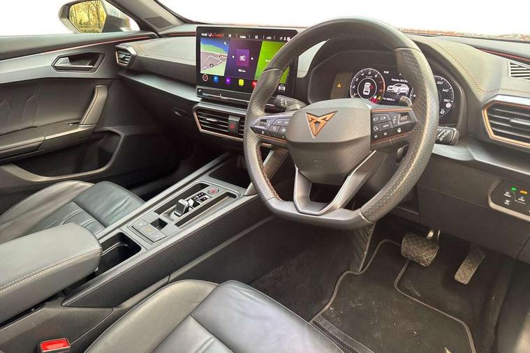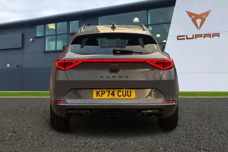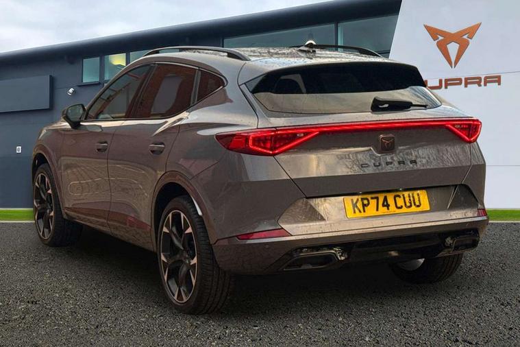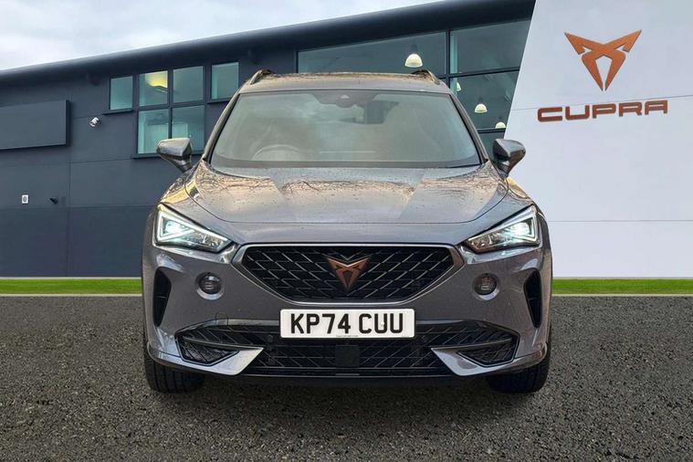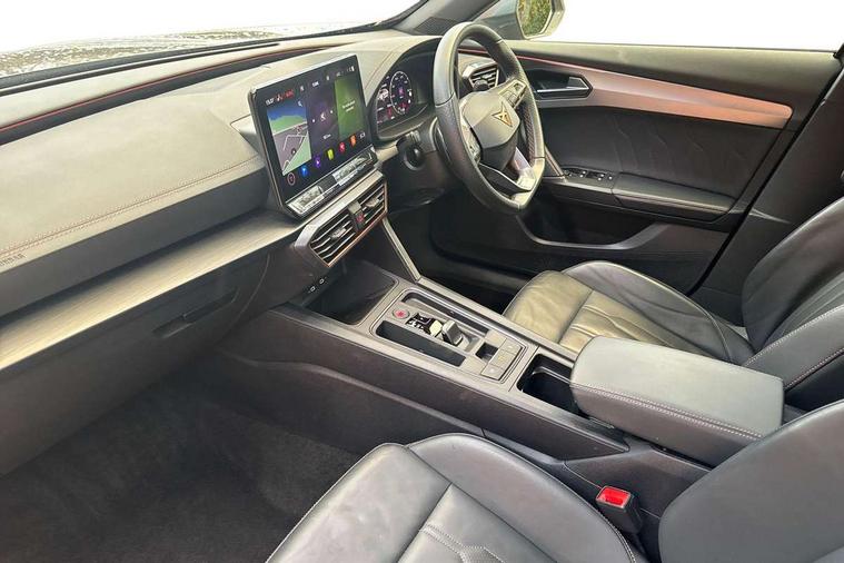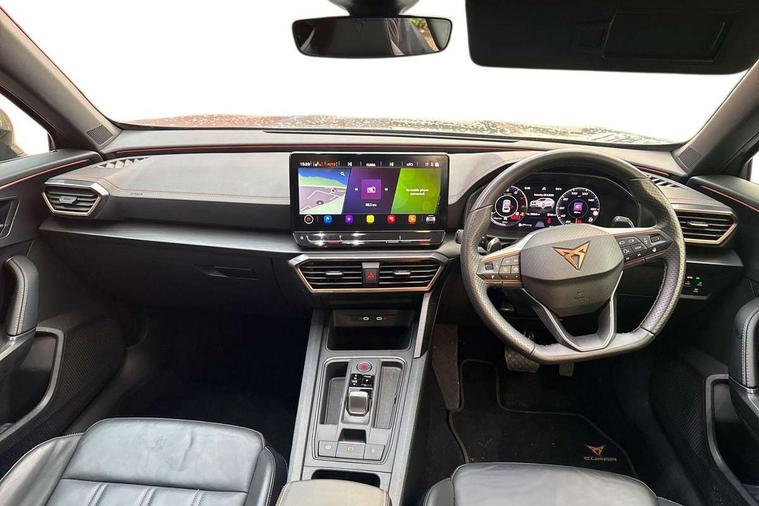 Digital cockpit and configurable dashboard, Driver alert system, Driving profile selection, Forward collision warning with automatic braking, Lane assist, Navigation system with 12'' Touchscreen Display, Park assist (inc front/rear parking sensors), PAS, Predictive adaptive cruise control with speed limiter, Rear view camera, RPM, trip computer, outside temp gauge, instrument light brightness, low fuel warning light, lights on reminder, gearshift indicator, Service interval indicator, Start/stop system with regenerative braking, Voice control system, Wired Android Auto, Wireless apple carplay, Wireless phone charger, Electronic locking differential and dynamic traction support, Standard suspension, 2 front and 2 rear USB type C sockets, Auxiliary input socket, DAB radio, Auto dimming rear view mirror, Body colour door handles, Body coloured bumpers, Dark grey wing mirror, Daytime running light with automatic headlight control and coming home feature, Dynamic headlight range control, Electric front/rear windows, Electrically adjustable heated and folding door mirrors with memory function, Front fog lamps with cornering function, Gloss black roof rails and window surrounds, LED Headlights, LED Taillights with dynamic indicator, Rain sensing wipers, Rear diffuser with black simulated exhaust pipes, Rear side wing doors, Rear wash/wipe, Third brake light, Tinted rear windows, Welcome lights, 12v power supply in centre console, 12V socket, 12v socket in loadspace, 2 front and 2 rear reading lights, 230V socket, 3 seat bench in 2nd row, 60/40 split rear bench seat with armrest and mechanical seat release, Black headlining, Dust/pollen filter, Front and rear head restraints, Front centre armrest, Height/reach adjust steering wheel, Illuminated interior front door sills, Illuminated sunvisor with mirror, Isofix, Leather multi function heated steering wheel with gear shift paddles, Luggage tie-down hooks, Single front passenger seat, Three zone climate control with control panel in rear, Variable luggage/load compartment floor, Wraparound lighting, Genuine Nappa leather Pack - Cupra, 3 point seatbelts on all rear seats, ABS, Brake control system - ESC and brake booster, Child proof door locks, Driver and front passenger airbags with front passenger airbag de-activation, Electronic parking brake, Front and rear disc brakes, Front side curtain airbags, Hill hold control, Public e-call, Seat belt reminder for front and rear seats, Tyre pressure monitoring system, Anti theft alarm system, Keyless entry and start system (KESSY), Locking wheel bolts, Copper and aluminium interior detailing, 19" 'Exclusive' machined sport matte black and silver alloy wheels,