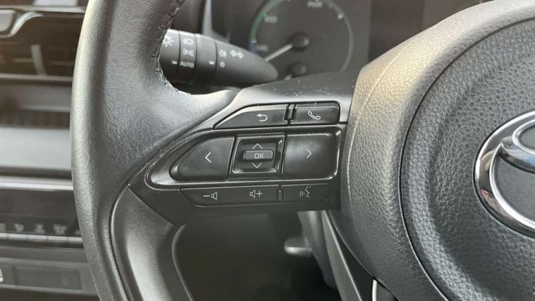 4.2" coloured TFT multi information display with analogue speedometer, Adaptive cruise control, Adjustable speed limit with speed warning, Bluetooth connectivity, E-call, Electric power steering, Hybrid energy display, Multi information display switches on steering wheel, Reversing camera, Smartphone integration with Apple CarPlay and Android auto, Tailgate, Voice recognition, Vehicle Stability Control (VSC), 4 speakers, 7" Multimedia display touch screen, Toyota Touch 2 with DAB, USB connection, Acoustic windscreen glass, Auto windscreen wipers, Automatic headlights, Body coloured door mirrors, Bulb indicators, Chequered front grille, Daytime running lights, Electric adjustable heated door mirrors, Follow me home headlights, Front auto power windows with anti jam protection, Halogen projector headlights, LED High mounted stop lamp, Manual headlight levelling, Rain sensor, Rear side wing doors, Rear spoiler, Rear wiper, Shark fin antenna, Turning signal integrated indicators in door mirrors, Variable front intermittent wipers, 3 adjustable rear headrests, 3 seat bench in 2nd row, 3 spoke leather steering wheel, 60/40 split folding rear seat, Active headrests, Adjustable boot height, Auto air conditioning, Coat hooks in rear grab handles, Cup holders (2 front & door), Data Communication Module (DCM) connected services, Fabric upholstery, Front armrest, Glovebox, Grey roof lining, Height adjustable driver's seat, Isofix seat fixing, Leather gearshift, Pollen filter, Shopping bag hooks, Single front passenger seat, Tilt/telescopic steering column, 3 point seatbelts on all rear seats, ABS+EBD+Brake assist, Electronic parking brake, Emergency brake light system (EBS), Front passenger airbag on/off switch, Front seatbelt reminder, Hill start assist control (HAC), Rear child proof door locks, Rear seat belt reminder, Supplemental Restraint System (SRS) 8 airbags: Driver & passenger's airbags, dual side curtain airbags, side impact airbags, front centre airbag, Toyota Safety Sense 2, Precollison + Night time Pedestrian & Cyclist Detection, Lane Trace Assist, Auto High Beam, Intelligent ACC & Road Sign Assist, Tyre pressure warning system, 2x Master key, Alarm/immobiliser, Remote powered central double locking doors, Soft touch instrument panel, Space saver spare wheel,
