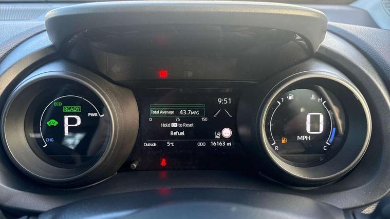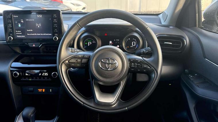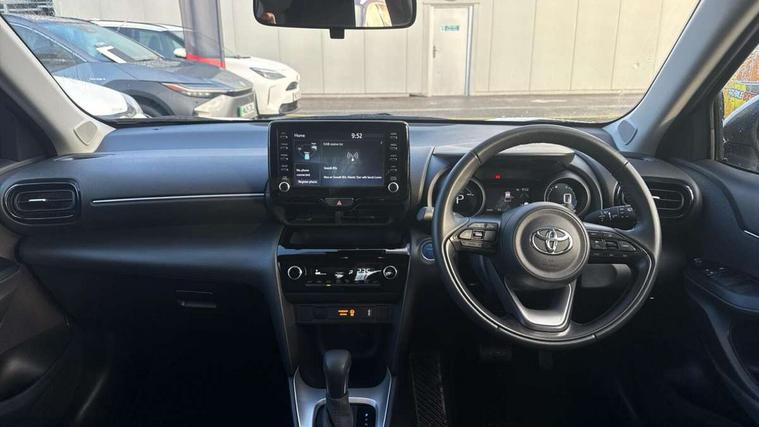 4.2" multi information display, 8" Toyota touch 2 multimedia system with Smartphone integration with Apple CarPlay and Android auto, Adjustable speed limiter, Bluetooth connectivity, Digital speedometer, Driver attention alert system, eCall emergency system, Electric power steering, Full range intelligent adaptive cruise control, Hybrid system indicator, Key reminder warning, Lane trace assist, Multimedia, audio, telephone and voice recognition switches on steering wheel, My T Connected services, Pre-collision system enhanced with emergency steering assist, Reversing camera, Road sign assist - RSA, Steering assisted vehicle stability control, 6 speakers, DAB Digital radio, USB connection, 3rd brake light, Acoustic windscreen glass, Anti-jam protection on power windows, Auto high beam [AHB] with on/off switch, Automatic headlights, Black lower front grille, Black Shark-fin antenna, Black upper front grille, Black wheel arch mouldings, Body colour door handles, Body colour front bumper, Body colour rear bumper, Electric adjustable heated door mirrors, Follow me home headlights, Front and rear electric windows with auto up/down function, Front intermittent wipers, Halogen projector headlights, Headlight cut off reminder, Indicators integrated on door mirrors, Intermittent rear wiper, LED daytime running lights, LED Indicators, Manual headlight levelling, Manually retractable door mirrors, Noise reduction layer on windscreen, Rain sensor, Rear side wing doors, Rear spoiler, Rear window defogger, 12v power outlet - front, 2x Rear coat hooks, 3 seat bench in 2nd row, 3 spoke leather steering wheel, 60/40 split folding rear seat, Adjustable speed limiter switch on steering wheel, Auto air conditioning, Boot light, Central armrest, Driver and front passenger personal lights, Fabric door trim, Fabric upholstery, Front console box, Front cup holders, Front head restraints, Glovebox, Grey roof lining, Height adjustable driver's seat, Height adjustable front passenger seat, ISOFIX child restraint system, Lane departure alert switch on steering control, Leather gearshift, Manual telescopic and tilting steering wheel, Mirror on driver and passenger sun visor, Pollen air filter, Rear head restraints, Single front passenger seat, Soft tonneau cover, 3x3 point rear seat belts, ABS+EBD+Brake assist, Driver and passenger central airbags, Driver and passenger front airbags, Driver and passenger side airbags, Electronic parking brake, Emergency brake light system (EBS), Front seat belt reminder, Hill start assist control (HAC), Passenger airbag on/off switch, Pre-collision system with pedestrian and cyclist detection, Rear door child safety locks, Rear passenger side airbags, Rear seat belt reminder, Traction control, Tyre pressure warning system, Immobiliser, Intrusion alarm, Keyless smart entry with push button start, Power door locks, Power passenger window lock, Remote door lock, 16" 10 spoke alloy wheels, Tyre repair kit,