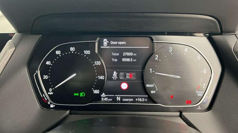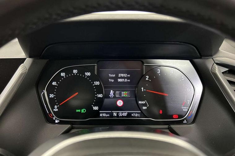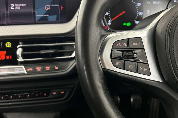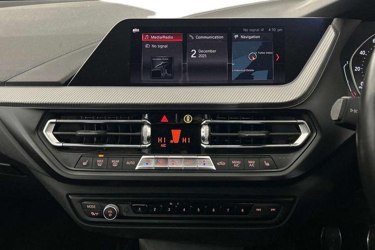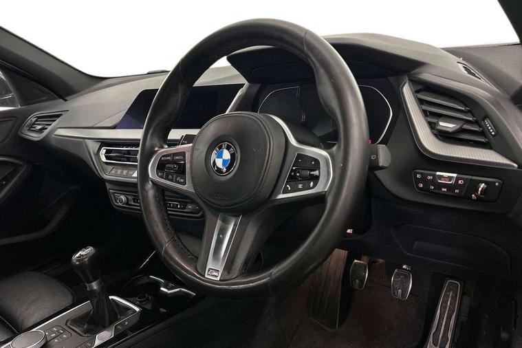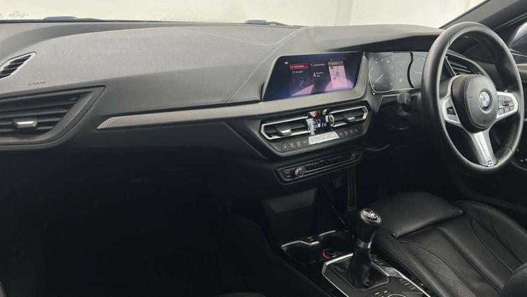Active guard plus, Attentiveness assist, BMW Online services, BMW Teleservices, Check Control warning system for monitoring of lights and door/luggage compartment open warning, Connected eDrive Services, Cruise control with brake assist, Eco pro mode, Electric power steering, Front/rear Parking distance control, Integrated owners handbook, On board computer, Optimum shift indicator, Personal Profile, Pull away assistant, Speed limiter, Anti roll bar front and rear, Balancer shaft, Double VANOS, Drive Performance Control, Electronic differential lock, M sports suspension + self levelling, Petrol Particulate Filter, VALVETRONIC engine management, Bluetooth audio streaming, DAB Digital radio, Auto dimming rear view mirror, Body colour door handles, Body colour mirror caps, Chrome 'M' logo side designation, Chrome exhaust tailpipe in single, round (Exhaust tailpipe, stainless steel - single, round), Chrome kidney grille frame with Satin Aluminium struts, Direction indicator side lights in exterior mirrors, Electric folding and anti dazzle exterior mirrors, Fading support, Follow me home headlights, Front and rear electric windows with open and close fingertip control, anti trap facility and comfort closing, Front door sill finishers in black plastic with BMW designation, Green tinted heat protection glazing, Headlight beam throw control, High gloss shadow line exterior trim, High level third brake light, LED daytime running lights, LED front fog lights, Lightweight engineering, Matt black air guide grilles, Matt black roof moulding, B pillar finisher and wheel arch trim, Matt black window frame, Model designation on right side of tailgate, Nearside reverse light in rear light cluster, Rain sensor including auto headlights activation, Rear fog lights, Rear window wiper, Shark fin antenna, Visible VIN plate, Welcome lighting, Windscreen wipers with integrated washing jets, 12V power socket in centre console, 2 cupholders in front centre console, 3 rear seat head restraints, 3 Spoke M sports leather steering wheel, Anthracite headlining, Anthracite Velour floor mats, Bag hook in luggage compartment, Child seat ISOFIX attachment for two outer rear seats and front passenger seat with anchorage points, Conditioned based service, Dakota leather upholstery with perforation and contrast stitching, Driver and front passenger seat heating, Driver side folding compartment in instrument panel, Folding rear clothes hook, Folding rear seats, Four grab handles integrated in roof lining, Front and rear door pockets, Front and rear side armrest integrated into door trim, Front armrest foldable with integrated storage compartment, Front sports seats with electric side bolster adjustment, Gearshift lever with M designation, Glove compartment, Height adjustable front head restraints, Manual adjust steering wheel, Multi-function controls for steering wheel, Rear seat backrest with manual 60:40 split folding with 3 top tether clips integrated on rear of seat panels, Storage compartment in centre console, Sun visors with vanity mirrors and insert tab, Two extra lashing eyes in luggage compartment, Two zone automatic air conditioning, Extended Lighting pack - 1 Series, Extended storage pack - 1 Series, Interior lights pack - 1 Series, Luggage compartment pack - 1 Series, M Sport exterior styling aerodynamics pack - 1 Series, 2 tone horn, 3 point seatbelts on all seats, front pyrotechnic belt tensioners, stopper and belt force limiters, rear coded belt buckles, Airbags - Front driver and passenger, front and rear head, front side, curtain head protection, Anti lock braking system (ABS) with brake assist, BMW emergency call, Brake drying, Braking readiness, Crash sensor activating central locking release, hazard warning lights, fuel cut off, interior lighting + activation of safety battery terminal clamp, Driver and front passenger seat belt security check, Dynamic stability control + (DSC+), Dynamic Traction Control - DTC, Electrically operated hand brake, Front passenger manual airbag deactivation, Rear child proof door locks, Seatbelt warning, Side impact protection, Tyre pressure monitoring system, Warning triangle and first aid kit, Automatic drive away locking facility, Central locking switch for all doors, fuel filler cap and luggage compartment, Deadlocking function system to all doors, Locking wheel bolts, Remote control with integrated key with High-gloss Black inlay and M designation and 1 button for open/ close lock, window, open luggage compartment, Start/stop button with comfort go keyless engine start and auto start stop deactivation button, Thatcham Cat.1 alarm and immobiliser, Contrast stitching on instrument panel, Reduced rolling resistance tyres,