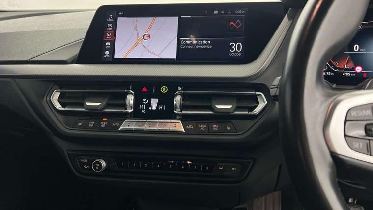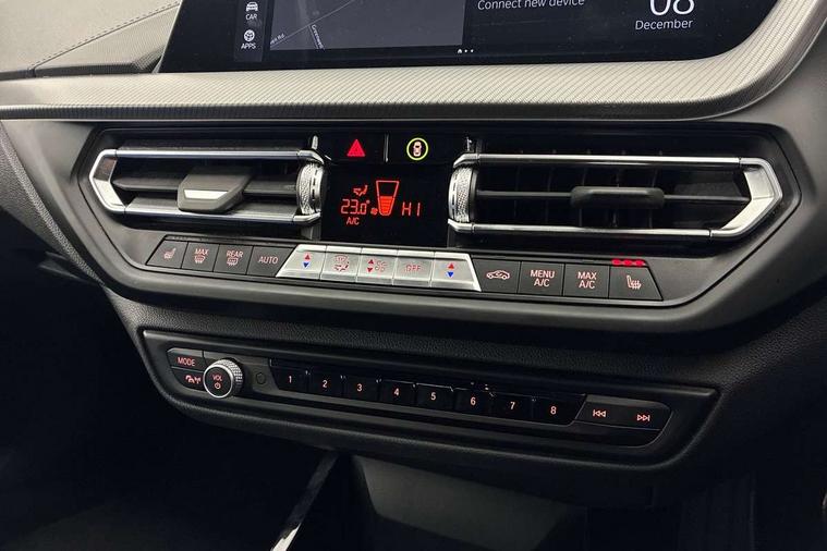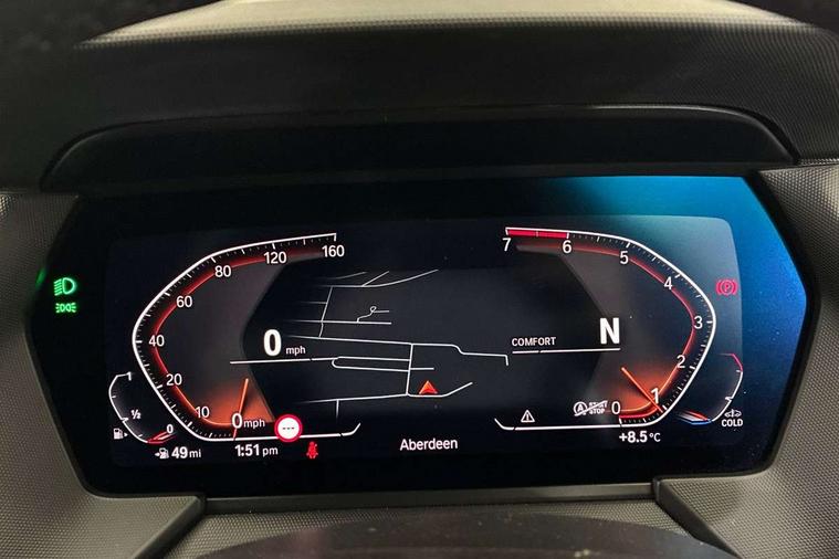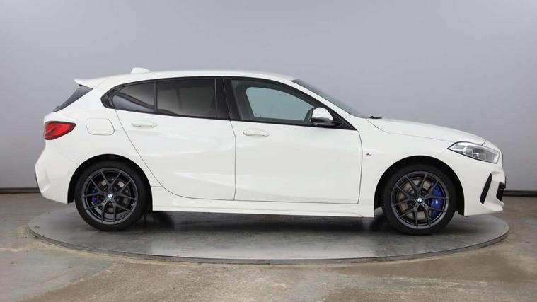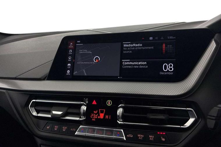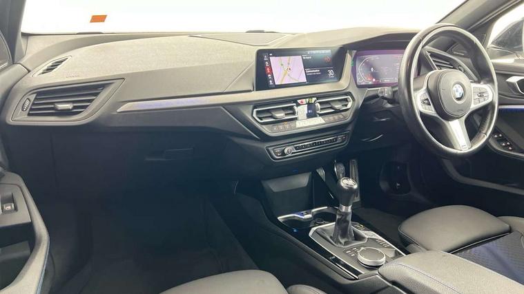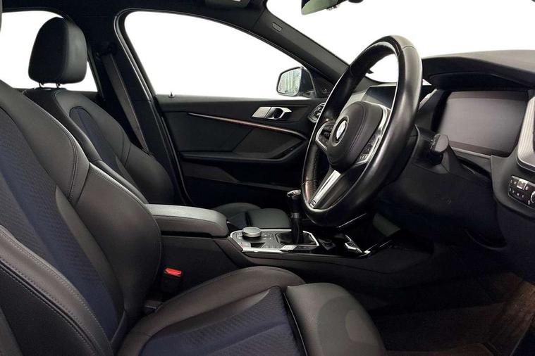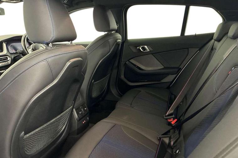 Active guard plus, Attentiveness assist, BMW ConnectedDrive online services, BMW Teleservices, Check Control warning system for monitoring of lights and door/luggage compartment open warning, Cruise control with brake assist, Eco pro mode, Front axle single joint with specific axle kinematics to minimise drive influences on steering + provide increased rigidity agile driving behaviour, Integrated owners handbook, Lane departure warning system, Oil sensor for level and grade, On board computer, Optimum shift indicator, Personal Profile, Pull away assistant, Rigidly mounted rear subframe - Multi link construction with separate spring / damper configuration and excellent driving characteristics, Speed limit Info including no-overtaking indicator, Speed limiter, Aluminium lightweight construction, Anti roll bar front and rear, Balancer shaft, Double VANOS twin scroll turbocharging system, Drive Performance Control, Electronic differential lock, High precision injection, M sport suspension, Petrol Particulate Filter, Twin tube gas filled shock absorbers with degressive characteristic curve, VALVETRONIC engine management, DAB Digital radio, Auto dimming rear view mirror, Automatic headlight beam throw control, Automatic windscreen wipers and automatic headlight, Body colour door handles, Body colour mirror caps, Body colour roof trims, Chrome 'M' logo side designation, Chrome exhaust twin tailpipes round 90mm in left, Chrome kidney grille frame with Satin Aluminium struts, Direction indicator side lights in exterior mirrors, Fading support, Folding side mirrors with auto dimming/folding wing mirrors with auto dimming, Follow me home headlights, Front and rear bumper system with replaceable deformation elements, Front and rear electric windows with open and close fingertip control, anti trap facility and comfort closing, Front door sill finishers in black plastic with M designation in metallic look, Green tinted heat protection glazing, Heated, electrically adjustable exterior mirror aspheric on driver side, convex on passenger side, High gloss shadowline window frame, Recess cover mirror frames and B/C pillar embelisher trim, High level third brake light, Integrated front windscreen with washer jets, LED daytime running lights, LED eyebrow turn indicators, LED front fog lights, LED Headlights, Lightweight engineering, Matt black air guide grilles, Matt black wheel arch trim, Model designation on electric bootlid, Nearside reverse light in rear light cluster, Preparation for high beam assistant, Rear fog lights, Rear side wing doors, Rear window wiper, Shark fin antenna, Trailer stabilisation logic, Visible VIN plate, Welcome lighting, 12V power socket in front centre console with blanking plug, 3 rear seat head restraints, 3 seat bench in 2nd row, 3 spoke sports leather steering wheel in black leather with black stitching and decorative finisher in pearl chrome, specific M badge + leather knob, Anthracite headlining, Black boot net with lashing eyes, Cargo function on 2nd seat row, Child seat ISOFIX attachment for two outer rear seats and front passenger seat with anchorage points, Conditioned based service, Driver and front passenger seat heating, Folding rear clothes hook, Four grab handles integrated in roof lining, Front and rear door pockets with bottle holders, Front and rear side armrest integrated into door trim, Front armrest, Front sports seats, Gearshift lever with M designation, Glove compartment, Height adjustable front head restraints, Luggage compartment for bag hooks on left and right, foldable luggage compartment liner and four lashing eyelets, Manual adjust steering wheel, Multi-function controls for steering wheel, Single front passenger seat, Storage compartment in centre console, Sun visors with vanity mirrors and insert tab, Two front centre console cupholders, Two zone automatic air conditioning, Velour floor mats, Additional interior lighting pack - 1 Series, BMW live cockpit professional pack- 1 Series, Connected pack professional - 1 Series, Interior lights pack - 1 Series, M Sport exterior styling aerodynamics pack - 1 Series, 2 tone horn, 3 point seatbelts on all seats, front pyrotechnic belt tensioners, stopper and belt force limiters, rear coded belt buckles, Airbags - Front driver/passenger, front and rear curtain head protection, front side, manual deactivation of front passenger airbag, Anti lock braking system (ABS) with brake assist, BMW emergency call, Brake drying, Braking readiness, Child proof locking system in rear door, City braking function, Comfort modes, Cornering brake control, Crash sensor activating central locking release, hazard warning lights, fuel cut off, interior lighting + activation of safety battery terminal clamp, Driver and front passenger seat belt security check, Dynamic stability control + (DSC+), Dynamic Traction Control - DTC, Electrically operated hand brake, Front and rear disc brakes, Seatbelt warning, Side impact protection, Tyre pressure monitoring system, Warning triangle and first aid kit, Central locking switch for all doors, fuel filler cap and luggage compartment, Deadlocking function system to all doors, Drive away locking system on all doors and luggage compartment with de-activated in iDrive settings, Locking wheel bolts, Remote control with integrated key with High-gloss Black inlay and M designation and 1 button for open/ close lock, window, open luggage compartment, Start/stop button illuminated in centre console with keyless engine start and auto start stop deactivation button, Thatcham Cat.1 alarm and immobiliser, Wheel slip limitation close to the actuator (ARB), Contrast stitching on instrument panel, Electrically powered 12V compressor, Reduced rolling resistance tyres,