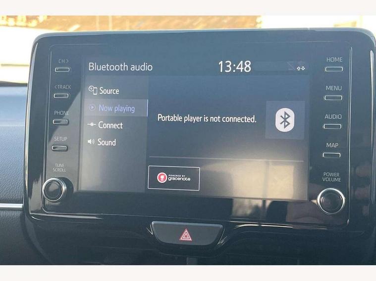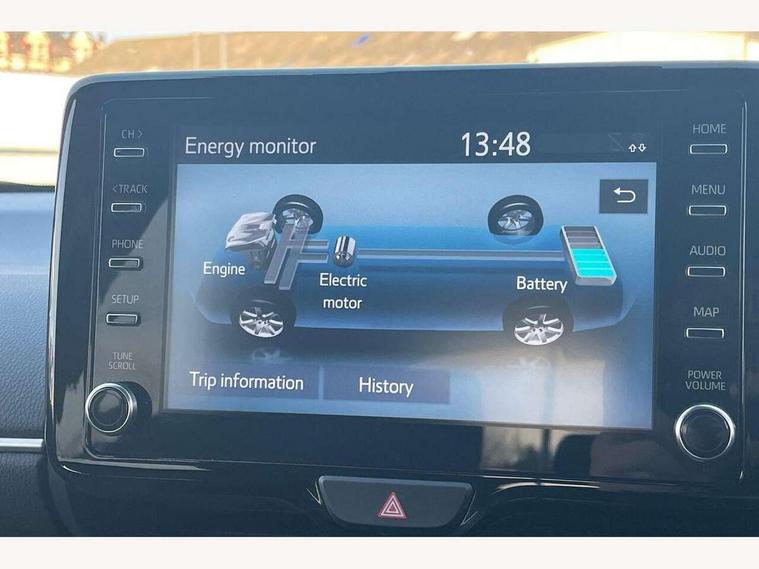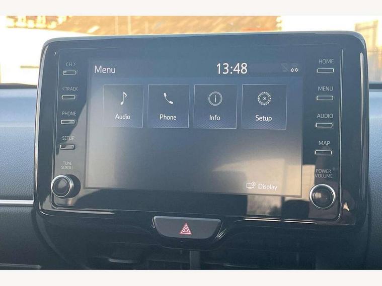 Adaptive cruise control, Adjustable speed limit with speed warning, Bluetooth connectivity, Colour binocular inspired displays with digital speedometer, E-call, Electric power steering, Hybrid energy display, Multi information display switches on steering wheel, Reversing camera, Smartphone integration with Apple CarPlay and Android auto, Tailgate, Voice recognition, Vehicle Stability Control (VSC), 4 speakers, 8" Multimedia display touch screen, Toyota Touch 2 with DAB, USB connection, Acoustic windscreen glass, Auto windscreen wipers, Automatic headlights, Body coloured door mirrors, Electric adjustable heated door mirrors, Follow me home headlights, Front auto power windows with anti jam protection, Full LED rear lights, LED daytime running lights, LED front fog lights, LED front light guide, LED Headlights, LED High mounted stop lamp, LED Indicators, LED rear light guide, Manual headlight levelling, Painted chequered front grille, Rain sensor, Rear auto power windows with anti jam protection, Rear privacy glass, Rear side wing doors, Rear spoiler, Rear wiper, Shark fin antenna, Turning signal integrated indicators in door mirrors, Variable front intermittent wipers, 3 adjustable rear headrests, 3 seat bench in 2nd row, 3 spoke leather steering wheel, 60/40 split folding rear seat, Adjustbale boot height, Auto air conditioning, Coat hooks in rear grab handles, Cup holders (2 front & door), Data Communication Module (DCM) connected services, Fabric upholstery, Front armrest, Glovebox, Grey roof lining, Height adjustable driver's seat, Isofix seat fixing, Leather gearshift, Pollen filter, Shopping bag hooks, Single front passenger seat, Tilt/telescopic steering column, 3 point seatbelts on all rear seats, ABS+EBD+Brake assist, Active headrests, Electronic parking brake, Emergency brake light system (EBS), Front passenger airbag on/off switch, Front seatbelt reminder, Hill start assist control (HAC), Rear child proof door locks, Rear seat belt reminder, Supplemental Restraint System (SRS) 8 airbags: Driver & passenger's airbags, dual side curtain airbags, side impact airbags, front centre airbag, Toyota Safety Sense 2, Precollison + Night time Pedestrian & Cyclist Detection, Lane Trace Assist, Auto High Beam, Intelligent ACC & Road Sign Assist, Tyre pressure warning system, 2x Master key, Alarm/immobiliser, Remote powered central double locking doors, Soft touch instrument panel, Space saver spare wheel,