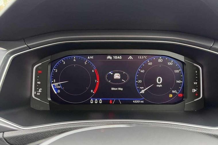 'Lights On' Reminder warning buzzer, Adaptive cruise control, Bluetooth telephone and audio connection for compatible devices, Car information display, Digital Cockpit Pro - Active info display, Driver alert system with audible and visual fatigue detection system, Driver tips and journey analysis, Emergency call service, Lane assist with warning text instrument cluster, Modified key software - reduce switch off time for key status change to Long no motion, Multifunction camera, Multifunction computer with visual gear change recommendation for fuel consumption, Navigation system discover media including streaming and internet, Service interval indicator, Think blue trainer driver tips and journey analysis, Traffic sign recognition, Voice activation, Warning sound and light for front seatbelts unfastened, Wireless app connect for apple carPlay, Battery regeneration during braking, Start/stop function with battery regeneration, DAB Digital radio, Diversity antenna for FM reception, Music playback - MP3, WMA and AAC files, Premium USB cable in choice of either Apple or Android smartphone compatibility, SD card slot, Simultaneous pairing of 2 compatible mobile devices, SMS functionality - read, compose and send SMS messages using touch-screen display, Storage compartment with longitudinal and height adjustable in armrest and two rear air vents, Three route options - Fast, Short, Eco, Title and cover art display, USB-C Interface and USB charging socket, Auto dimming interior rear view mirror, Automatic coming/leaving home lighting function and daytime running lights, Automatic hazard lights activation under emergency braking, Black grained lower door protectors, Black grained wheel arches, Body colour door handles, Body colour sports bumpers with silver metallic underbody fascia, Chrome effect left and right trapezoid exhaust tailpipe fascia surround, Chrome plated moldings, Chrome trim on upper and lower radiator grille, Dusk sensor, Dynamic headlight range control with self adjusting whilst driving, Electrically foldable, adjustable and heated door mirrors with puddle lights and reverse activated kerb-view adjustment on passenger's door mirror, External USB type C socket and charging sockets, Front and rear electric windows, Front fog lights with static cornering function, Front windscreen wiper with intermittent wipe and 4 position delay, Fully galvanised body, Heated rear window, High level 3rd brake light, LED darkened rear light clusters, LED headlamps with automatic range adjustment and unique signature LED separate daytime running lights, LED rear number plate lights, LED tail lamp rear comination lamps, Privacy glass, Rain sensor, Rear tinted glass from B-pillar backwards approx 65% tinted, Rear wash/wipe with intermittent wipe setting, Silver anodised roof rails, Volkswagen roundel, 12V socket in centre console storage area, 3 rear head restraints, 4 load lashing points in luggage compartment, Branded points of interest, Chrome plated radiator grille inserts, air vent surrounds and light switch surrounds, Climate control - 2 zone electronic air conditioning with automatic air recirculation and allergy filter, Door and side trim panel, Drawer under drivers seat, Front centre armrest, Front cupholders x 2, Front seat back storage pockets, Glovebox, Height adjustable front seats, Height/reach adjust steering wheel, Instrument lighting, white adjustable panel illumination, Interior light delay, Interior light in footwell, Isofix easy fit child seat preparation for 2 outer rear seats, LED interior light with switch off delay/dimmer and 2 front/rear LED reading lights, Load through provision with single cup holder when folded down, Luggage compartment cover, removable, Luggage compartment lighting, Split folding rear seat backrests with centre armrest, Storage compartment in left and right luggage area, Storage compartment in rear doors, Storage compartments in driver and front passenger doors, Sunvisors with illuminated vanity mirrors, 3 rear three point seatbelts, ABS, Curtain airbags, Driver and front passenger safety-optimised head restraints, Drivers and front passengers airbags with passengers deactivation switch, Drivers seatbelt reminder, Electronic parking brake with auto hold, Electronic stability control (ESC) includes ASR, EDL, EDTC and trailer stabilisation function, Front assist with city emergency braking and pedestrian monitoring, Front seat side impact airbags, Hill start assist, Predictive pedestrian protection, Rigid safety cell with front and rear crumple zones, Single tone horn, Three point height adjust front seatbelts + pretensioners, Tyre pressure loss indicator, Ventilated front and rear disc brakes, Volkswagen roadside assistance, Alarm with remote central locking and interior protection, Electronic engine immobiliser, Remote central locking with SAFELOCK, radio remote control with 2 remote control folding keys,