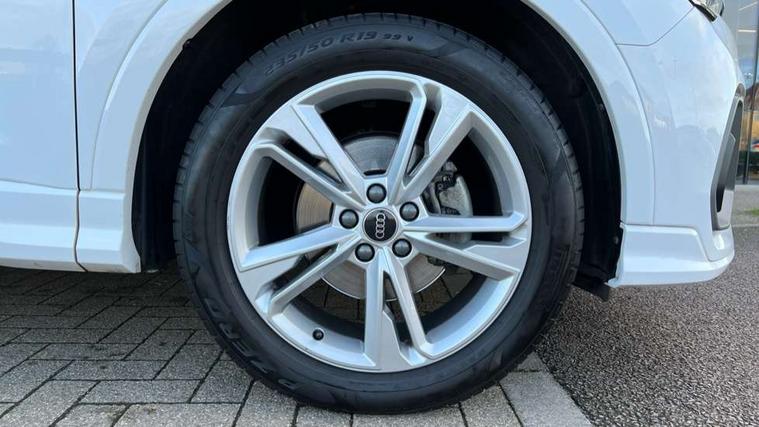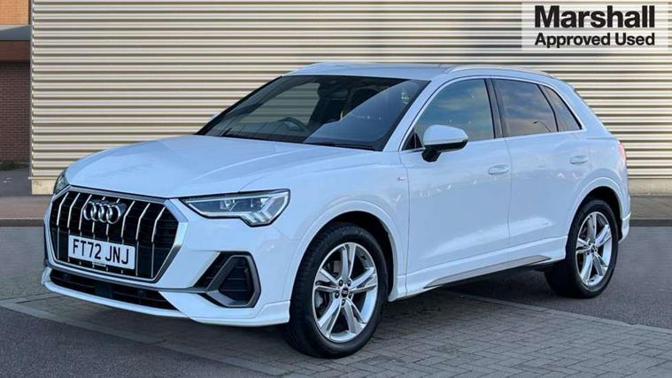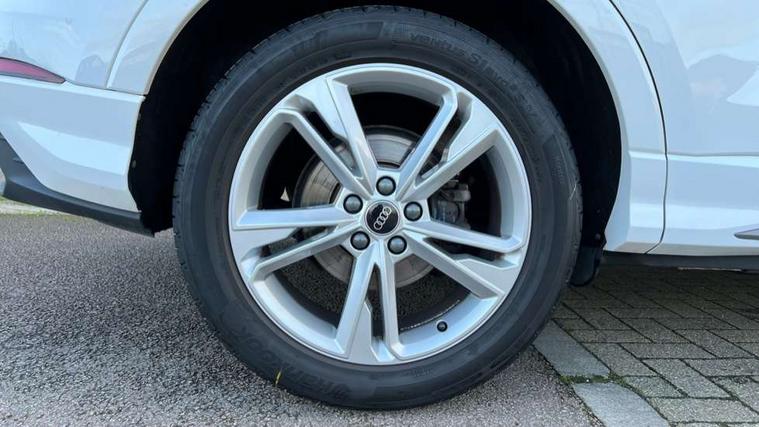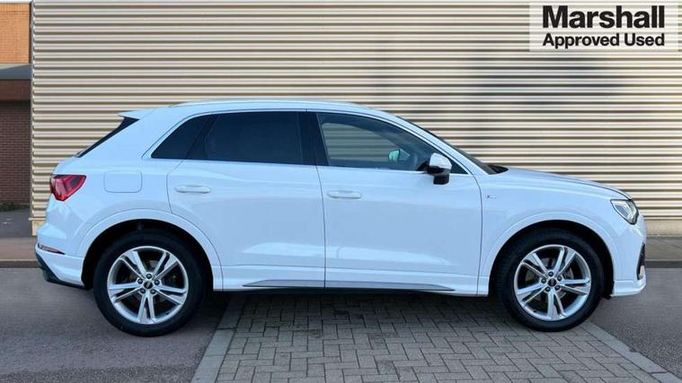 Amazon alexa Integration, Audi drive select, Audi lane departure warning, Audi Virtual Cockpit - 10.25" display, Bluetooth interface, Camera based traffic sign recognition, Legal emergency call, MMI Navigation Plus with high resolution 10.1 inch touchscreen colour display, Power operated tailgate, Progressive steering, Service interval indicator, Smartphone interface includes wireless Apple carplay/Android Auto, Start stop system with recuperation, Voice control system with natural language interaction, Sports suspension, 2 USB-C ports with charge and data functions, 6 passive loudspeakers, DAB digital radio module, Acoustic windscreen, Aluminium roof rails, Aluminium window trim, Auto dimming frameless rear view mirror, Body colour front spoiler blade, Body coloured bumpers, Electrically folding, adjustable and heated door mirrors with integrated LED side indicators and kerb view function for passenger side, Front and rear electric windows, Front fog lights, Front side air inlets in matt platinum grey, Grille vertical bars in aluminium silver/Matt, High gloss black finish B and C pillars, LED Dynamic rear indicators, LED headlights with LED daytime running lights, LED rear lights, LED third brake light, Privacy glass dark tinted rear and rear-side windows (from B-pillar backwards), Rain and light sensors, Rear diffuser grille in grained matt black, Rear diffuser strip in matt titanium black, Rear side wing doors, Rear wiper, S line badges on front wings, S Line front and rear bumpers, Side skirt insert in matt Platinium grey, Titanium black radiator grille, Variable front intermittent wipers, 12V socket in rear centre console, 3 seat bench in 2nd row, 40:20:40 folding with manual adjustment for 60:40 forwards/backwards position and backrest angle, Adjustable rear seat bench/backrest with centre armrest and cupholder, Black cloth headlining, Dual zone electronic climate control, Front and rear black floor mats with contrast stitching in rock grey, Front and rear headrests, Front and rear roof module including reading lights, Front centre armrest, Glove compartment lighting, Height and reach adjustable steering wheel, Illuminated door sill trims with S logo, ISOFIX child seat mounting for front passenger with airbag deactivation and outer rear seat including top tether attachment point for outer rear seats, Luggage compartment light, Manual front seats with height adjustment, Perforated leather gearknob, Single front passenger seat, Stainless steel luggage compartment sill finisher, Stainless steel pedals, Ambient lighting pack - Q3, Non smoking pack - Q3, 3x3 point rear seatbelts, 6 airbags - Driver, front passenger, curtain and side windows, Audi pre-sense front with pedestrain and cyclist recognition, Electrically operated child locks on rear doors, Electromechanical parking brake, Electronic stabilisation control including ABS, ASR and EDL, Front seatbelt reminder, Hill descent control, Hill hold assist, Pre sense basic, Seatbelt monitoring, Tyre pressure warning, Warning triangle and first aid kit, Anti theft alarm, Anti theft wheel bolts, Immobiliser, Remote central locking, Dark matt brushed aluminium inlay, Detail dashboard around MMI touch colour display in glass look, black with surround in aluminium look, Leatherette door armrest,