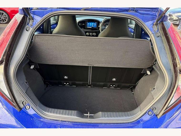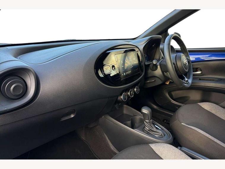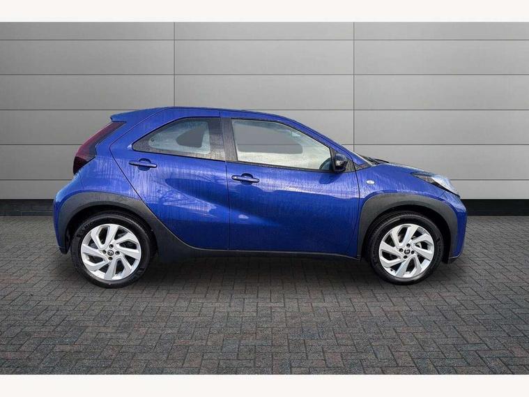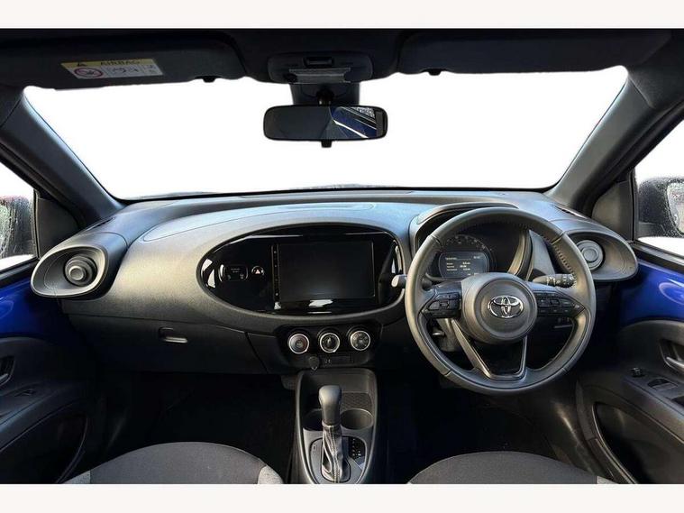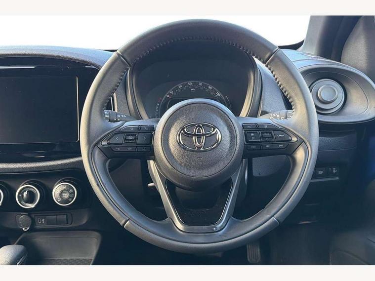 4.2" TFT colour screen, Adjustable speed limiter, Analogue speedometer, Bluetooth connectivity, Digital tachograph, Driver attention alert system, eCall emergency call system, ECO-driving indicator, Electric power steering, Intersection turn assist, Key reminder warning, Noise reduction kit, Pre collision system with emergency steering assist, Reversing camera with static guide lines, Smart phone integration with Apple car play/Android Auto, Speed limit display, Start and stop, Vehicle Stability Control (VSC), 4 speakers, 9" HD multimedia display touch screen with Toyota smart connect, DAB digital audio broadcast, USB connector, Auto headlights, Automatic headlights cut-off, Bicycle towing hook, Black lower front grille, Black rear bumper, Black side protection mouldings, Black upper front grille, Black wheel arch mouldings, Body colour door handles, Body coloured front bumper, Boot door scuff plate, Electric heated door mirrors, Follow me home headlights, Front power windows, Gloss black door mirrors, Headlight cut-off reminder, LED daytime running lights, LED front light guide, LED High mounted stop lamp, Manual day/night rear view mirror, Manual headlight levelling, Pagoda roof, Power adjustable door mirrors, Power back door, Projector halogen headlights, Rain sensor, Rear combination lights LED bulb type, Rear side wing doors, Rear windscreen defogger, Rear windscreen wiper, Short antenna, Variable intermittent windscreen wipers, 12v power outlet - front, 2 seat bench in 2nd row, 3 spoke leather steering wheel, 50/50 split folding rear seat, Adhesive roof headlining, Adjustable speed limiter switch on steering wheel, Audio and telephone switches on steering wheel, Black insert on steering wheel, Boot light, Centre room light, Chrome interior door handles, Chrome surround on air conditioning buttons, Clean air filter, Fabric upholstery, Floor mats, Front and rear cup holders, Front head rest deco art, Front head restraints, Gear shift indicator, Height adjustable driver seat, Intelligent adaptive cruise control switch on steering wheel, ISOFIX child restraint system on rear seats, Lane departure alert switch on steering wheel, Leather gearshift knob, Light grey roof lining, Manual air conditioning, Manual tilt steering wheel, Manually reclining and sliding driver seat, Manually reclining and sliding front passenger seat, Multimedia switches on steering wheel, Pollen filter, Rear door pockets, Rear head restraints, Resin console box storage, Satin silver insert on gear shift knob, Silver stitching on gear shift knob, Single compartment glovebox with lights, Single front passenger seat, Soft tonneau cover, Sun visors with mirror on driver and passenger side, Voice recognition switch on steering wheel, Toyota safety sense pack - Aygo X, Anti lock braking system + Electronic brake force distribution, Child safety door lock, Emergency brake light signal (EBS), Hill start assist control (HAC), Passenger airbag on/off switch, Seat belt reminder for front and rear seats, Supplement restraints system (SRS) - 6 airbags, Traction control, Tyre pressure warning system, Immobiliser, Remote power door locks, Black air vent surround, Black wheel centre caps, Tyre repair kit,