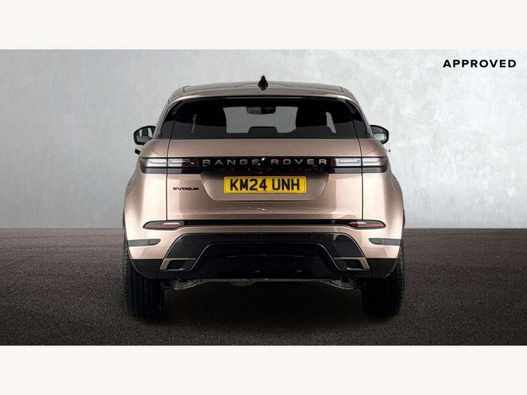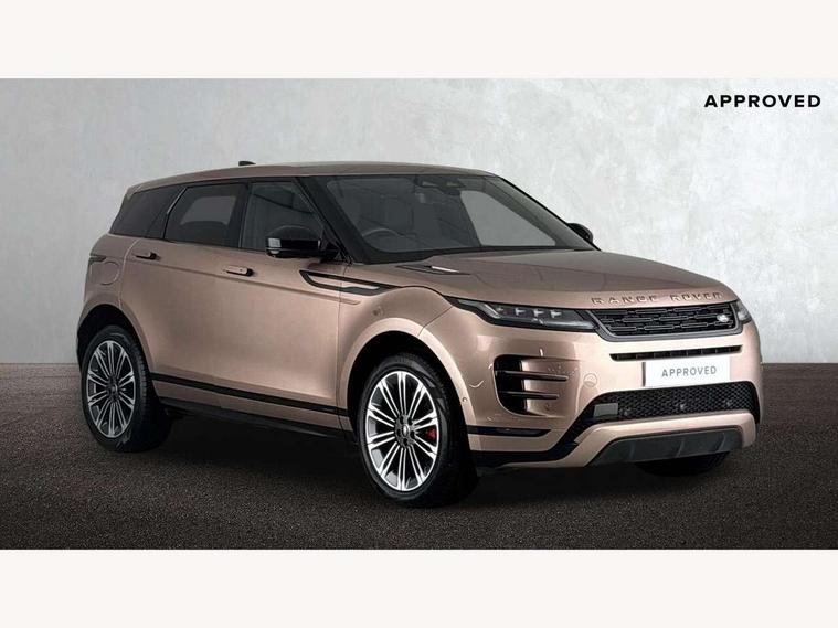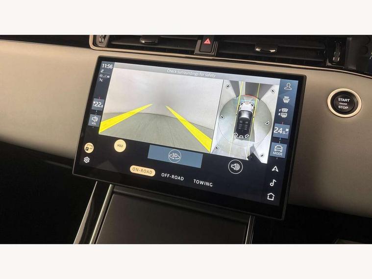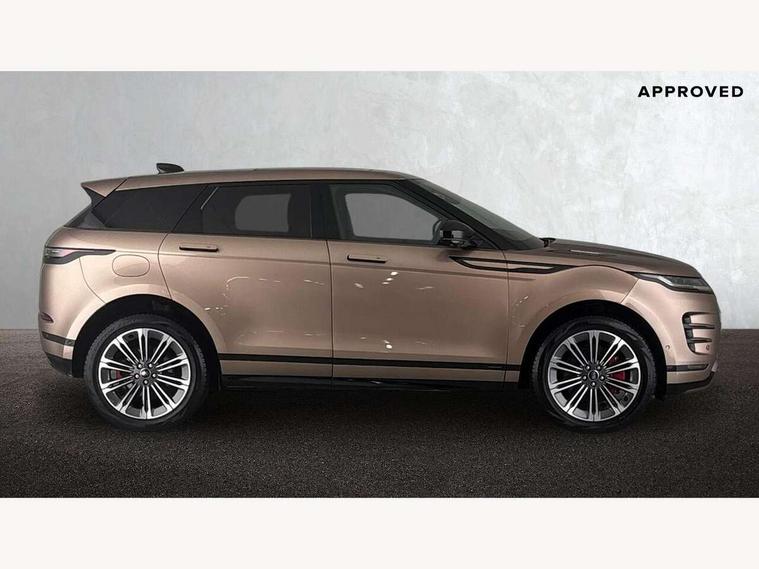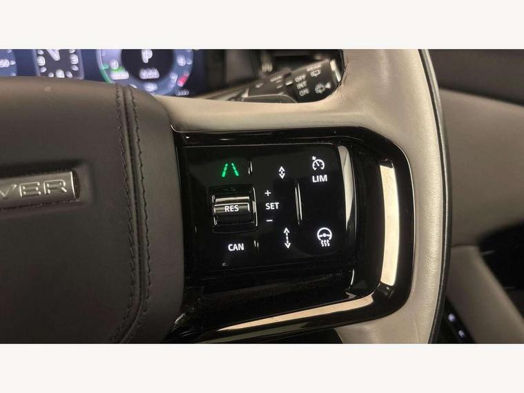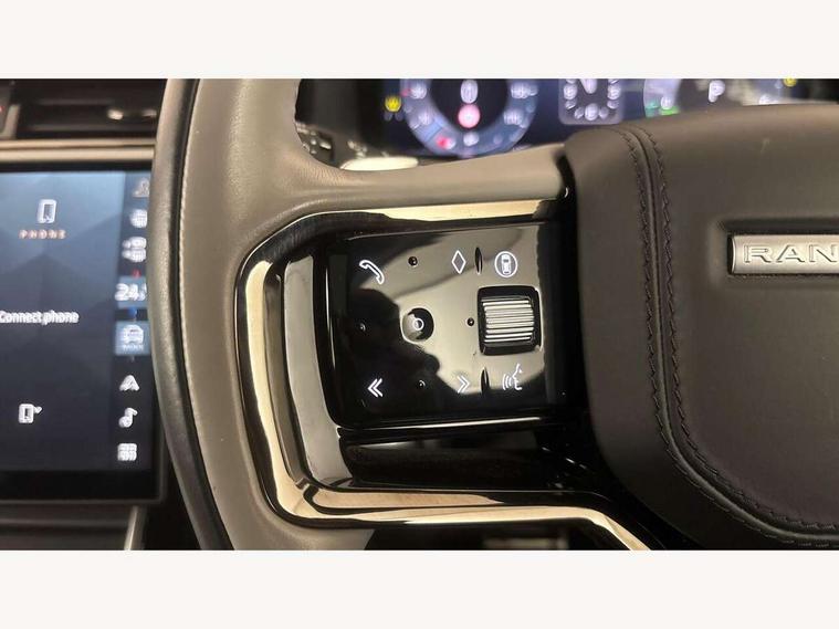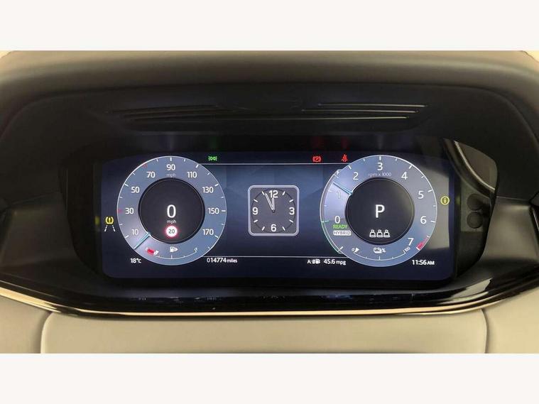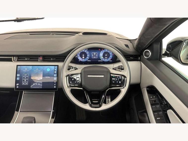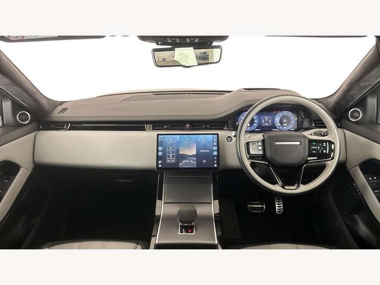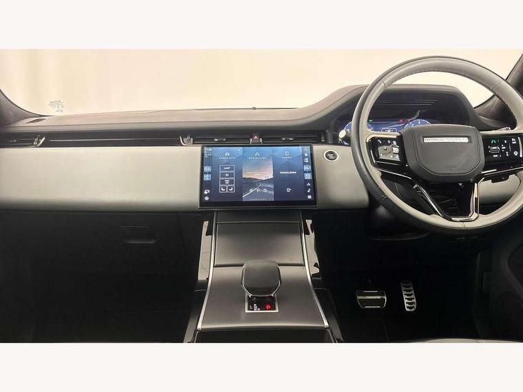 11.4" touch screen, 3D 360 degree surround camera with wade sensing, Adaptive cruise control, Android Auto, Apple car play, Blind spot assist, Bluetooth connectivity, Brake pad wear indicator warning light, Driver condition monitor, eCall emergency system, Eco mode, Electronic power assisted steering (EPAS), Front and rear parking aid, Head up Display, InControl remote, Interactive driver display, Land Rover InControl apps, Lane keep assist, Pivi pro connected includes diamond pivi variant, smart settings, connected navigation pro, nuance speech licence, Powered tailgate/boot lid, Rear collision monitor, Rear traffic monitor, Traffic sign recognition with adaptive speed limiter, Voice control system, Wireless device charging, All terrain progress control, Configurable dynamics, Electric rear axle drive, Home charging cable, Large fuel tank, Passive suspension, Public charging cable, Terrain Response 2, Digital Audio Broadcast radio-DAB, Steering wheel mounted controls, Acoustic laminated windscreen, Auto headlights, Automatic headlight levelling, ClearSight interior rear view mirror, Electric windows with one touch open/close and anti trap, Flush deployable exterior door handles, Front and rear recovery eyes, Front fog lights, Heated rear window with timer, Heated washer jets, Heated windscreen, Pixel LED headlights with signature DRL and LED tail Lights, Power fold, auto-dimming, heated door mirrors with approach lights and auto dimming driver side, Rain sensing windscreen wipers, Range rover branding illuminated metal tread plates in loadspace and row 1 with brand name script and metal in row 2, Rear animated directional indicators, Rear fog lights, Rear side wing doors, Rear wiper, Side repeater indicators in mirror, Sliding panoramic roof with powered sunblind, Tailgate spoiler, Third brake light, Winter wiper park position, 14 way driver memory electric front seats with 2 way manual headrests + 4 way lumbar support, bolsters, 40:20:40 split folding rear seats with centre headrest and armrest, Ambient interior lighting, Bright metal pedals, Cabin Air Purification plus, Configurable cabin lighting, Customer configurable single point entry, Electrically adjustable steering column with memory function and easy entry/exit, Front and rear cupholders, Heated and cooled front seats, Heated rear seats, Heated steering wheel, Isofix system on outer rear seats, Overhead lighting console, Overhead stowage for sunglasses, Passive front head restraints, Premium carpet mats, Rear air vents, Rear head restraints, Satin chrome gearshift paddles, Single passenger seat, Sunvisors with illuminated vanity mirrors, Twin sliding front centre armrest, Online pack with data plan - Evoque, Power socket pack 2 - Evoque, 3 rear 3 point seatbelts, Anti-lock braking system (ABS), Brake hold function, Customer configurable autolock, DSC - Dynamic Stability Control, Electronic brake force distribution, Electronic parking brake, Electronic traction control, Emergency braking, Front and rear seatbelt reminder, Hill descent control, Hill launch assist, Low traction launch, Occupant protection assist, Passenger seat occupant detector, Power operated child locks, Roll stability control, Six airbags - Driver and passenger airbags/driver knee airbag/front side airbag and curtain airbags, Torque vectoring brake, Tyre pressure monitoring system, Alarm, Immobiliser, Intrusion sensor, Keyless entry, Locking wheel nuts, All season tyres,