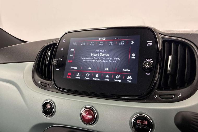 Apple car play/Android Auto, Cruise control, E-call, External temperature gauge, Power assist steering, Rear parking sensor, Speed limiter, Stop/start system, Trip computer, 4 speakers, 7" HD Touchscreen Radio, Bluetooth, USB and DAB, Rear speakers, 3rd brake light, Auto headlights, Body colour bumpers, Body coloured electrically adjustable door mirrors, Chrome plated exterior door handles, Dolcevita badge on fender, Dusk and rain sensors, Electric front windows, Fixed glass sunroof with sunblind, Front fog lights, Halogen headlamps, Heat insulated glass, Heated rear windows with wash wipe, LED daytime running lights, Rear side wing doors, Rear wiper, 1 passenger grab handle, 2 seat bench in second row, 50/50 split folding rear seats with height adjustable rear headrests, Air conditioning, Auxilliary 12V power socket, Chrome kit, Front headrests, Height adjustable drivers seat, Height adjustable steering wheel, Isofix child seat preparation, Single front passenger seat, Techno leather steering wheel with audio controls, 7 airbags - Driver, passenger, side, window and drivers knee airbags, ABS/EBD, ESC + ASR/MSR + HBA + Hill holder, Manual passenger airbag deactivation function, Traction control, Tyre pressure monitoring system, Automatic door locking, Immobiliser, Locking fuel filler cap, Remote central locking, 15" Alloy wheels,