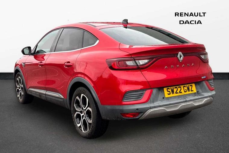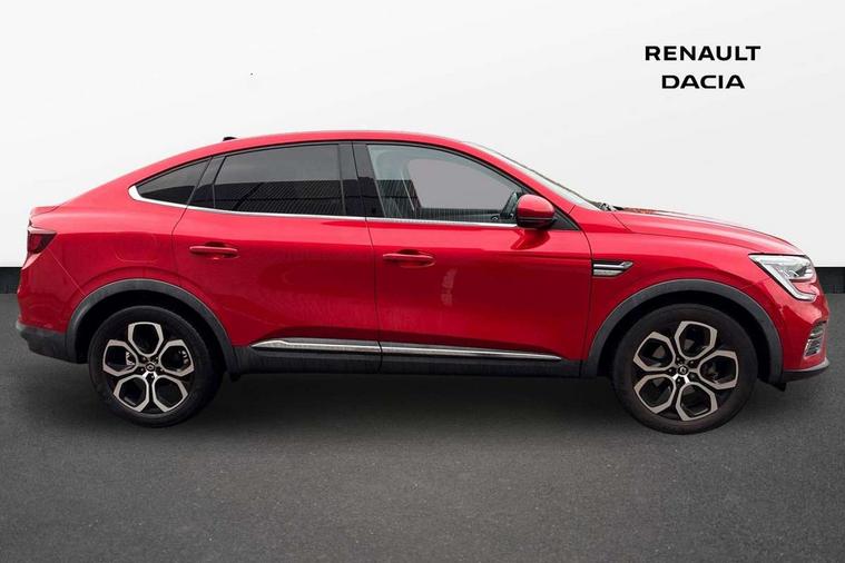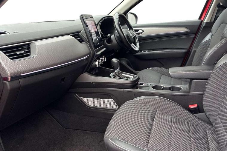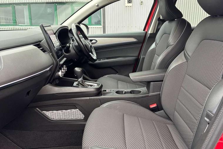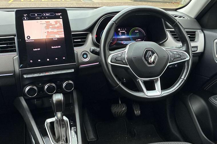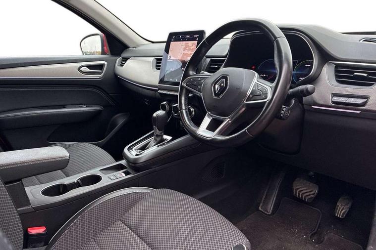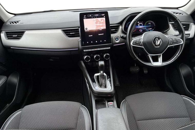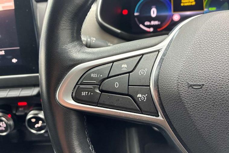 7" TFT Driver information display, Adaptive cruise control and speed limiter, Automatic high / low beam, Blind spot warning, Bluetooth system, EASY LINK 9.3" portrait touchscreen with navigation, Google search and traffic information, eCall emergency call system, Eco mode, EV button to activate pure mode, Front and rear parking sensors, Gear change indicator, Lane departure warning, Lane keep assist, Multi-sense - 3 driving modes and 8 ambient lighting, Rear cross traffic alert, Rear view camera, Renault automatic emergency assist, Smartphone integration compatible with Apple CarPlay and Android Auto, Traffic sign recognition with over speed prevention, Trip computer, Variable assistance electric power steering, DAB radio, USB port, Auto dimming rear view mirror, Automatic headlights, Automatic windscreen wipers with rain sensor, Black side door protection with chrome insert, Body coloured bumpers, C-shaped LED front signature lighting, Chrome decopart on wing (fender molding), Chrome window lower lining, Extra tinted rear windows and tailgate, Front and rear electric windows, Front grille with chrome on upper part, Full LED headlights, Grey front and rear skid plates, Heated rear window, Rear windscreen wiper, Shiny black shark fin antenna, Side mirrors adjustable electrically, electrically foldable, with defrosting and temperature sensor, automatically foldable at vehicle closure, 60:40 split and fixed base rear seats, Automatic climate control with combined filter, humidity sensor and AQS, Central console with storage, Driver's seat height adjustment, Front and rear head restraints, Height and reach adjustable steering wheel, ISOFIX child seat fixing points on rear outermost seats, Leather steering wheel, LED front and rear roof lights, Passenger seat height adjuster, Rear air vents, 3x3 point rear seat belts, ABS+EBA, Active emergency braking system, B Brake Mode - One pedal driving with increased regenerative braking, Distance warning alert, Driver airbag, Driver and passenger front and side airbag deactivation, Driver and passenger side airbags, Driver height adjustable seat belt, Electronic parking brake with auto hold, ESC (Electronic Stability Control), Front and rear no seatbelt warning sound, Front curtain airbags, Front driver window with one touch facility and anti-pinch function, Front head airbags, Hill start assist, Passenger airbag, Tyre pressure warning light, Anti drill door locks and locking fuel cap, Central door locking, Deadlocking system, Hands free keycard with Keyless access and start, RAID (Renault Anti-Intruder Device) automatic door locking, Rear side wing door and window child locking function (front driver door control panel), Superlocking, Thatcham alarm, 18" Pasadena diamond cut alloy wheels with grey inserts,