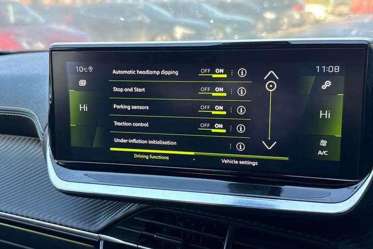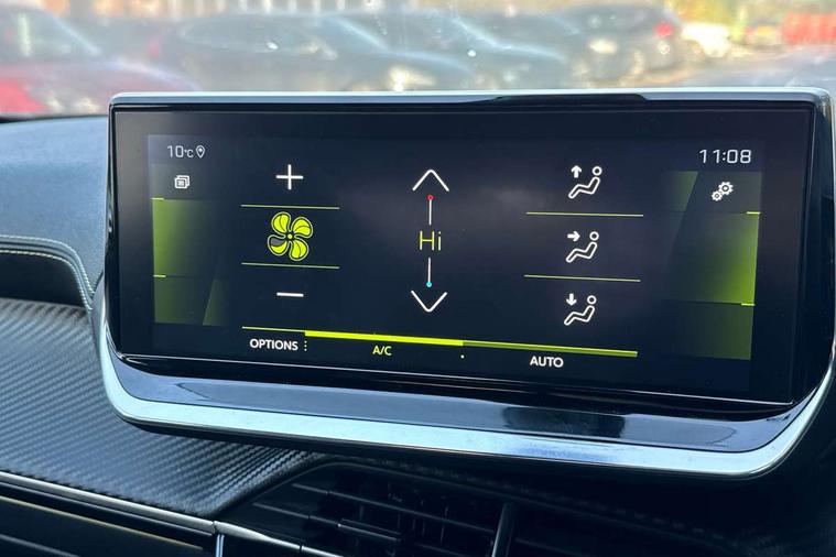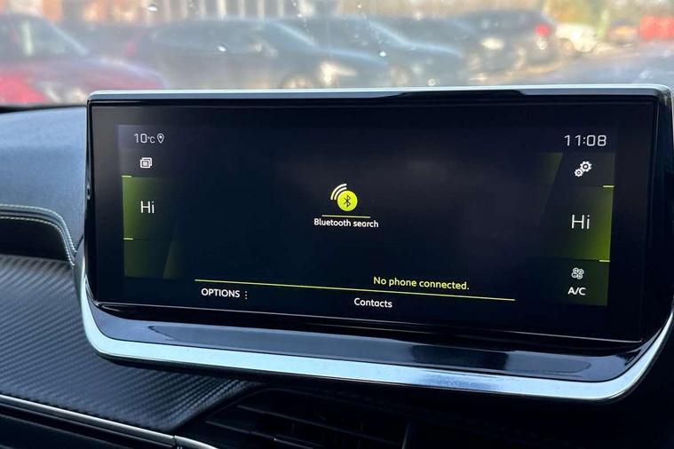 10" Capacitive colour touchscreen with connected 3D navigation with Piano keys gloss black plated toggle switches to access touchscreen, Bluetooth telephone facility, Driver attention warning, Exterior temperature indicator with ice warning, Front and rear parking sensors, Lane keep assist, Mirror screen with mirror link, apple carplay and android auto, Multi function trip computer, PEUGEOT i-Cockpit with compact steering wheel, PEUGEOT i-Cockpit with configurable 3D headup instrument panel, PEUGEOT SOS and assistance, Push button start, Smart phone docking station, Smartphone charging plate, Speed limit recognition and recommendation, Visio Park 1 with 180 degree Colour reversing camera, 2 front USB socket with USB-C, 2 USB sockets in rear, 6 speakers radio with mp3 compatible, DAB Radio (Digital Audio Broadcasting), Voice recognition for radio, navigation and telephony features, 2 X Rear number plate lights, Automatic hazard light activation upon heavy brake application, Black front wing trim with gloss black detail and GT line badging, Body coloured exterior door handles, Chrome exhaust tailpipe, Chrome front lower bumper, Dark tinted rear side and tailgate windows, Diamond black rear spoiler (roof), Electric, heated, and power folding door mirrors, Frameless electrochrome interior rear view mirror, Front windscreen wiper, Full LED headlights with smartbeam assist, Gloss black finish on B pillar, Gloss black rear cluster connecting strip, Gloss black roof bars, Gloss black window surround, GT Line model designation badging on tailgate, Headlights left on audible warning, LED daytime running lights with 3 claw headlight with distinctive tooth design, LED front fog lights, LED side indicator lights integrated into door mirrors, Model designation badges front and rear, Nera black door mirror shells, One touch electric front/rear windows with pinch protection, Radiator grille - Dark chrome chequered and gloss black edge trim, Rear full LED 3D peugeot signature claw effect lights with daylight function, Rear reversing lights, Rear windscreen wiper triggered automatically in reverse gear, Stainless steel door sill scuff plates, Tailgate with heated rear windscreen and wiper blade, Wheel arch extensions, 1/3 to 2/3 split folding rear seats, 12V socket, 8 Colour personalisable ambient lighting, Aluminium pedals, Automatic air conditioning, Central front armrest with storage compartment, Driver and front passenger seat manual adjustment in longitudinal and back rest angle, Driver and front passenger seat mechanical height adjustment, Driver and front passenger sport seats, Electric power steering with reach and rake adjustable steering column, Front and rear carpet mats in black with lime green stitch detail, Front LED interior light with 2 reading spotlights and rear interior light with timer, Gear lever - manual in satin chrome, Gear shift indicator, Heated front seats, High centre console, ISOFIX child seat mounting points on passenger seat, Lime green contrast stitching to front centre console, door panels and dashboard facia, Mistral full grain perforated leather steering wheel with aikinite stitch detail and satin chrome 'GT Line' emblem, Modular boot floor, Piano keys gloss black plated toggle switches to access main functions of the vehicle, Roof lining - Mistral black, Seatbelt unfastened on the move audible and visual alert for front and rear seats, Visibility pack - 2008, 2x 2nd row ISOFIX child seat mountings, ABS (Anti-lock Braking System) with EBD (Electronic Brakeforce Distribution) and EBA (Emergency Braking Assistance), Active safety brake with night function/cyclists/pedestrians, Adaptive driver and front passenger airbags with passenger airbag deactivation function, Child locking functionality on rear doors, Driver/front passenger side airbags, Electric parking brake, ESP (Electronic Stability Program) + Hill Start Assist, Front and rear curtain airbags, Front and rear disc brakes, Front and rear three-point retractable seatbelts, with force limiters, Front optimised safety headrests and rear retractable headrests (x3), height adjustable, Tyre pressure sensor, Automatic door locking when moving off, Deadlocks, Electronic code immobiliser, Thatcham Cat.1 alarm, Carbon effect Dashboard, front and rear door panel finish, 18" Bund diamond cut alloy wheels,