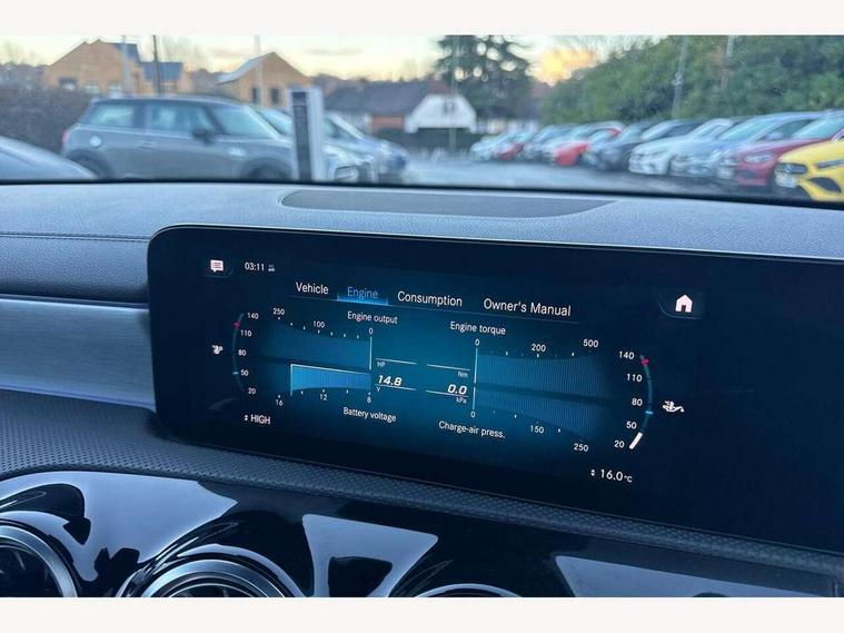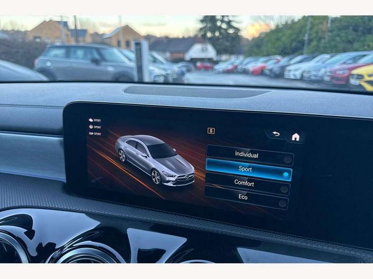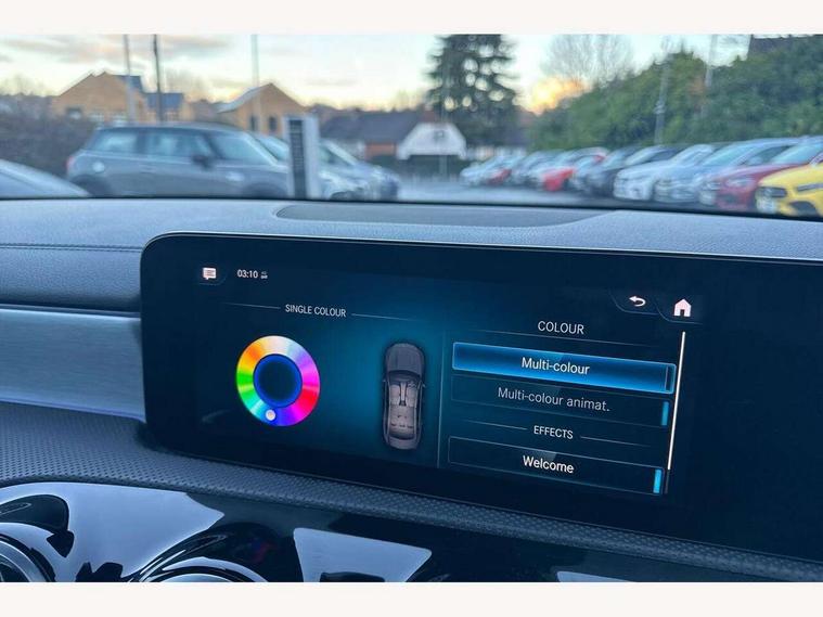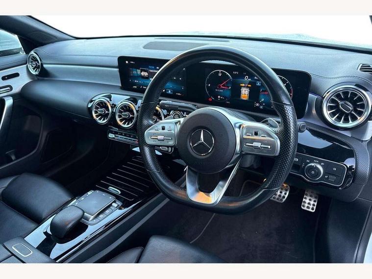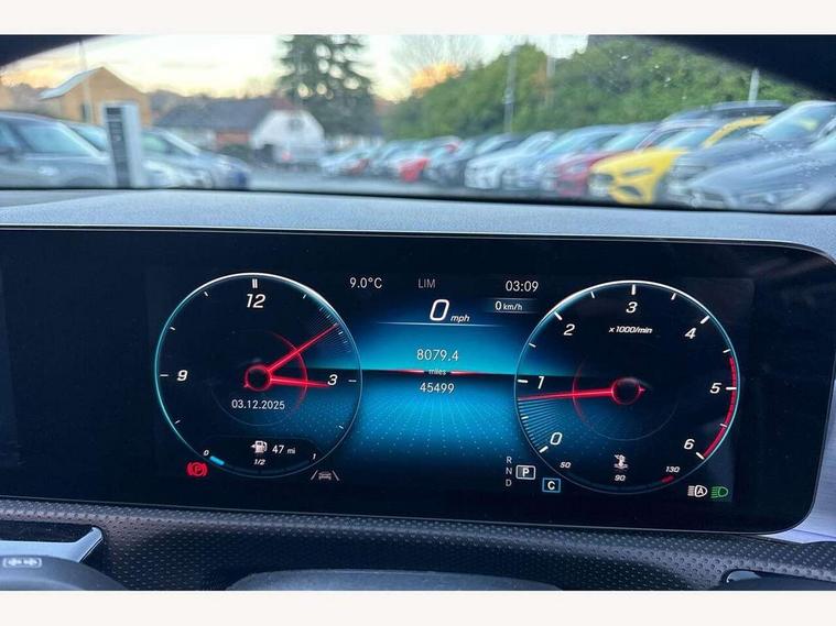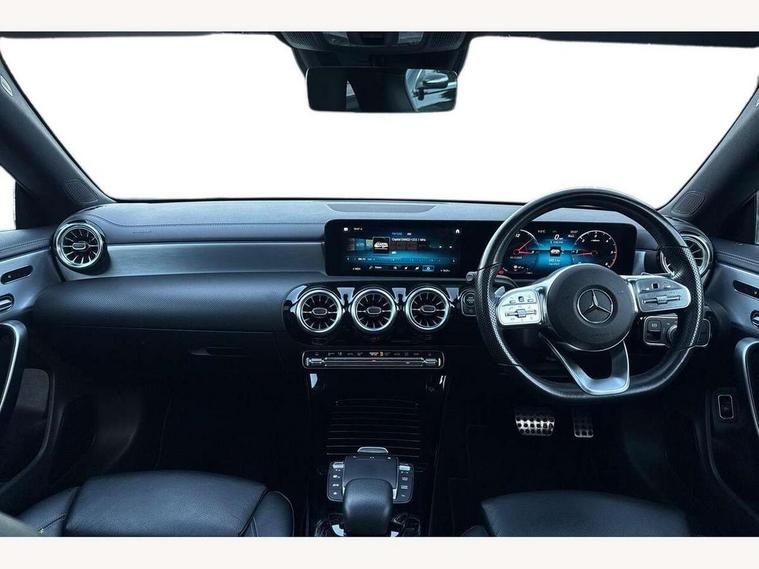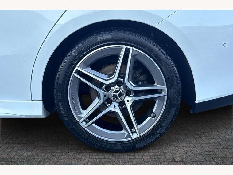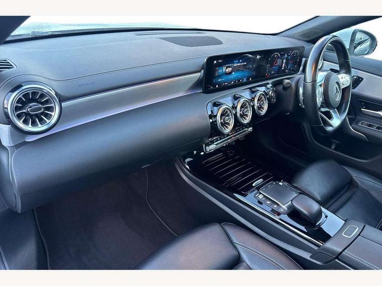 10.25 inch Instrument display with digital cockpit, 10.25 inch touchscreen central media display, Attention assist - Monitors steering behaviour and long journey fatigue, Bluetooth connection, Car wash mode, DYNAMIC SELECT with a choice of driving modes (ECO, Comfort, Sport and Individual), ECO start/stop function, Fluid level warning indicator for fuel, oil, coolant and washer fluid, Hard-disk navigation, Hey Mercedes Voice activation, Lamp failure indicator, MBUX augmented reality for navigation, Mercedes me connect including emergency call system, accident recovery, breakdown and maintenance management, Mercedes me remote services, Outside temperature gauge, Owners manual and service booklet in English, Pre-installation of private car share, Preinstallation for Mercedes Benz link, Radio aerial integrated into front and rear windshields, Remote and charging services plus, Service indicator (ASSYST), Smartphone integration with Apple CarPlay and Android auto, Traffic sign assist, Trip computer in multifunction display with current consumption indicator, Wireless charging, Lowered comfort suspension, Rear axle multi-link, DAB digital radio tuner, MBUX multimedia system with DAB digital radio and touchpad including satellite navigation, Mercedes Benz advanced sound system (225 W) with 10 speakers, 1 central speaker, speakers on doors, a tweeter on door, one sub woofer + boost amplifier, USB (type C) ports (2) in stowage compartment and 1 in front of centre console, Adaptive brake lights, AMG body styling with AMG front apron and rear apron and visible exhaust tailpipe in chrome trim elements, AMG bodystyling side skirts, Body colour bumpers, Body colour door handles, Chrome beltline strips, Chrome weather strip, Diamond radiator grille pins in chrome with silver painted louvres and chrome insert, Electric panoramic sliding sunroof, Electric windows, Electrically adjustable and heated door mirrors with integrated LED indicators, Exhaust system with 2 Visible tailpipe trim elements and rear apron with trim in chrome, Headlamp assist automatic headlamp activation, Heated glass rear windscreen + timer control, High level LED third brake light, Integrated LED daytime running lights, Interior mirror with black reading lamps and frameless, LED tail lamp, Multibeam LED headlamps with adaptive highbeam assist plus, Privacy glass with dark tinting on rear side windows and rear window, Rain sensing windscreen wipers with two sensitivity settings, Rear fog lamp, Window line trim strip in chrome, 3 spoke flattened bottom nappa leather multifunction steering wheel with perforated leather in grip area, 40:20:40 split folding rear seat backrests, Air conditioning - Two zone thermotronic luxury automatic climate control with display, Air vents with surround in silver chrome, Automatic child seat recognition sensor, Black roof lining, Brushed stainless steel sports pedals with rubber studs, Electrically adjustable front memory seats including lumbar support, Floor mats with stitched AMG lettering, Front centre armrest with stowage, Galvanished gear shift paddles on steering wheel, Heated front seats, Illuminated front door sills with changeable cover, Illuminated glove compartment stowage, Interior lighting - 64 colour Ambient lighting, Luggage net on driver/front passenger seat backrest, Manually height and reach adjustable steering column, Rear armrest with two integral cup holders for drinks, Rear head restraints, Sport seats with fixed head restraints, Stowage compartment in centre console with retractable cover, Sunvisors with illuminated vanity mirrors, Touchpad on center console, Twin front cupholders, Two outer rear seat isofix and top tether child seat fixing points, Keyless go pack - CLA, Light and sight pack - CLA, Mirror pack - CLA, Parking package - CLA, Seat comfort pack - CLA, Active bonnet pedestrain safety measure which detects an impact and raises bonnet by 65mm, Adaptive brake assist with hold function and hill start assist, Anti-lock braking system (ABS), Black seat belts, Bonnet with power domes, Brake pad wear warning indicator, Childproof locks manually operated for rear doors and electrically operated for rear power windows, Crash responsive emergency lighting, Driver and front passenger head and sidebags, Driver and front passenger windowbags, Drivers knee airbag, Dual stage driver and front passenger airbags, Electric parking brake, Electronic stability programme with acceleration skid control, ESP curve dynamic assist, Front and rear seatbelt reminder, Front passenger seat occupancy sensor, Perforated front brake discs, Three point rear seat belts, Tyre pressure monitoring system, Warning triangle and first aid kit, Remote central locking and crash sensor with emergency opening function, Urban guard vehicle protection system with immobiliser and interior protection, Light aluminium with longitudinal grain interior trim, 18" 5 twin spoke design alloy wheels painted in titanium grey with high sheen finish, Summer tyres, Tirefit tyre sealant kit,