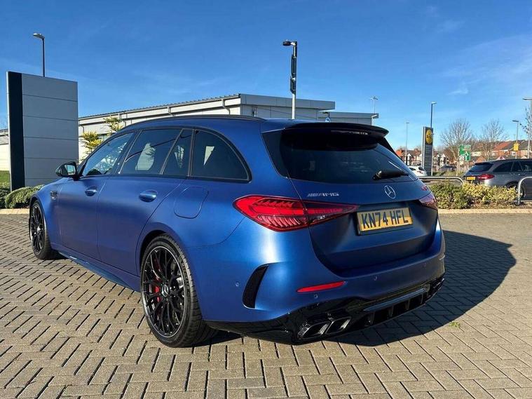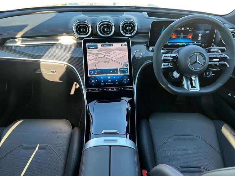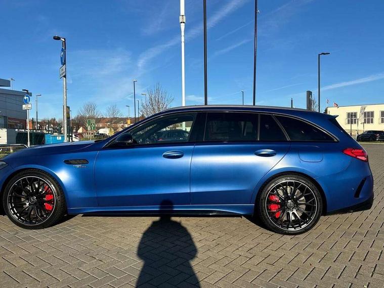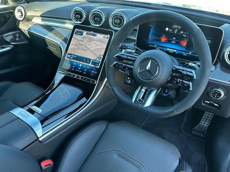 11.9" high resolution multimedia colour display, 12.3" digital instrument cluster display, Acoustic ambient protection, Active parking assist with PARKTRONIC, AMG DYNAMIC SELECT with a choice of eight driving modes(Electric, Comfort, Battery Hold, Sport, Sport+, Race, Slippery and Individual), AMG track pace, Attention assist, Charging services plus, E-call, Extended MBUX functions, Finger print sensor, Fluorescent jacket for driver, Hard disc navigation, Head up Display, MBUX augmented reality for navigation, MBUX navigation premium, Mercedes me remote services, Outside temperature gauge, Rear axle steering, Service indicator (ASSYST), Smartphone integration, Sports direct steer speed sensitive steering, Status display for rear seat belts in instrument cluster, Tailgate, Traffic sign assist, Wireless charging system for mobile devices, 5m charging cable for household socket (mode 2), 5m charging cable for wall box/public charging stations(mode 3), AC charging, AMG Ride Control suspension, AMG speedshift MCT 9G with wet starting clutch and race start function, Petrol Particulate Filter, Suspension with adaptive damping system, Burmester 3D surround sound system, DAB Digital radio, MBUX multimedia system, Adaptive brake lights, Adaptive high beam assist plus, AMG body styling front apron, rear apron and side skirts, AMG fuel cap, AMG illuminated door sills with AMG lettering and with exchangeable cover, AMG Real Performance Sound, Black roof rails, Body coloured bumpers, Digital light LED headlamps, Electric panoramic glass sunroof, Electric windows with one touch opening/closing and obstruction sensors, Electrically adjustable and heated door mirrors, Flared wheel arches, Heat insulating dark tinted glass, High gloss black AMG performance spoiler lip, LED daytime running lights, LED Indicators, LED tail lights, LED third brake light, Mercedes AMG exterior, Noise acoustic glass, Rain sensor with automatic windscreen wiper activation, Rear side wing doors, Rear wiper, 3 seat bench in 2nd row, 40:20:40 split folding rear bench seat, Ambient lighting premium, Ambient lighting with projection of brand logo, AMG floor mats, AMG Nappa leather upholstery, AMG Performance steering wheel in nappa leather/microcut microfibre, AMG steering wheel buttons, Auto Mercedes-Benz child seat recognition sensor, Black roof liner, Double cupholder in centre console, Electrically height/reach adjustable steering column, Folding rear seat backrest, Front and rear head restraints, Gearshift paddles on steering wheel, Illuminated glove compartment stowage, Load compartment cover, Mercedes AMG interior, Rear top tether child seat ISOFIX attachment, Single front passenger seat, Sunvisors with illuminated vanity mirrors, THERMATIC 2 zone automatic climate control, AMG aerodynamics package - C Class C63, AMG drivers pack - C Class, AMG exterior night pack - C Class, Boot comfort package - C Class, Easy pack tailgate - C Class, Interior light package - C Class, Keyless go comfort package - C Class, Memory package - C Class, Mirror package - C Class, Parking package with 360 degree camera - C Class, Stowage space pack - C Class, USB package plus - C Class, 3 rear 3 point seatbelts, Active bonnet pedestrian safety measure which detects an impact and raises bonnet, Adaptive brake system with HOLD function and brake drying in the wet, Anti-lock braking system (ABS), Black seat belts, Child proof door locks, Drivers knee airbag, Drivers pelvis airbag, Dual stage driver/passenger airbags, Electric parking brake, Electronic Stability Programme (ESP), Front centre airbag between driver and front passenger seats, Front side airbags, Red brake callipers, Tyre pressure monitoring system, Warning triangle and first aid kit, Window airbags for driver, front passenger and rear passenger, Antitheft alarm system, Interior monitoring system and Increased antitheft protection, Central locking with interior switch, automatic locking and crash sensor with emergency opening function, Chrome surround electric key, Dashcam, Urban guard vehicle protection plus, Carbon fibre trim with centre console in high gloss black, Dashboard, instrument panel and beltlines in ARTICO man made leather in nappa look, 20" AMG cross spoke light alloy wheels painted in high gloss black with high sheen finish, TIREFIT with tyre inflation compressor,