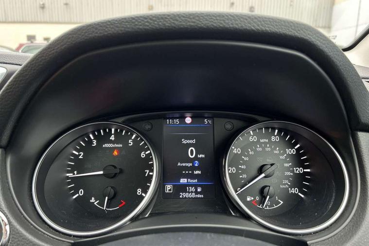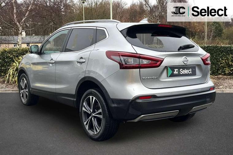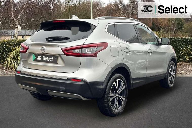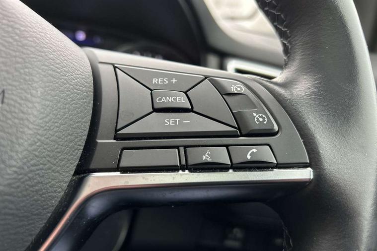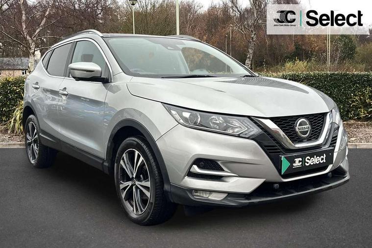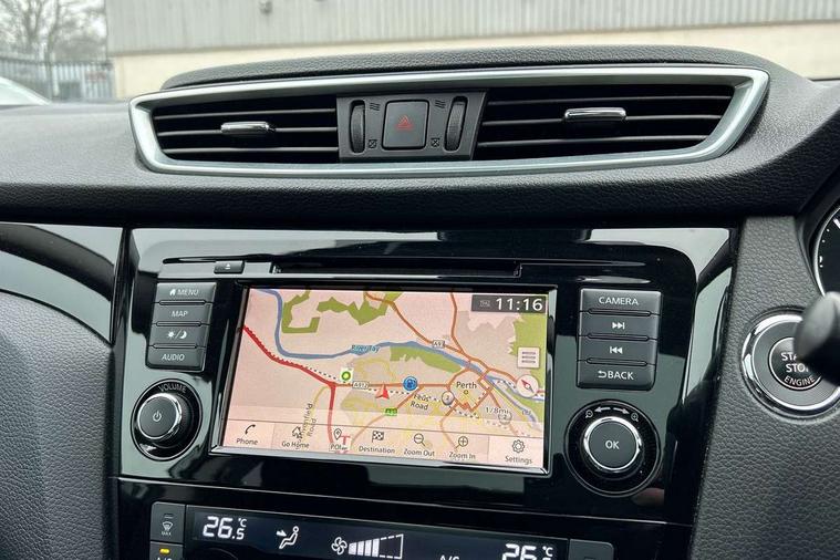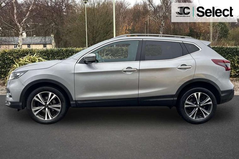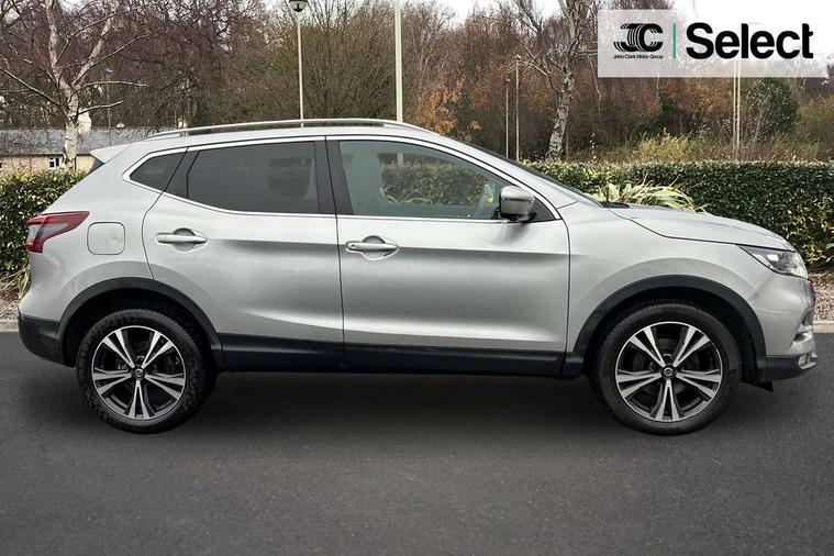 360 degree Intelligent around view monitor, Advanced drive assist display 5'' TFT coloured screen, Apple car play/Android Auto, Bluetooth connectivity, Cruise control + speed limiter, Electric speed sensitive power steering, Front parking sensors, Idle stop/start system, Intelligent park assist, Lane departure warning system, Nissan connect evo 7" touchscreen navigation and entertainment system, Normal or sport selectable steering, Outside temperature sensor, Premium Tomtom connected services, Push button starter, Rear parking sensors, Service interval indicator, Smartphone integration, Traffic sign recognition, Trip computer, Voice control system, Nissan chassis control (intelligent ride control, intelligent trace control, intelligent engine brake), 6 speakers, AM/FM radio, CD audio system, Aux-in socket, DAB Digital radio, Steering wheel mounted audio controls, USB port, Anti dazzle rear view mirror, Auto wipers, Body colour bumpers, Body coloured door handles, Body coloured door mirrors, Chrome window surround, Daytime running lights dip function when turn signal applied, Electric folding door mirrors, Electric front and rear windows with one touch illuminated window controls, Electrically adjustable door mirrors, Front fog lights, Halogen headlights, Heated door mirrors, High beam assist, Intelligent auto headlights, LED indicators in door mirrors, Matt silver roof rails, Privacy glass, Rear roof spoiler, Rear wiper with reverse link, Shark fin antenna, Signature LED daytime running lights, Silver rear styling plate, Underbody vortex generators, 2 X front 12v power sockets, 3 height adjustable rear headrests, 60/40 split folding rear seat, Ambient interior lighting, Ambient lighting around centre console, Bi-colour cloth upholstery, Boot lighting, Centre console storage box/armrest, Chrome interior door handles, Driver's seat manual height adjust, Dual zone climate control, Front and rear door pockets with bottle holders, Front and rear seat belt pre-tensioners with load limiters, Height adjustable front headrests, ISOFIX restraints on outer rear seats x2, Leather D shaped steering wheel, Leather gear lever, Leather knee pad, Luggage board system, Manual height adjustable passenger seat, Manual lumbar support on driver seat, Manual lumbar support on passenger seat, Monoform front sport seats with plastic backboard, Parcel shelf stow function under luggage board, Pollen filter, Rear armrest with 2 cupholders, Synthetic leather wrapped door handle with contrasting stitching, Tilt/telescopic adjustable steering wheel, Velour floor mats, Glass roof pack - Qashqai, 6 airbags - Driver, front passenger, curtain and side airbags, ABS, ESP, EBD and brake assist, Auto hold function, Child locks on rear doors, Electronic parking brake, Front and rear seat belt warning, Height adjustable front seatbelts, Hill start assist, Intelligent emergency braking with pedestrian recognition, Passenger airbag deactivation system, Three 3 point rear seatbelts, Tyre pressure monitoring system, Anti-theft immobiliser, Intelligent Key, Remote central locking, Thatcham Cat.1 alarm, Carbon graphite dash trim, 18" Two tone alloy wheels,