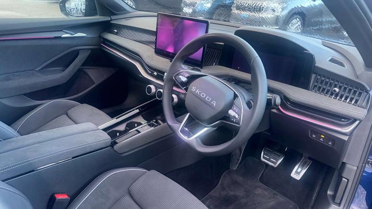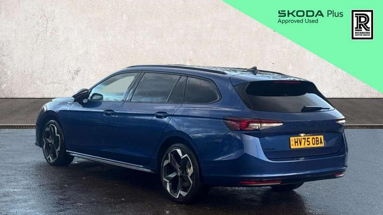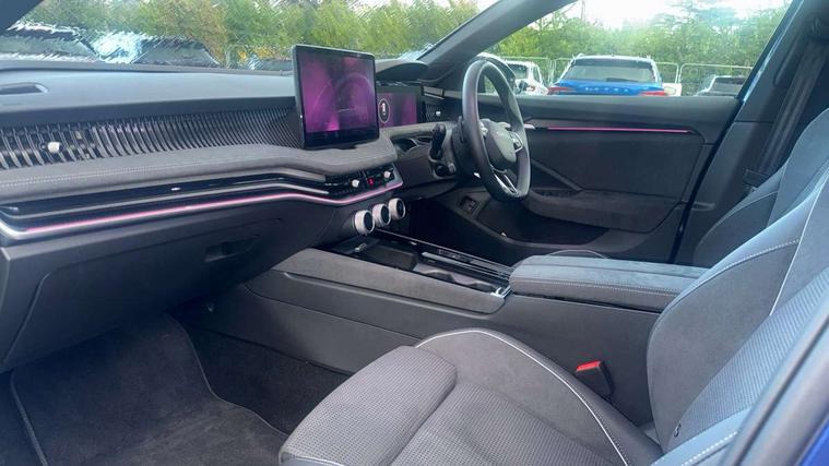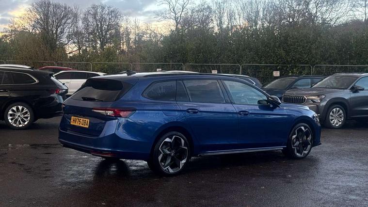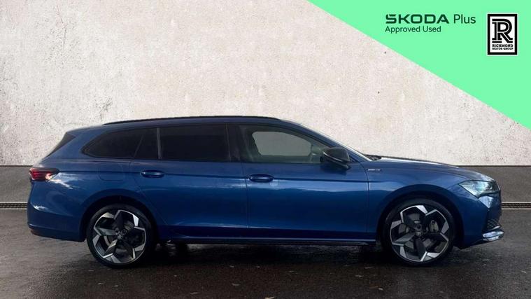 13" touchscreen display with satellite navigation, 4x USB-C ports (2x in front centre console and 2x in rear) (45W), Adaptive cruise control with speed assist, lane assist plus and traffic tram assist, Blind spot detection with door exit warning, Bluetooth system, CareConnect and Emergency Call, ChatGPT functionality, Drive mode selection, Driver fatigue sensor, Front assist with extended predictive pedestrian protection, Front cross traffic assist, PAS, Quick start all heating software functionality, Stop/start engine system, Traffic sign recognition, Turn assist with evasive assistance, Virtual Cockpit - 10.25" digital display, Voice control system, Washer for rear camera, Wireless charging for one smartphone (15W) with cooling function, Wireless smartlink apple carplay, SmartLink+ android auto, Dynamic chassis control plus with progressive dynamic steering, Mode 3 charging cable, DAB Digital radio, Display cleaner, FM radio connection, Web radio connection, Acoustic side windows and interior noise suppression, Backdrop lighting, Black exterior styling window and grille surrounds, Black roof rails, Body colour door handles, Dynamic range control with poor weather light and integrated fog light, Electrically adjustable, heated, folding and driver side auto-dimming door mirrors with memory function, integrated indicators and logo projection, Frameless auto-dimming rear view mirror with USB-C, Gloss black door mirrors, Ice scraper in fuel tank cap, LED 3rd brake light, Light assist with High beam control, Light assistant (coming/leaving home/tunnel light), Privacy glass, Rear fog lights (x2), Rear roof spoiler, Rear side wing doors, Rear windscreen wiper, Skoda lettering in black, Sportline badging, Sports bumpers, Windscreen wipers with rain sensor, 12V socket 1x centre console 1x boot, 14-way electrically adjustable, memory, front seats with 4-way pneumatic lumbar support, and extendable thigh support with smart comfort entry aid, 2x cargo elements in boot, 2x light in boot, 3 seat bench in 2nd row, 4x foldable bag hooks in boot, 60:40 Split folding rear seats, Aluminium pedals, Bottle holders in the front doors 1.5 litre bottle and rear 1.5 litre bottle, Cup holder in front with easy open mat, Front armrest with storage box, Front sports seats, Heated and ventilated front seats, Height adjustable front and rear head restraints, Illuminated glovebox, Interior lights with control switches, Isofix child seat fittings in outer rear and front passenger seats, LED front and rear reading lights, Single front passenger seat, Skoda lettering on steering wheel, Storage compartment with cover, Storage pockets on back of front seats, Sun visors with illuminated vanity mirrors, Ticket holder on A Pillar, Tri zone climate control, Umbrella in driver's door, Light and view package - Superb, Transport package - Superb Estate, 3 rear seatbelts, 8 Airbags - Front driver and passenger, front side driver and passenger, centre, curtain front and rear, drivers knee, Crew protect assist, Driver and passenger seatbelts with warning light, Electronic parking brake, ESC including ABS, EBV, MSR, ASR, EDS, HBA, DSR, RBS, CBC, multi-collision brake (MKB) and Auto hold, Hill hold assist, Power operated child lock in rear doors, Alarm with interior monitoring tilt sensor and back up horn, Backrest remote release from trunk, Electronic engine immobiliser, Keyless start/stop, Remote central locking with SAFE system, Third key, Walk away locking, Decorative front door sills, 19" Torcular polished black alloy wheels with anti theft wheel bolts, Tyre repair kit,