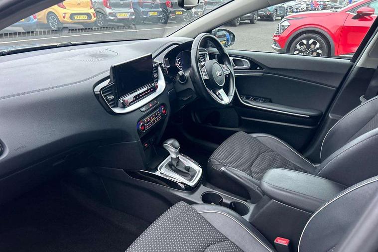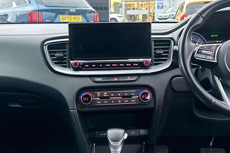 10.25" touchscreen satellite navigation including telematics, 4.2" supervision colour cluster display, Apple car play/Android Auto with voice control, Bluetooth with Voice Recognition & Music Streaming, Drive mode selector, Driver attention warning, Emergency stop signalling system, Kia connected services featuring TomTom live, Lane Following Assist (LFA), Lane keep assist, Motor driven power steering, Outside temperature gauge, Rear parking sensor, Reversing camera with dynamic guide lines, Service interval indicator, Speed limit information function (SLIF), Trip computer, Intelligent Stop and Go, 6 speaker audio system, DAB Radio with MP3, Illuminated USB ports, Steering wheel mounted controls, USB Fast Charger in Front Centre Console, USB port for connection of a media device, All-round Electric Windows with Front Auto Up & Down Function, Auto dimming rear view mirror, Automatic defog system, Automatic headlights, Body colour bumpers, Body colour door mirrors, Body colour exterior door handles, Body coloured rear spoiler, Chrome window surround, Electric adjustable/heated/folding door mirrors with LED Indicators, Front fog lights, Halogen projection headlights, Heated rear window with timer, High beam assist, High gloss black radiator grille, LED daytime running lights, LED High-mounted Brake Light, LED rear lights, Privacy glass (rear side windows and rear screen), Rain sensing front wipers, Rear wash/wipe, Tinted glass, Wide view drivers door mirror, Windscreen Washer Level Warning, 12V socket in luggage compartment, 3 x passenger assist grips, 60/40 split folding rear seat, All-round height adjustable headrests, Cloth/faux leather bolsters upholstery, Cupholders in centre console, Cupholders in rear armrest, Dash illumination dimmer switch, Driver & Front Passenger Sunvisors with Vanity Mirror Illumination & Ticket Holder, Driver + front passenger electric lumbar support, Driver's seat height adjuster, Dual Height Luggage Area Floor, Dual zone automatic air conditioning, Faux leather door trim, Front and rear door storage, Front map light with sunglasses case, Front Passenger Seat Height Adjuster, Front seat and rear pockets, Gear shift indicator, Headlining in Light grey, Illuminated ignition key hole, Interior door lock/unlock function, ISOFIX Child seat top tethers and anchor fixings, Leather handbrake, Leather steering wheel and gearshift, Luggage area light, Luggage area parcel shelf, Luggage hooks, Rear centre armrest, Rear coat hooks, Satin chrome interior door handles, Tilt/telescopic adjustable steering wheel, ABS with Electronic Brakeforce Distribution (EBD) and Brake Assist System (BAS), All round 3-point seatbelts, Dual front side airbags, Dual horn, Electronic stability control (ESC) and vehicle stability management (VSM), Front passenger airbag deactivation, Height adjustable front seatbelts, Hill start assist control (HAC), Impact sensing auto door unlocking, Rear door child safety locks, Seatbelt reminder warning, Traction control, Twin curtain airbags, Twin front airbags, Tyre pressure monitoring system, Alarm system, Engine Immobiliser & Deadlocks, Locking wheel nuts, Remote central door locking with fold away key, Speed sensitive auto door locking, Black high gloss front console tray garnish & door trim, Satin Chrome Fascia Trim, 17" Alloy wheels, Tyre mobility kit,