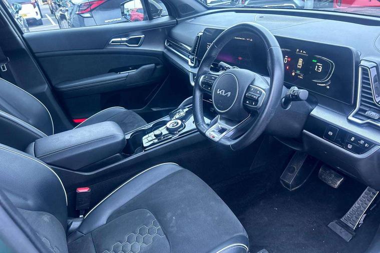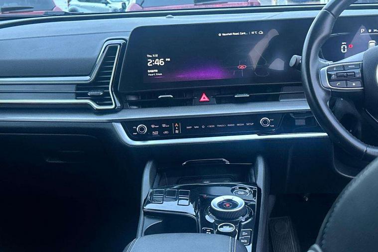 12.3" Display with navigation, 4.2" supervision colour cluster display, Apple car play/Android Auto with voice control, Drive mode selector, E-call, Forward collision avoidance assist (FCA) - city/pedestrian/cyclist/junction covering, Front and rear parking sensors, Highway Driving Assist (HDA), Intelligent speed limit assist, Kia Connect (UVO), Lane Following Assist (LFA), Lane keep assist, Low washer fluid warning, Rear view monitor, Reversing camera system integrated into centre fascia screen, Smart cruise control with stop and go functionality, Speed sensitive power steering, Trip computer, Windscreen washer level indicator, Intelligent Stop and Go, 6 speaker audio system, Bluetooth audio streaming, DAB Radio with MP3, Rear USB port, Steering wheel mounted audio controls, USB C type charging ports on centre console, USB C type charging ports on side of front seats, USB port for connection of a media device, All round electric windows with drivers and front passenger auto up/down function, Automatic headlight control system, Automatic window defogger, Backlite glass heated with timer, Body colour and black bumper with silver accents, Body colour exterior door handles, Body colour radiator upper garnish and door garnish, Electrically adjustable/heated/folding door mirrors with LED indicators, Front and rear chrome skid plates, Gloss black door mirrors, Gloss black radiator grille, Gloss black side sill and wheel arch body mouldings, Glossy black roof rack, High beam assist, Interior electrochromic mirror, LED daytime running lights, LED front fog lamps, LED headlamps (low and high beam - MFR type), LED High mounted stop light, LED rear combination lamp, Rain sensing wipers with aero blades, Rear fog lamp, Rear privacy glass, Rear side wing doors, Rear spoiler, Rear wiper, Satin finished beltline, Trailer stability assist, 12V power socket in front centre fascia and luggage compartment, 2nd row personal lamps, 3 seat bench in 2nd row, 3 x passenger assist grips, 40/20/40 split folding rear seat, All-round height adjustable headrests, Black headlining, Centre console storage box, Cupholders in rear armrest, D-Shaped sports leather steering wheel and perforated inserts with GT-Line logo, Door courtesy lamps, Drink holder at centre armrest, Driver and front passenger side sunvisors with illuminated vanity mirrors, Driver's seat manual height adjust, Drivers seat power lumbar support, Front and rear door storage, Front seat and rear pockets, Front/rear centre armrests, Gear shift indicator, Glovebox illumination, Interior door lock/unlock function, ISOFIX Child seat top tethers and anchor fixings outer rear seats, Luggage area light, Luggage area load cover, Luggage net with hooks, Metal paint interior door handles, Overhead console lamp, Paddle shift controls, Rear coat hooks, Single front passenger seat, Sports pedals, Suede leather upholstery, Three zone climate control, Tilt/telescopic adjustable steering wheel, Ventilation ducts to rear compartment, Active front headrests, All round 3-point seatbelts, Anti-lock braking system (ABS), Dual front side airbags, Dual horn, Electronic parking brake, Electronic stability control with downhill brake control, Front passenger airbag cut-off switch, Front seatbelt pretensioners + load limiters, Height adjustable front seatbelts, Hill start assist control (HAC), Impact sensing auto door unlocking, Multi collision brake assist, Rear door child safety locks, Rear seat alert system, Traction control, Twin curtain airbags, Twin front airbags, Tyre pressure monitoring system, Advanced anti-theft system including immobiliser and alarm, Door deadlocks, Engine Start/Stop Button with Smart Entry System, Locking wheel nuts, Speed sensitive auto door locking, Visible vehicle identification number, Aluminium pattern finish centre fascia and door garnish, 18" Alloy wheels, Tyre mobility kit,