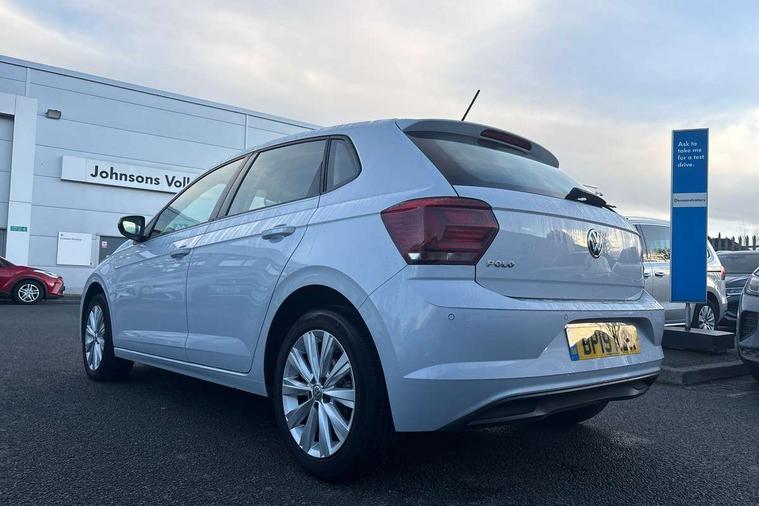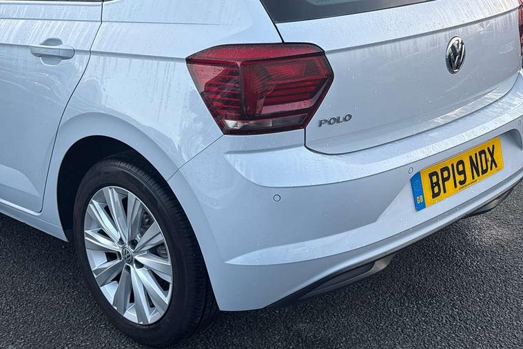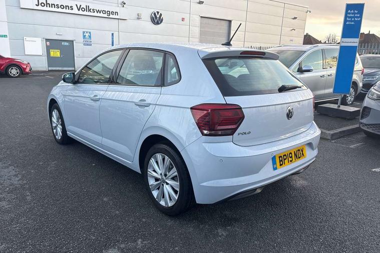 App-Connect, Bluetooth Telephone preparation, Discover navigation + European map data, Driver alert system, Multifunction colour display, PAS - speed related, Service interval indicator, Start/stop system, Trip computer, Warning buzzer and light for front seatbelts unfastened, Battery regeneration during braking, 6 speakers, Composition media system with radio, glovebox mounted CD, colour touch screen, SD card, aux-in, USB, multimedia interface, DAB Digital radio, Automatic dimming interior rear view mirror with rain sensor, Automatic headlamp activation, Black grille with chrome surround, Black radiator grille with chrome insert, Body colour bumpers, Body colour door handles, Body colour rear spoiler, Body coloured side sills, Chrome insert to lower bumper, Chrome trimmed front air intake surrounds, Electric front windows, Electric operated/heated door mirrors, Front fog lights including static cornering, Front wash/wipe with interval delay, Fully galvanised body, Heated rear window with auto timer, High level 3rd brake light, LED daytime running lights, LED rear number plate lights, Manual coming/automatic leaving home lighting function, Rear electric windows, Rear windscreen washer and wiper with interval delay, 12V power socket in centre console, 2 bag hooks in luggage compartment, 2 cupholders, 3 rear head restraints, 3 spoke steering wheel, 60/40 split folding rear seat, Ambient lighting, Chrome-plated electric window button surround, Climate control - 2 zone electronic air conditioning with automatic air recirculation and allergy filter, Driver/front passenger seat height adjustment + underseat drawers, Driver/passenger sunvisors with illuminated vanity mirrors, Dust/pollen filter, Front seat backrest storage nets, Front/rear reading lights, Glovebox, Handbrake grip button in chrome effect, Height/reach adjustable steering column, Instrument lighting, white adjustable panel illumination, Interior light with delay, Isofix Preparation 2 Rear child seats, Jack and tool kit, LED footwell lights, Luggage compartment cover, removable, Luggage compartment lighting, Matt chrome gear lever gaiter surround, Multifunction leather steering wheel with leather gear knob/handbrake grip, Storage compartment in front doors, Storage compartment in rear doors, Storage compartment under front seats, Variable boot floor, Variable Luggage compartment, Light and sight pack - Polo, 3 point height adj front seatbelts + pretensioners, 3x3 point rear seatbelts, ABS, Automatic post collision braking, Driver/front passenger airbag, Driver/Passenger whiplash optimised head restraints, ESP with EDL + ASR, Front and rear passengers curtain airbag system including front side airbags, Front passenger airbag deactivation, Front/rear disc brakes, HBA (Hydraulic Brake Assist), Hill hold control, Two tone horn, Tyre pressure monitoring system, Alarm with remote central locking and interior protection, Electronic engine immobiliser, Air vents in Matt chrome, Chrome plated electric mirror adjustment light switch surround, Matt chrome interior trim, Space saver spare wheel,