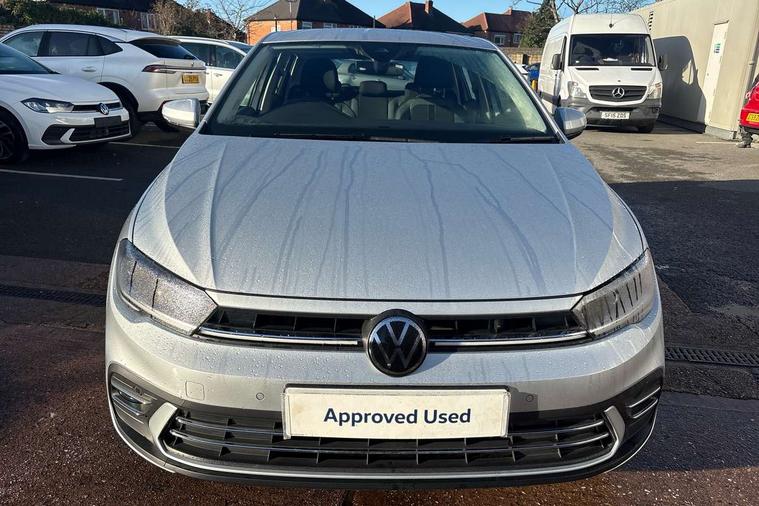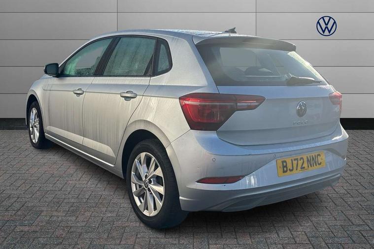 Adaptive cruise control without follow-to-stop and speed limiter, Bluetooth mobile phone interface, Digital Cockpit Pro with 10.25" Display, Driver alert system, Dynamic road sign display, Emergency call service, Power assisted speed sensitive steering, Preparation for We connect and We connect plus, Speedo and rev counter, electronic odometer, trip, service interval display and fuel gauge, Standard rear axle, Travel Assist - Lane keeping system and traffic jam assist, Travel assist including emergency assist, Trip computer, Warning signal and warning light for front and rear seatbelts not fastened, Washer fluid level indicator, Wireless app connect, Front wheel drive, Rear shock absorpion, Start-stop system with battery regeneration (recuperation - energy recovery during braking), DAB Digital radio, Diversity antenna for FM reception, Front and rear 6 speakers, Automatic dimming interior rear view mirror, Automatic headlights, Body colour door handles, Body coloured bumpers and radiator grille with chrome trims, Electric front windows, Heat insulating darkened glass in side and rear windows, Heat insulating glass windscreen, LED separate daytime running lights with coming/leaving home function, Power folding adjustable/heated exterior mirrors and front passenger exterior mirror lowering function, Rain sensor, Rear electric windows, Rear fog light, Rear side wing doors, Rear windscreen washer and wiper with interval delay, Third brake light, 12V power socket in centre console, 2 USB-C ports in the front, 2 USB-C charging sockets on the center console in the rear, 3 rear head restraints, 60/40 split folding rear seat and rear seat bench not split, Air care climatronic air conditoning system with active combination filter and 2-zone temperature control, Ambient lighting, Ceramique headliner, Chrome plated radiator grille inserts, air vent surrounds and light switch surrounds, Door and side trim panel, Driver and front passenger seat height adjustment, Driver/passenger sunvisors with illuminated vanity mirrors, Front + rear carpet mats, Front centre armrest, Front footwell illumination, Front seat backrest storage pockets, Front sports comfort seats, Handbrake lever handle in leather, Isofix child seat preparation easy-fit (for two outer rear seats, and front passenger seat) compatible with I-size, Leather trimmed gear knob, LED interior light with switch off delay and dimmer, 2 reading lights front and rear, Luggage compartment cover, Luggage compartment floor, Luggage compartment lighting, Lumbar adjustment for front seats, Multifunction steering wheel, Single front passenger seat, Standard pedal cluster, IQ LED matrix headlights pack - Polo, Light and vision pack - Polo, 3 point height adj front seatbelts + pretensioners, 3x3 point rear seatbelts, ABS, Driver and front passenger airbag with front passenger airbag deactivation, Drivers and front passengers safety optimised head restraints, ESC (Electronic stability control) + EDL (Electronic Differntial lock) and ASR (Traction control), Extended and predictive pedestrian/ cyclist protection, Front curtain and side airbags with center airbag, Front disc brakes, Hill hold control, Manual child lock in rear doors, Rear drum brakes, Single tone horn, Tyre pressure loss indicator, Alarm with interior protection, Anti-theft alarm system with interior monitoring, backup horn, and towing protection, Anti-theft wheel bolts, Electronic engine immobiliser, Chrome applications on rotary light, mirror adjustment, window regulator switches, outlet with frame in black, Deep iron gloss decorative inserts in dash and front door panels, Low rolling resistance tyres,