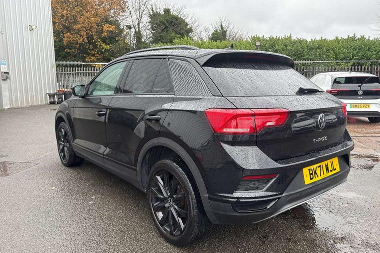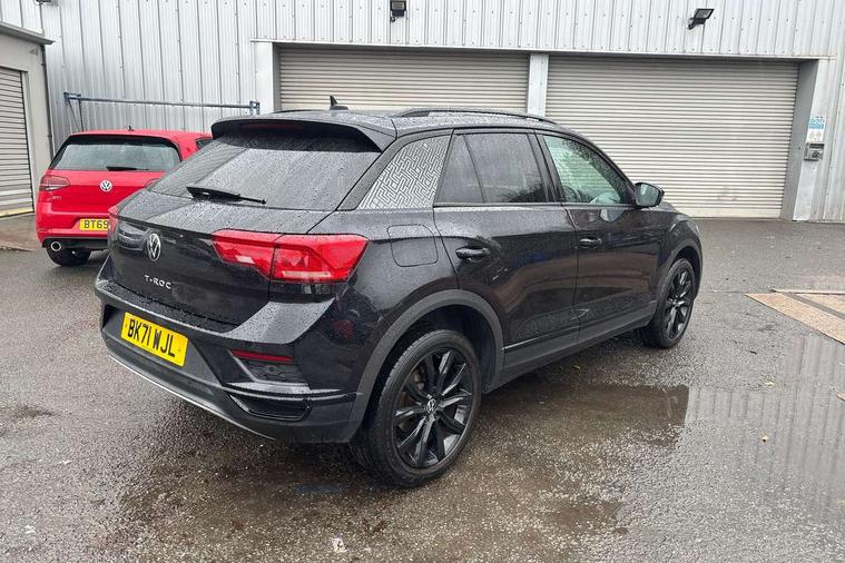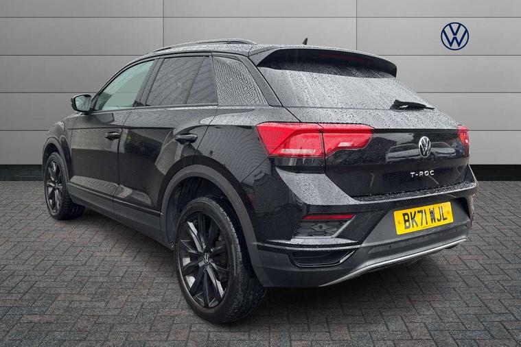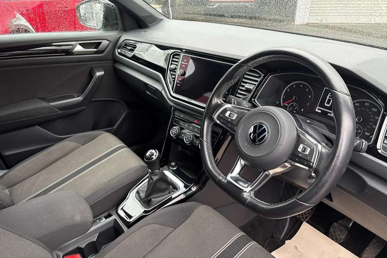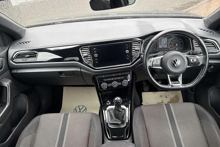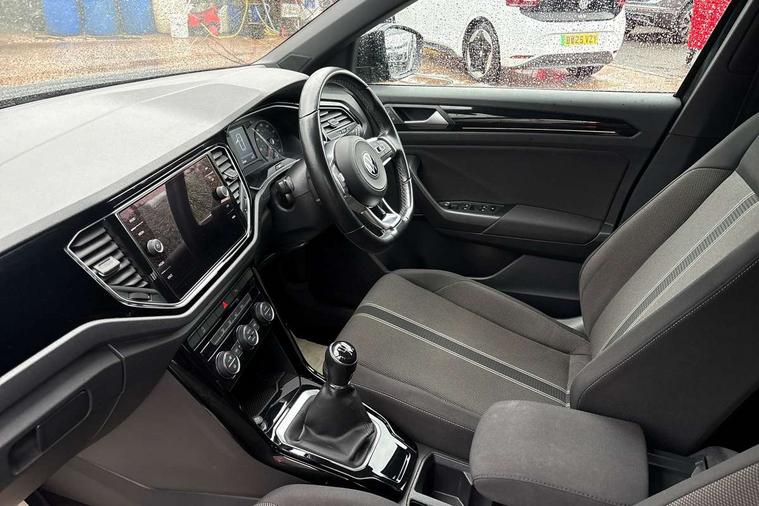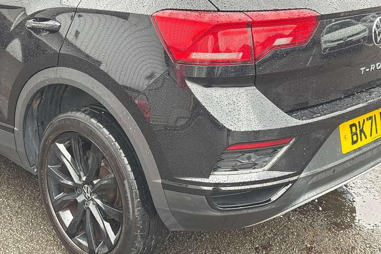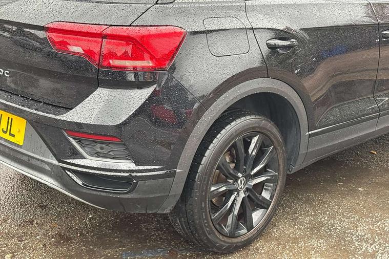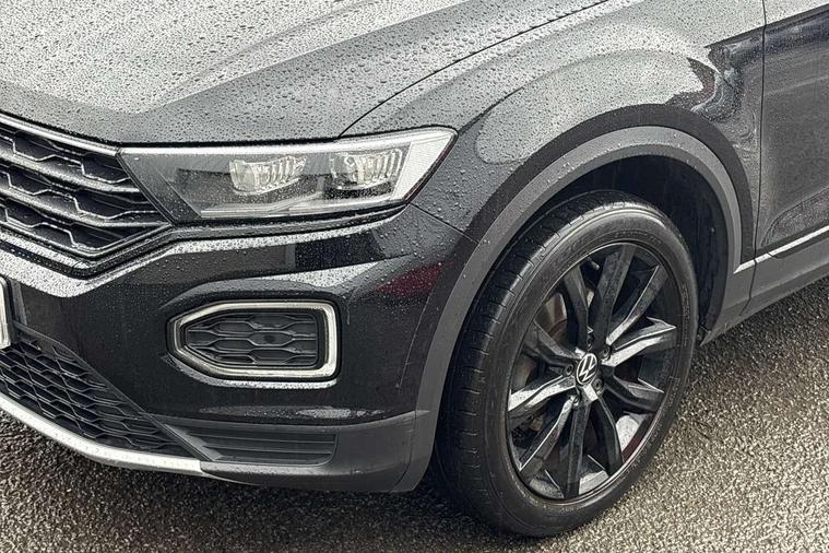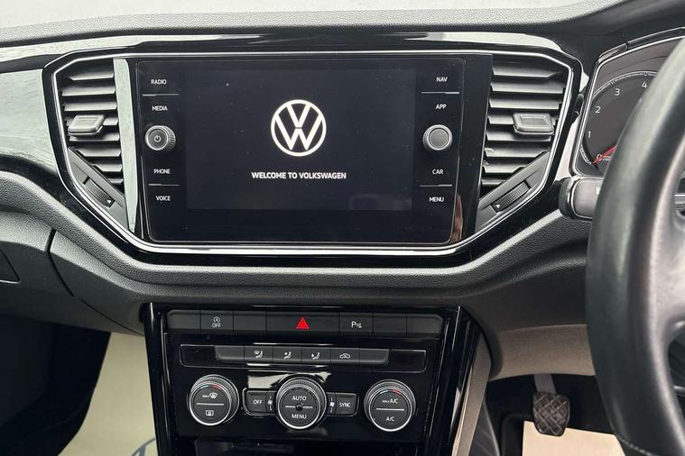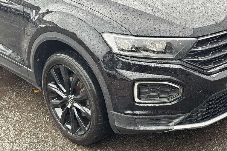 'Lights On' Reminder warning buzzer, Adaptive cruise control, Bluetooth telephone and audio connection for compatible devices, Car information display, Driver tips and journey analysis, Emergency call service, Lane assist with warning text instrument cluster, Modified key software - reduce switch off time for key status change to Long no motion, Multifunction camera, Multifunction computer with visual gear change recommendation for fuel consumption, Service interval indicator, Think blue trainer driver tips and journey analysis, Warning sound and light for doors and tailgate open, Warning sound and light for front seatbelts unfastened, Wireless app connect for apple carPlay, Battery regeneration during braking, Start/stop function with battery regeneration, DAB Digital radio, Diversity antenna for FM reception, Multi device interface (MDI) with USB connection, Music playback - MP3, WMA and AAC files, Premium USB cable in choice of either Apple or Android smartphone compatibility, SD card slot, Simultaneous pairing of 2 compatible mobile devices, Single CD player, glovebox mounted, SMS functionality - read, compose and send SMS messages using touch-screen display, Storage compartment with longitudinal and height adjustable in armrest and two rear air vents, Title and cover art display, USB-C Interface and USB charging socket, Auto dimming interior rear view mirror, Automatic coming/leaving home lighting function and daytime running lights, Automatic hazard lights activation under emergency braking, Black grained lower door protectors, Black grained wheel arches, Black roof rails, Body colour door handles, Body colour sports bumpers with silver metallic underbody fascia, Body coloured bumpers and radiator grille with chrome trim and front fog lamps with chrome bezel, Chrome trim on upper and lower radiator grille, Dusk sensor, Electrically foldable, adjustable and heated door mirrors with puddle lights and reverse activated kerb-view adjustment on passenger's door mirror, Exhaust tailpipes in black, External USB type C socket and charging sockets, Front and rear electric windows, Front windscreen wiper with intermittent wipe and 4 position delay, Fully galvanised body, Heated rear window, High level 3rd brake light, LED headlamps with automatic range adjustment and unique signature LED separate daytime running lights, LED rear number plate lights, LED tail lamp rear comination lamps, Privacy glass, Rain sensor, Rear tinted glass from B-pillar backwards approx 65% tinted, Rear wash/wipe with intermittent wipe setting, Trim strips on grille and vehicle side, Volkswagen roundel, 12V socket in centre console storage area, 3 rear head restraints, 4 load lashing points in luggage compartment, Black roof lining, Climate control - 2 zone electronic air conditioning with automatic air recirculation and allergy filter, Door and side trim panel, Drawer under drivers seat, Front centre armrest, Front cupholders x 2, Front seat back storage pockets, Glovebox, Height adjustable front seats, Height/reach adjust steering wheel, Instrument lighting, white adjustable panel illumination, Interior light in footwell, Isofix easy fit child seat preparation for 2 outer rear seats, LED interior light with switch off delay/dimmer and 2 front/rear LED reading lights, Load through provision with single cup holder when folded down, Luggage compartment cover, removable, Luggage compartment lighting, Split folding rear seat backrests with centre armrest, Storage compartment in left and right luggage area, Storage compartment in rear doors, Storage compartments in driver and front passenger doors, Sunvisors with illuminated vanity mirrors, Three spoke multi-function leather trimmed steering wheel and gearknob, White ambient lighting, Black decal on C-pillar pack - T-Roc, 3 rear three point seatbelts, ABS, Curtain airbags, Driver and front passenger safety-optimised head restraints, Drivers and front passengers airbags with passengers deactivation switch, Drivers seatbelt reminder, Electronic parking brake with auto hold, Electronic stability control (ESC) includes ASR, EDL, EDTC and trailer stabilisation function, Front assist with city emergency braking and pedestrian monitoring, Front seat side impact airbags, Predictive pedestrian protection, Rigid safety cell with front and rear crumple zones, Single tone horn, Three point height adjust front seatbelts + pretensioners, Tyre pressure loss indicator, Ventilated front and rear disc brakes, Volkswagen roadside assistance, Alarm with remote central locking and interior protection, Electronic engine immobiliser, Remote central locking with SAFELOCK, radio remote control with 2 remote control folding keys, Black decorative trims, Piano black decorative inserts in dash, centre console and door panel, 18" Arlo black diamond turned surface alloy wheels with low rolling resistance tyres and anti theft wheel bolts,