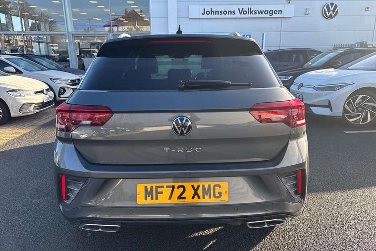 10.25" Digital cockpit pro, Bluetooth mobile phone interface, Driver alert system with fatigue detection, Driver tips and journey analysis, Emergency call service, Lane keeping system Lane Assist, Modified key software - reduce switch off time for key status change to Long no motion, Online services, Park assist including front and rear parking sensors, Service interval indicator, Tailgate/trunk lid release from outside, Think blue trainer driver tips and journey analysis, Warning sound and light for front seatbelts unfastened, Wireless app connect, Battery regeneration during braking, Start/stop function with battery regeneration, Diversity antenna for FM reception, Front and rear 6 speakers, Music playback - MP3, WMA and AAC files, Premium USB cable in choice of either Apple or Android smartphone compatibility, SD card slot, Simultaneous pairing of 2 compatible mobile devices, Title and cover art display, We Connect and We Connect Plus functionality, 3rd brake light, Auto dimming interior rear view mirror, Automatic hazard lights activation under emergency braking, Automatic headlight control with LED separate daytime running lights with coming/leaving home function, Extended roof spoiler, Exterior mirrors aspherical on driver side, convex on front passenger side, External USB type C socket and charging sockets, Front windscreen wiper with intermittent wipe and 4 position delay, Heated rear window, LED Plus headlamps, LED rear combination lamps, LED rear number plate lights, LED tail lamp rear comination lamps, Power windows with comfort operation and circuit breaker, R-Line design body coloured bumpers, Rain sensor, Rear exhaust tailpipe, Rear fog light on one side and reversing lights on both sides, Rear side wing doors, Rear wash/wipe with intermittent wipe setting, Remote electrically foldable door mirrors, puddle lights and reverse activated passenger's door mirror, 12V power socket in centre console, 3 rear head restraints, 3 seat bench in 2nd row, 4 load lashing points in luggage compartment, Air care climatronic air conditoning system with active combination filter and 2-zone temperature control, Black roof lining, Chrome plated radiator grille inserts, air vent surrounds and light switch surrounds, Door and side trim panel with leatherette insert, Drawer under drivers seat, Front + rear carpet mats, Front centre armrest, Front cupholders x 2, Front footwell illumination, Front reading light, Front scuff plates with R logo, Instrument lighting, white adjustable panel illumination, Interior ambient lighting and surround lighting, Interior light delay, Isofix child seat preparation, Leather gearshift handle, Load-through provision with cup holder when folded down ('Unsplit rear seat bench, split folding backrest, with centre armrest), Luggage compartment lighting, Single front passenger seat, Stainless steel pedals, Storage compartment in left and right luggage area, Storage compartment in rear doors, Storage compartments in driver and front passenger doors, Sunvisors with illuminated vanity mirrors, Variable boot floor, height adjustable and removable, Driver assistance pack without proactive passenger protection - T-Roc, 3 point height adj front seatbelts + pretensioners, 3 point seatbelts in outer rear with ECE label, ABS, Child locks on rear doors, Driver and front passenger airbag with front passenger airbag deactivation, Driver and front passenger safety-optimised head restraints, Drivers seatbelt reminder, Electronic parking brake, Electronic Stability Control (ESC) inc EDL (Electronic Differential Lock) and ASR (Traction Control), Front and rear passengers curtain airbag system including front side airbags, Front assist with city emergency braking and pedestrian monitoring, Front seat side impact airbags, Hill start assist, Predictive pedestrian protection, Rear disc brakes, Single tone horn, Tyre pressure loss indicator, Volkswagen roadside assistance, Alarm with interior protection, Anti-theft alarm system with interior monitoring, backup horn, and towing protection, Remote central locking with SAFELOCK, radio remote control with 2 remote control folding keys, Trims for alloy wheels,