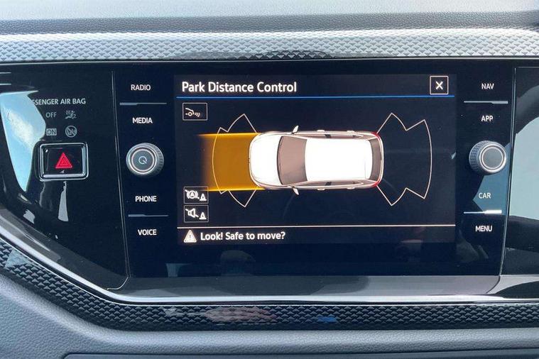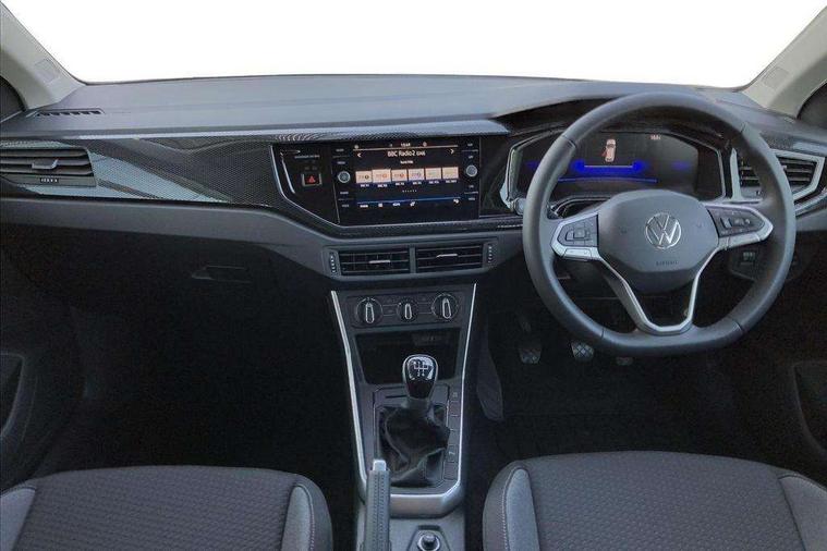Adaptive cruise control without follow-to-stop and speed limiter, Advanced driver attention and drowsiness monitor, Bluetooth mobile phone interface, Dynamic road sign display, Emergency call service, Multifunction front facing camera for distance control, Park distance control, Power assisted speed sensitive steering, Preparation for navigation system with media and internet package, Preparation for We connect and We connect plus, Rear view camera, Speedo and rev counter, electronic odometer, trip, service interval display and exterior temperature gauge, Standard rear axle, Travel Assist - Lane keeping system and traffic jam assist, Travel assist including emergency assist, Trip computer, Warning signal and warning light for front and rear seatbelts not fastened, Washer fluid level indicator, Wireless app connect, Front wheel drive, Rear shock absorpion, Start-stop system with battery regeneration (recuperation - energy recovery during braking), DAB Digital radio, Diversity antenna for FM reception, Front and rear 6 speakers, Automatic dimming interior rear view mirror, Automatic headlight control with LED separate daytime running lights with coming/leaving home function, Body colour bumpers with chrome inserts, Body colour door handles, Body colour door mirrors, Electric front windows, Engine badge deletion, Headlight range adjustment, Heat insulating and laminated safety glass windshield, LED Headlights, LED rear combination lamps, Power folding adjustable/heated exterior mirrors and front passenger exterior mirror lowering function, Rain sensor, Rear electric windows, Rear fog light, Rear side wing doors, Rear tinted glass from B-pillar backwards approx 65% tinted, Rear windscreen washer and wiper with interval delay, Third brake light, 12V power socket in centre console, 2 front and 2 rear reading lights with switch off delay and dimmer, 2 USB-C ports in the front, 2 USB-C charging sockets on the center console in the rear, 3 rear head restraints, 60/40 split folding rear seat and rear seat bench not split, Ceramique roof lining, Chrome plated radiator grille inserts, air vent surrounds and light switch surrounds, Door and side trim panel, Driver and front passenger seat height adjustment, Driver/passenger sunvisors with illuminated vanity mirrors, Front centre armrest, Front seat backrest storage pockets, Front standard seats, Handbrake lever handle in leather, Hartley/Thomas cloth upholstery, Headliner in recycled material, Isofix child seat preparation easy-fit (for two outer rear seats, and front passenger seat) compatible with I-size, Leather trimmed gear knob, Luggage compartment cover, Luggage compartment lighting, Removable luggage compartment floor, Single front passenger seat, Standard climatic zones, Standard pedal cluster, Three spoke leather wrapped multifunction steering wheel, Light and vision pack - Polo, 3 point height adj front seatbelts + pretensioners, 3 point seat belt for centre rear seat, 3 point seatbelts, outer rear with ECE lable, ABS, Driver and front passenger airbag with front passenger airbag deactivation, Drivers and front passengers safety optimised head restraints, ESC (Electronic stability control) + EDL (Electronic Differntial lock) and ASR (Traction control), Extended and predictive pedestrian/ cyclist protection, Front assist with autonomous emergency braking (for Adaptive Cruise Control ACC up to 130 mph), Front curtain and side airbags with center airbag, Front disc brakes, Hill hold control, Manual child lock in rear doors, Rear drum brakes, Single tone horn, Tyre pressure loss indicator, Alarm with interior protection, Anti-theft alarm system with interior monitoring, backup horn, and towing protection, Anti-theft wheel bolts, Electronic engine immobiliser, Lava stone black gloss/matt decorative inserts in dash and front door panels, 16" Torsby alloy wheels, Low rolling resistance tyres,