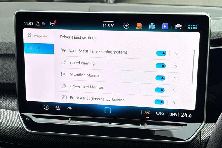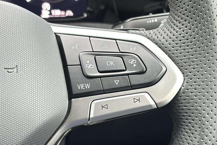 Activated carbon canister, Adaptive cruise control (ACC), Advanced driver attention and drowsiness monitor, Dynamic road sign display, Dynamic steering, E-Sim card for online connectivity, eCall emergency call system, Multi-color Digital cockpit pro, selection of different info profile possible, Multifunction front facing camera for distance control, Navigation system, Oncoming vehicle braking when turning including swerve support, Preparation for light assist system, Speed limiter, Speedo, rev counter, electronic odometer, trip, service interval display, exterior temperature and fuel gauge, Traffic jam assist, Voice enhancer and voice control, Warning signal and warning light for front and rear seatbelts not fastened, We connect plus preparation, We connect preparation, Wireless app connect, Diesel particulate filter, Hybrid propulsion system, Start-stop system with battery regeneration (recuperation - energy recovery during braking), XDS electronic differential lock for improved traction and handling, 2 USB C ports in front, 2 USB charging sockets on the centre console in the rear charging capacity upto 45W, Comfort telephony + wireless charging, without wireless aerial connection, Digital radio reception (DAB), Diversity antenna for FM reception, Gaming platform via car app, Infotainment system with 12.9" display, Mobile phone interface with inductive charging feature, 3rd brake light, Auto headlights, Automatic headlamp activation with Coming home and Leaving home feature, Body colored bumpers in R-Line style, Body colour door handles, Exterior ambient lighting with illuminated door handles, Exterior mirrors convex on the left and aspherical on the right, Front and rear electric windows, Heat insulating windshield made of laminated glass, LED daytime running lights, Rear exhaust tailpipe, Rear fog light on one side and reversing lights on both sides, Rear side wing doors, Rear windscreen washer and wiper with interval delay, Remote electrically foldable door mirrors, puddle lights and reverse activated passenger's door mirror, Welcome light with surround lighting, 12V socket in front centre console, 12V socket in luggage compartment, 3 rear head restraints, 3 seat bench in 2nd row, Ambient lighting with 30 colour including LED light unit in front footwell with selectable light colour, Brushed stainless steel pedals, Carpet mats, front and rear, Chrome plated radiator grille inserts, air vent surrounds and light switch surrounds, Front centre armrest, Integrated front head restraints, ISOFIX anchors for child seats on outer rear bench seats and on front passanger seat compatible for i-Size, Luggage compartment lighting, Plastic gear knob, Premium sports seats in front, Rear cupholder and loadthough, Single front passenger seat, Soul black instrument panel, Split folding backrest with centre armrest and unsplit rear seat bench, Storm grey roof lining, Sun visors with illuminated vanity mirrors, 3 point height adj front seatbelts + pretensioners, 3 rear three point seatbelts, ABS, Autonomous emergency braking front assist with pedestrian and cyclist monitoring, Child locks on rear doors, Driver and front passenger airbag with front passenger airbag deactivation, Electronic parking brake with auto hold, ESC (Electronic Stability Control), Extended pedestrian protection measures, Hill start assist, Rear disc brakes, Two tone horn, Tyre pressure loss indicator, Volkswagen roadside assistance, Anti theft wheel bolts, Preparation for alcohol interlock, Decorative inserts carbon grey for dashboard and front door trim panels,
