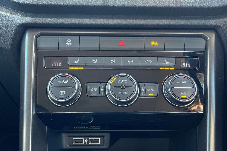 App-Connect, 2 USB connection charging sockets, Adaptive cruise control, Automatic start/stop system, Bluetooth telephone and audio connection for compatible devices, Car information display, Dusk sensor, Front assist, radar sensor controlled distance monitor, city emergency braking + predictive pedestrian protection, Lane assist, Multifunction computer with visual gear change recommendation for fuel consumption, Power assisted speed sensitive steering, Service interval indicator, Think blue trainer driver tips and journey analysis, Warning sound and light for doors and tailgate open, Warning sound and light for front seatbelts unfastened, We Connect Go Dongle, Battery regeneration during braking, Bluetooth - Simultaneous pairing of 2 compatible mobile devices, DAB Digital radio, Multi device interface (MDI) with USB connection, Music playback - MP3, WMA and AAC files, Premium USB cable in choice of either Apple or Android smartphone compatibility, SD card slot, SMS functionality - read, compose and send SMS messages using touch-screen display, Title and cover art display, Auto dimming interior rear view mirror, Automatic hazard lights activation under emergency braking, Black grained lower door protectors, Black grained wheel arches, Body colour bumpers with silver metallic underbody fascia, Body colour door handles, Chrome trim on upper and lower radiator grille, Door mirror integrated indicators, Electrically foldable, adjustable and heated door mirrors with puddle lights and reverse activated kerb-view adjustment on passenger's door mirror, Front and rear electric windows, Front windscreen wiper with intermittent wipe and 4 position delay, Fully galvanised body, Heated rear window, High level 3rd brake light, LED rear number plate lights, Manual coming/automatic leaving home lighting function, Rain sensor, Rear windscreen washer and wiper with interval delay, 12V socket in centre console storage area, 2 front reading lights, 3 rear head restraints, 4 load lashing points in luggage compartment, Climate control - 2 zone electronic air conditioning with automatic air recirculation and allergy filter, Drawer under drivers seat, Front centre armrest with storage compartment, longitudinal and height adjustable and two rear air vents, Front cupholders x 2, Front seat back storage pockets, Glovebox, Height adjustable front seats, Height/reach adjust steering wheel, Illuminated vanity mirrors, Instrument lighting, white adjustable panel illumination, Interior light delay, Isofix easy fit child seat preparation for 2 outer rear seats, Load through provision with single cup holder when folded down, Luggage compartment cover, removable, Luggage compartment lighting, Split folding rear seat backrests with centre armrest, Storage compartment in left and right luggage area, Storage compartment in rear doors, Storage compartments in driver and front passenger doors, 3 rear three point seatbelts, ABS, Driver and front passenger safety-optimised head restraints, Electronic parking brake with auto hold, ESC with EDL, ASR, EDTC and trailer stabilisation function, Front and rear curtain airbags, driver and front passenger airbags with passenger deactivation switch and front side impact airbags, Rigid safety cell with front and rear crumple zones, Three point height adjust front seatbelts + pretensioners, Tyre pressure loss indicator, Ventilated front and rear disc brakes, Volkswagen roadside assistance, Alarm with remote central locking and interior protection, Electronic engine immobiliser, Remote central locking with 2 remote folding keys, Dark oak brown decorative inserts in dash and door panel, Steel space saver spare wheel,