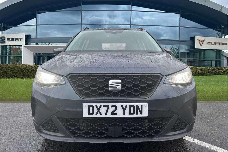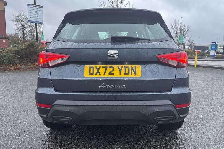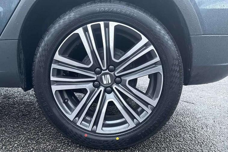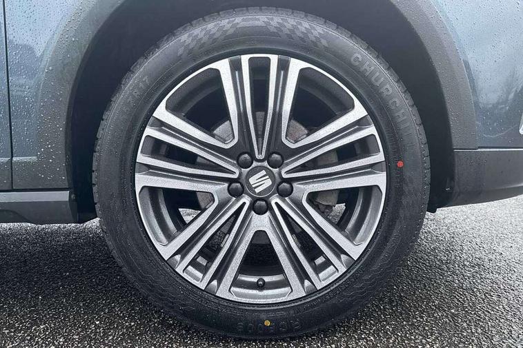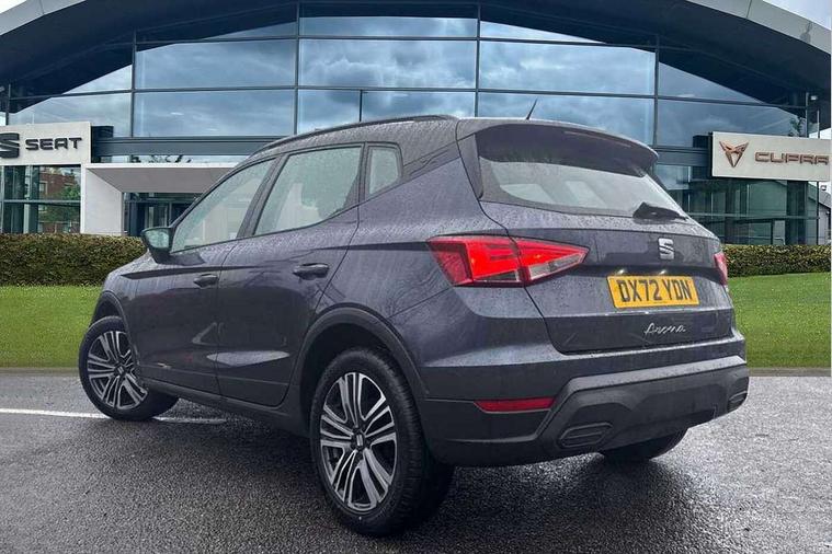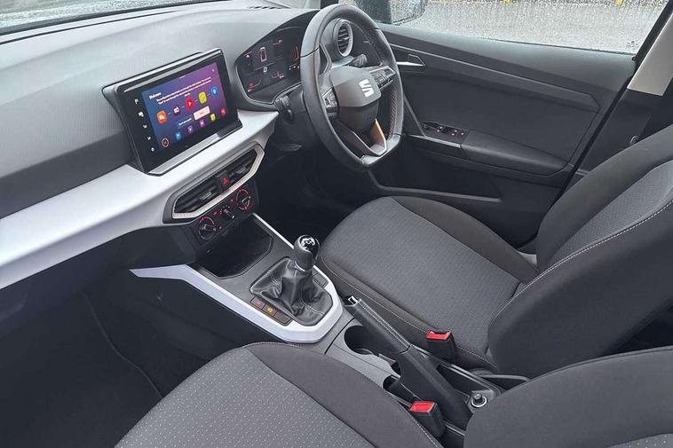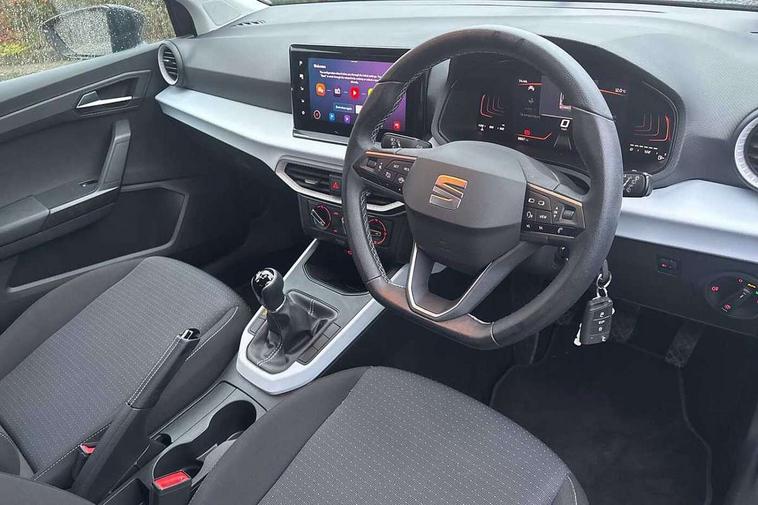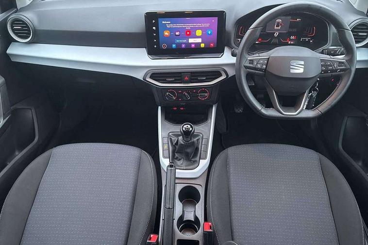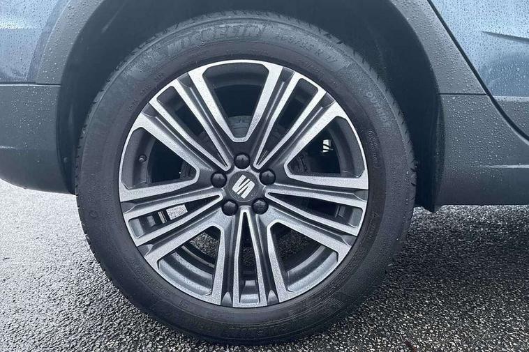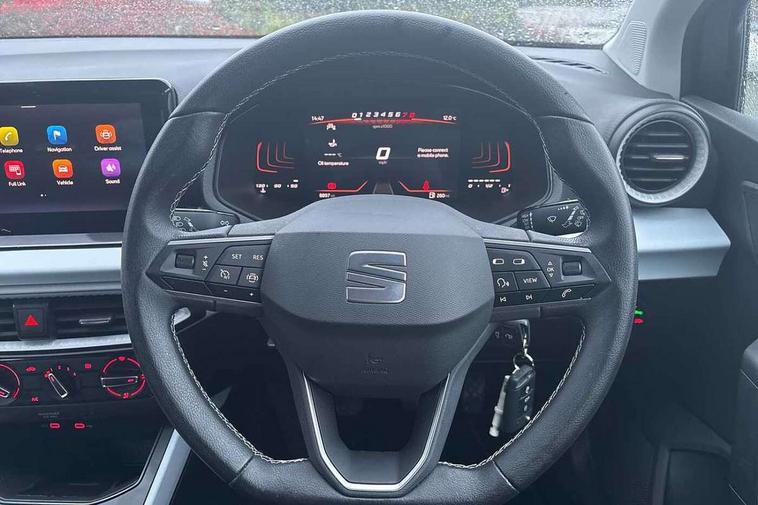 'Lights On' Reminder warning buzzer, 8" Digital cockpit, Cruise control and speed limiter, Digital clock, E-call, Electric speed sensitive power steering, Full Link Smartphone Integration with Mirror Link, Apple Car Play, Google Android Auto with USB Type C cable for Apple and Android compatibility, Lane keeping system, Low fuel warning light, Outside temperature display, Rear parking sensor, RPM counter, Seat connect with safety, service, remote and online, Trip computer, Wireless phone charger, 9.2" colour touchscreen with navigation system, voice control and USB port (type c), Bluetooth interface for hands free and audio streaming, DAB digital radio and AM/FM radio, Steering wheel mounted audio controls, Anti theft roof antenna, Automatic activation of hazard warning lights, Black roof rails and window surrounds, Body coloured bumpers, Body coloured door handle inserts, Body coloured door mirrors, Dimming rear view mirror, ECO LED automatic headlights and LED daytime running lights, Electric adjustable door mirrors, Electric front/rear windows, Hidden exhaust pipe, Licence plate lights, Protective side mouldings, Rain sensing wipers, Rear fog lights, Rear side wing doors, Rear spoiler, Rear window wash/wipe, Third brake light, Visible VIN plate, Windshield wiper with intermittent control and potentiometer, 2 cupholders, 3 seat bench in 2nd row, 60/40 split folding rear seat, Air conditioning, Cloth upholstery, Double boot floor, Driver sunvisor with covered mirror + card holder, Dust/pollen filter, Front courtesy light with front reading lights, Gear shift indicator, Grey interior roof, Height adjustable front seats, Height/reach adjustable steering column, Illuminated boot, Instrument lighting with brightness control, ISOFIX points in outer rear seats with top tether anchorage points, Leather steering wheel/gear knob/handbrake, Passenger sunvisor with vanity mirror, Single front passenger seat, Two front and three rear height adjustable headrests, Interior chrome pack - Arona, 3 point seatbelts on all rear seats, ABS, Active front headrests, Child locks on rear doors, Driver and front passenger airbags with front passenger airbag de activation, front side and curtain airbags, Electronic stability control, Emergency Brake Assist (EBA) and front assist, Front and rear seatbelt reminder, Hill hold control, Multi-Collision braking, Tiredness recognition system, Traction control, Tyre pressure monitoring system, Electronic engine immobiliser, Locking wheel bolts, Remote central locking + deadlocks, Titan black dashboard, 17" Dynamic machined alloy wheels,