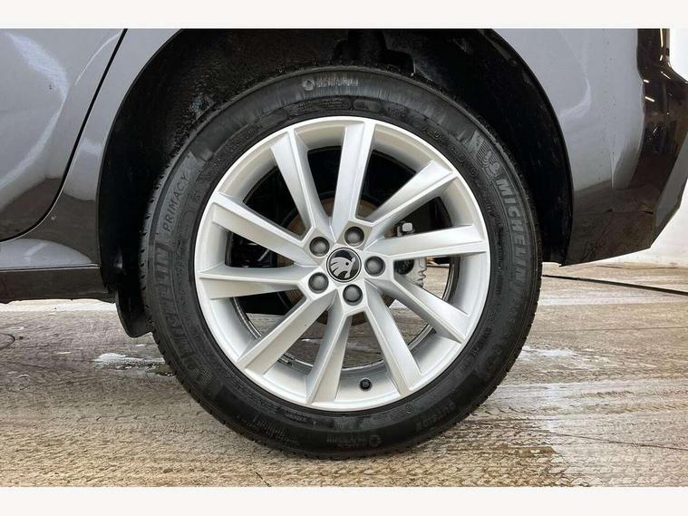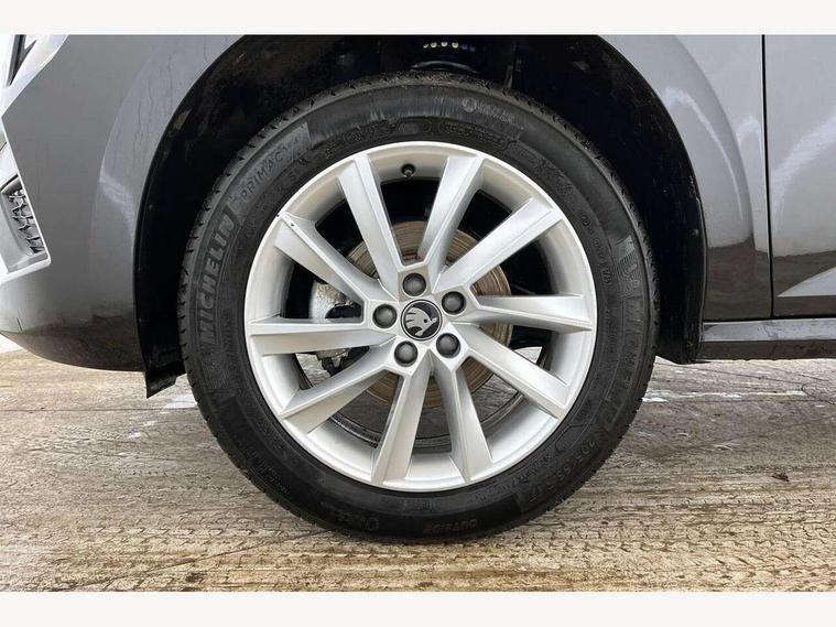 Advanced driver attention and drowsiness monitor, Bluetooth system, E-call, Front assist system, PAS, Rear parking sensors, Rear view camera, Service indicator, Speed limiter, Traffic sign recognition, Virtual cockpit with 10.25" display, Wireless smartlink, 4 USB C ports, 8 Speakers, 9.2" Skoda navigation display, DAB Digital radio, Auto dimming rear view mirror, Automatic headlight control with coming home and leaving home feature, Black roof rails, Body colour bumpers, Body colour door mirrors and handles, Chrome grille surround, Front and rear electric windows, Full LED headlights, Heated rear window, LED brake lights, LED daytime running lights, LED front turning lights, LED high beam, LED low beam, LED third brake light, Rear LED fog light, Rear side wing doors, Rear wiper, Ticket holder inside windscreen, 12V socket in luggage compartment, 3 seat bench in 2nd row, Black hotstamping, Cargo elements, Chrome inner door handles, Driver and passenger sun visors with vanity mirror, Dual zone climate control, Front and rear roof lights, Front centre armrest, Front head restraints, Glove compartment with illumination, Height adjustable driver seat, Height adjustable front passenger seat, Ice scraper, Inner circulation control with pollen filter, ISOFIX on front passenger seat, Isofix preparation for back seats, Krepp recycled decor inserts, Leather gearknob and handbrake lever, Loft cloth upholstery, Manual lumbar support for front seats, Net package and top tether hooks in boot space, Net under rear shelf, Overhead glasses storage compartment, Pocket on the back of both front seats include mobile phone pockets, Rake/reach adjustable steering wheel, Reading lights, Satin black door inserts, Single front passenger seat, Textile floor mats, Third rear headrest, Top tether for front passenger seat, Umbrella in driver's door, 3x3 point rear seatbelts, Airbags - driver and front passenger, Disc brakes, ESP, Extended and predictive pedestrian/cyclist protection, Front passenger airbag deactivation switch, Front side airbags with curtain airbags, Hill hold control, Manual leather parking brake, Manual rear child locks, One tone horn, Seatbelt reminder for driver an co-driver, Traction control, Tyre pressure monitor, Anti-theft alarm system with interior monitoring, backup horn, towing protection and remote central locking with SAFE system, Anti-theft wheel bolts, Electronic engine immobilizer,
