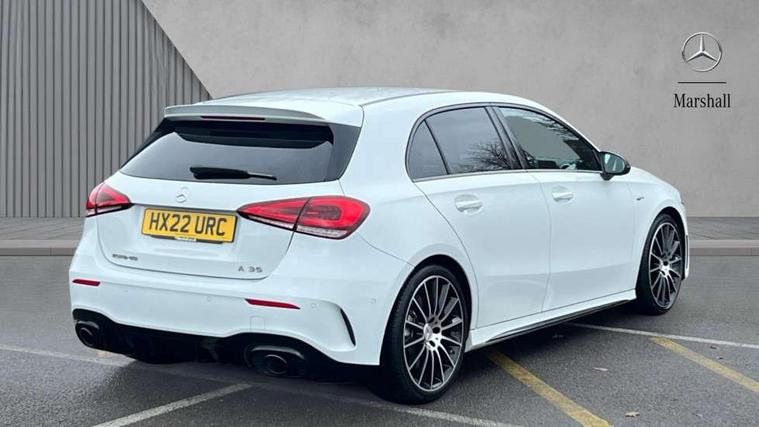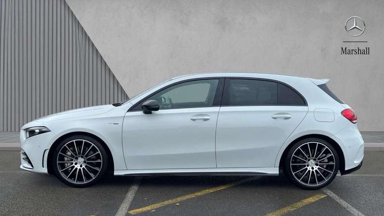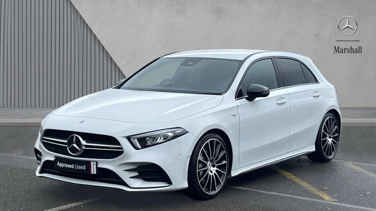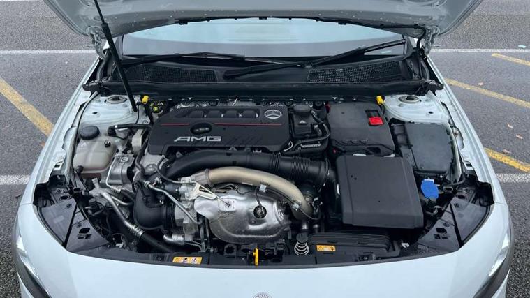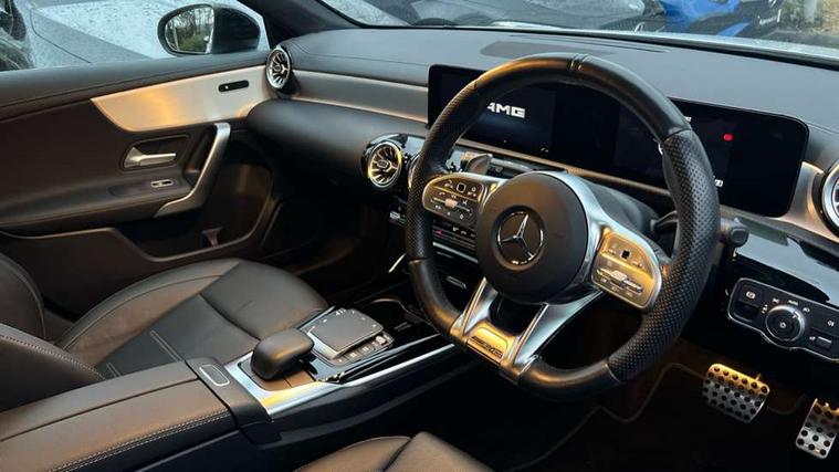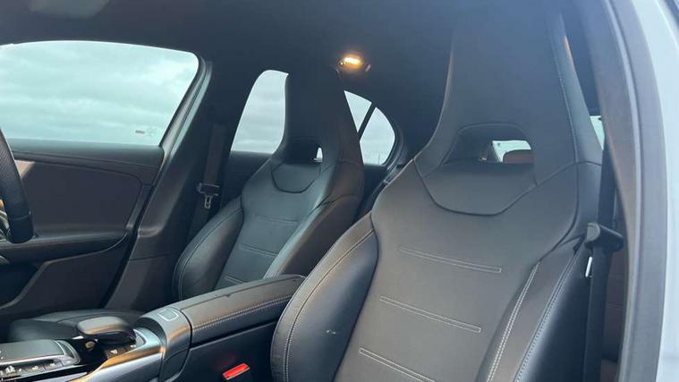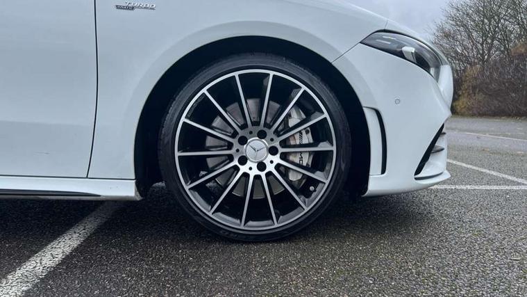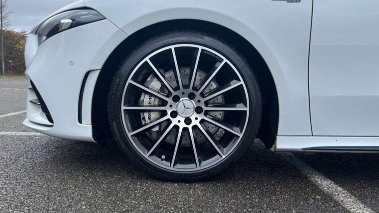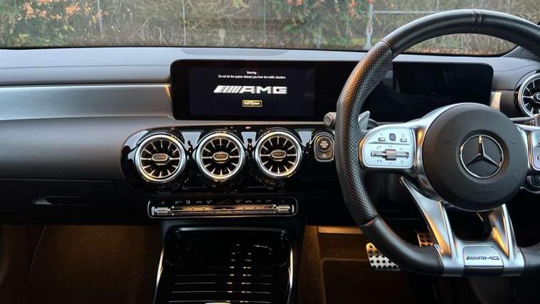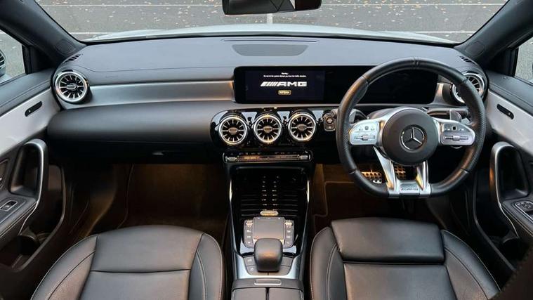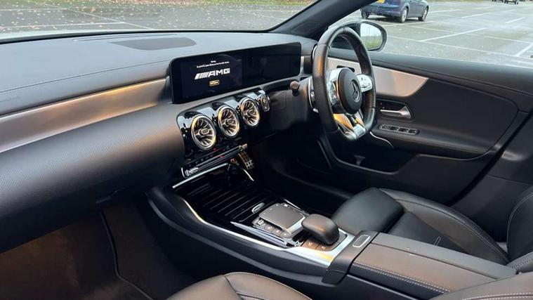 10.25" media display, 180 degree rear view camera with parking guidelines, 7" colour screen in instrument panel, Active parking assist with visual and audible warning of detected obstacles, Attention assist, Brake pad wear indicator warning light, Car wash mode, Cruise control + speed limiter, Direct steering, Dual bluetooth interfaces, DYNAMIC SELECT with driving programs (Slippery, Comfort, Sport, Sport+ and Individual), ECO start/stop function, Fluid level warning indicator for fuel, oil, coolant and washer fluid, Hard-disk navigation, Hey Mercedes Voice activation, Lamp failure indicator, Lane keeping system, Mercedes me connect including emergency call system, accident recovery, breakdown and maintenance management, Mercedes me remote services, Outside temperature gauge, Owners manual in English, Pre-installation for private car sharing, Preinstallation for Mercedes Benz link, Service indicator (ASSYST), Smartphone integration with Apple CarPlay and Android auto, Speed sensitive power steering, Trip computer, Ultrasonic sensors positioned in the front and rear bumpers, AMG performance suspension, Rear axle multi-link, 2 USB ports (type C) in rear stowage compartment and one in front of center console, 6 speakers, DAB Digital radio, MBUX multimedia system with DAB digital radio and touchpad including satellite navigation, Mercedes-Benz sound system - 100W, 4 Electric Front and Rear windows, Adaptive brake lights, AMG bodystyling - Front apron with splitter in chrome, rear apron with chrome trim and chrome visible trim elements in tailpipe, AMG Front apron with flics as air deflector elements on the outer air intakes, AMG radiator grille with twin blade lamella and AMG Lettering, AMG Rear apron with specific diffuser look with four vertical fins and two round chrome plated tailpipe trim elements with a diameter of 90 mm, AMG spoiler lip on roof, AMG Sports exhaust system with two round tailpipes measuring 90 mm in diameter attached in rear apron, AMG lettering plus ribbing on the inside of the, Automatic headlights, Black weather strip, Body colour bumpers, Body colour door handles, Body colour side skirt, Body coloured door mirrors, Electric adjustable and heated door mirrors with integrated LED side indicators, Front wings wheel arches with TURBO 4MATIC lettering, Headlamp assist automatic headlamp activation, Heated glass rear windscreen + timer control, High gloss black beltline, LED High level third brake light, LED high performance headlamps with integrated LED daytime running lights, LED tail lamp, Privacy glass, Radio aerial, Rain sensing windscreen wipers with two sensitivity settings, Rear fog lights, Rear side wing doors, Rear wiper, Trim elements on louvres in outer air inlets in high gloss black, Wider wheel arches for AMG wheels, Window line trim strip in high gloss black, 3 seat bench in 2nd row, 40:20:40 split folding rear seats, AMG Performance steering wheel in nappa leather, Auto Mercedes-Benz child seat recognition sensor, Black air vents with surround in silver chrome, Black roof lining, Brushed stainless steel sports pedals with rubber studs, Controller on centre console with chrome surround, Floor mats with stitched edging and AMG lettering, Front centre armrest with storage compartment, Front door sills with AMG lettering, Front seat backs luggage nets, Front seat cushion length adjustment, Heated front seats, Height/reach adjustable steering column, Interior lighting - 64 colour Ambient lighting, Interior mirror with reading lamps in black and frameless, Manual height adjustable front seats, Rear head restraints, Seat occupancy sensor for front passenger seat, Silver coloured aluminium gear shift paddles on steering wheel, Single front passenger seat, Sports seats with integrated headrests, Stowage compartment in centre console with retractable cover, Sunvisors with illuminated vanity mirrors, Touchpad on center console, Twin front cupholders, Two zone thermotronic luxury automatic climate control, AMG night pack - A Class, Light and sight pack - A Class, Mirror package - A Class, Seat comfort pack - A Class, 3 rear 3 point seatbelts, ABS with Brake Assist, Active bonnet, Active brake assist includes forward collision warning system with autonomous braking, Adaptive brake assist with hold function and hill start assist, Black seatbelts, Childproof locks manually operated for rear doors and electrically operated for rear power windows, Crash responsive emergency lighting, Driver and passenger head and side airbags, Drivers knee airbag, Dual stage driver/passenger airbags, Electronic parking brake, ESP curve dynamic assist, ESP with ASR, Front and rear seatbelt reminder, Front brake calipers with AMG lettering, ISOFIX and top tether child seat fixing points in two outer rear seats, Perforated front brake discs, Tyre pressure monitoring system, Warning triangle and first aid kit, Window airbags, Alarm system/interior protection/immobiliser, Keyless Go, Remote central locking and crash sensor with emergency opening function, Urban guard vehicle protection system with immobiliser and interior protection, Light aluminium with longitudinal grain interior trim, 19" AMG multi-spoke high gloss black painted light alloy wheels with high sheen finish, Summer tyres, Tirefit sealant kit,