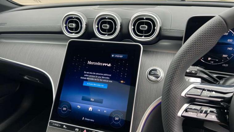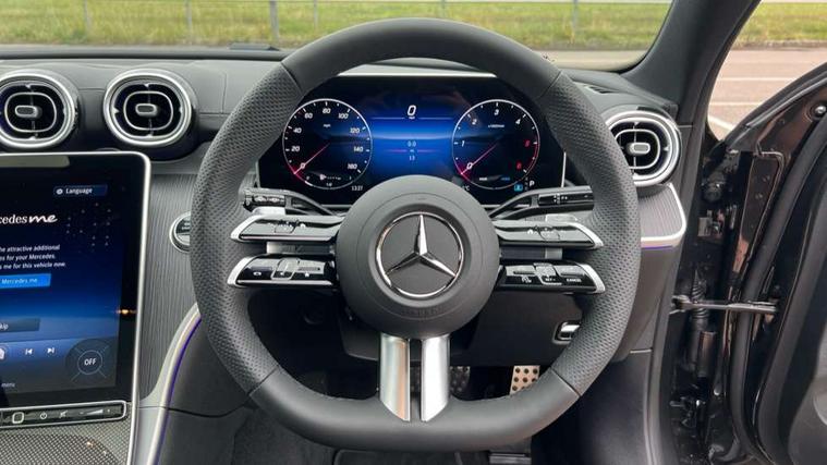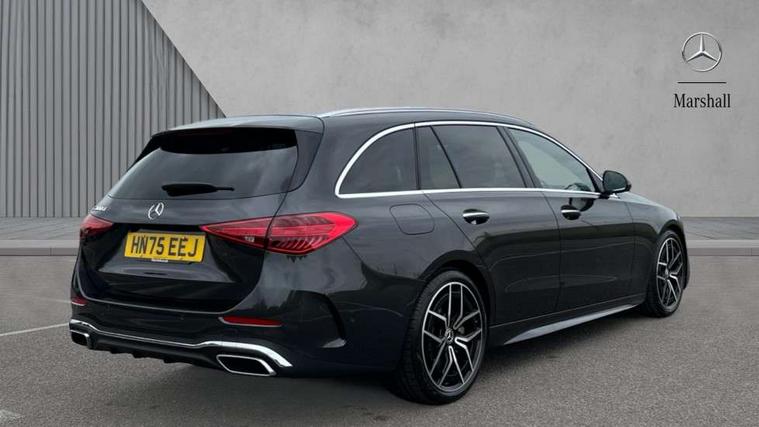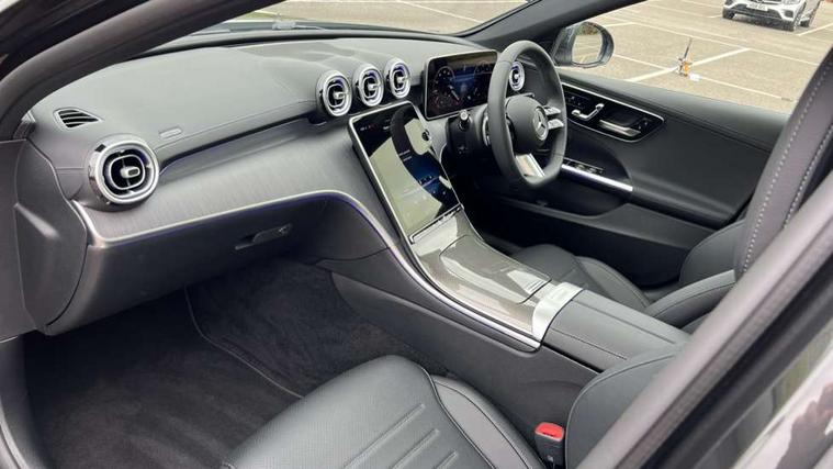 11.9" high resolution multimedia colour display, 12.3" digital instrument cluster display, Active blind spot assist, Active brake assist plus, Active lane keeping assist, Attention assist, Cruise control with speedtronic variable speed limiter, DYNAMIC SELECT with a choice of driving modes (Comfort, ECO, Sport, Sport+, Individual), E-call, Easy pack automatic powered tailgate, Extended MBUX functions, Finger print sensor, Fluorescent jacket for driver, MBUX augmented reality for navigation, MBUX navigation premium, MBUX voice control activated by keywords "Hey Mercedes", Mercedes connect me, Mercedes me remote services, Outside temperature gauge, Pre-installation for digital key transfer, Remote boot release, Service indicator (ASSYST), Smartphone integration, Speed limit assist, Sports direct steer speed sensitive steering, Status display for rear seat belts in instrument cluster, Traffic sign assist, Wireless charging system for mobile devices, 66l fuel tank with increased capacity, 9G TRONIC 9 speed automatic transmission, Agility control sports suspension and lowered by 15 mm, Diesel particulate filter, DAB Digital radio, MBUX multimedia system, Adaptive brake lights, Adaptive high beam assist plus, AMG body styling front apron, rear apron and side skirts, AMG front bumper with sporty air intakes and chrome elements, AMG rear bumper with high gloss chrome elements, AMG side skirts in vehicle colour, B-pillar trim in glossy black, Body coloured bumpers, Body coloured door mirrors, Chrome beltline trim, Chrome roof rails, Daytime running lights, Digital light LED headlamps, Electric windows with one touch opening/closing and obstruction sensors, Electrically adjustable and heated door mirrors, Green tinted glass, Heat insulating dark tinted glass, Illuminated front door sill panels, LED Indicators, LED tail lights, LED third brake light, Noise acoustic glass, Powerdomes on bonnet, Privacy glass, Radiator diamond grille with integrated Mercedes Benz star and louvre silver with chrome pins, Radio aerial integrated into rear window, Rain sensor with automatic windscreen wiper activation, Rear side wing doors, Rear wiper, Two visible exhaust pipes integrated into rear bumper, 3 seat bench in 2nd row, 3 spoke flattened bottom AMG multifunction steering wheel in black nappa leather with chrome inserts and perforated leather in grip area, 40:20:40 split folding rear bench seat, Ambient lighting premium, AMG sports seats, Artico man-made leather upholstery, Audio and onboard settings control on multifunction steering wheel, Auto Mercedes-Benz child seat recognition sensor, Black air vents with silver chrome elements, Black floor mats with AMG lettering, Black roof liner, Door trim elements high gloss black with silver chrome surroundings and switches, Double cupholder in centre console, Electrically height/reach adjustable steering column, Folding rear seat backrest, Front and rear head restraints, Front centre armrest with storage compartment, Gearshift paddles on steering wheel, Heated front seats, Illuminated door sills with Mercedes Benz lettering, Illuminated glove compartment stowage, Load compartment cover, Overhead control unit in high gloss black, Rear top tether child seat ISOFIX attachment, Single front passenger seat, Sports pedals with stainless steel surfaces and rubber studs, Sunvisors with illuminated vanity mirrors, THERMATIC 2 zone automatic climate control, Interior lighting package - C Class, Memory package - C Class, Mirror pack - C Class, Parking package with 360 degree camera - C Class, Seat comfort pack - C Class, Stowage space pack - C Class, USB package plus - C Class, 3 rear 3 point seatbelts, Active bonnet pedestrian safety measure which detects an impact and raises bonnet, Adaptive brake system with HOLD function and brake drying in the wet, Anti-lock braking system (ABS), Black seat belts, Brake calipers with Mercedes-Benz lettering + perforated front brake discs, Child proof door locks, Drivers knee airbag, Drivers pelvis airbag, Dual stage driver/passenger airbags, Electric parking brake, Electronic Stability Programme (ESP), Front centre airbag between driver and front passenger seats, Front side airbags, Larger brake discs on front axle, Rear seatbelt warning indicator, Sports braking system, Tyre pressure monitoring system, Warning triangle and first aid kit, Window airbags for driver, front passenger and rear passenger, Central locking with interior switch, automatic locking and crash sensor with emergency opening function, Chrome surround in electric key, Dashcam, Keyless Go, URBAN GUARD vehicle protection (Thatcham Category 1) consisting of break-in, anti-theft alarm system (ATA), interior monitoring and tow-away protection, Artico man-made leather dashboard with contrast stitching, Centre console trim in metal weave, 19" AMG multi spoke light alloy wheels painted himalayas grey with high sheen finish, Noise reduced tyre with foam absorber, Summer tyres, TIREFIT with tyre inflation compressor,