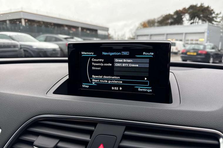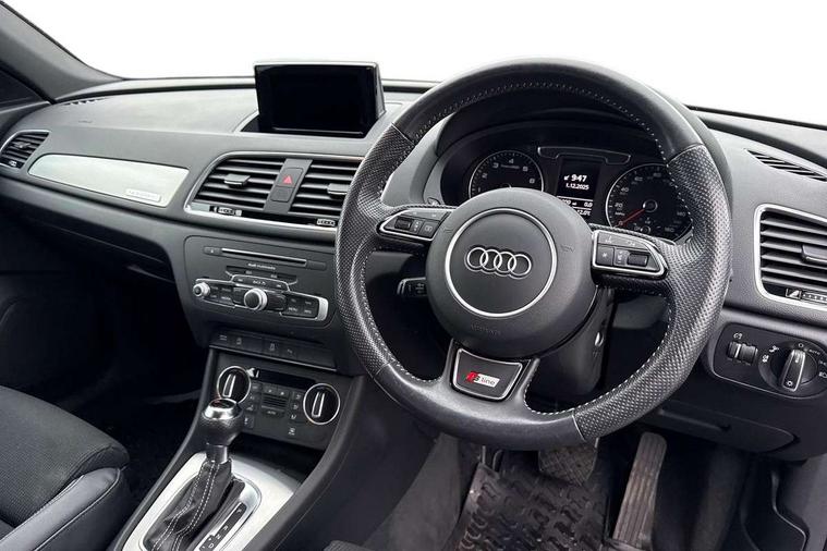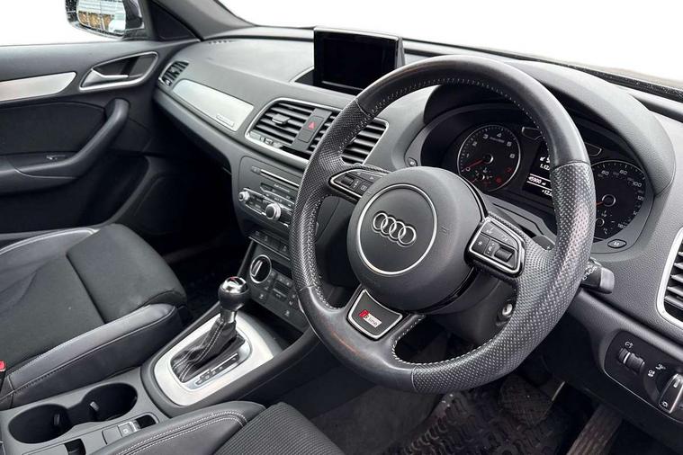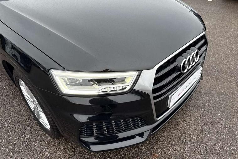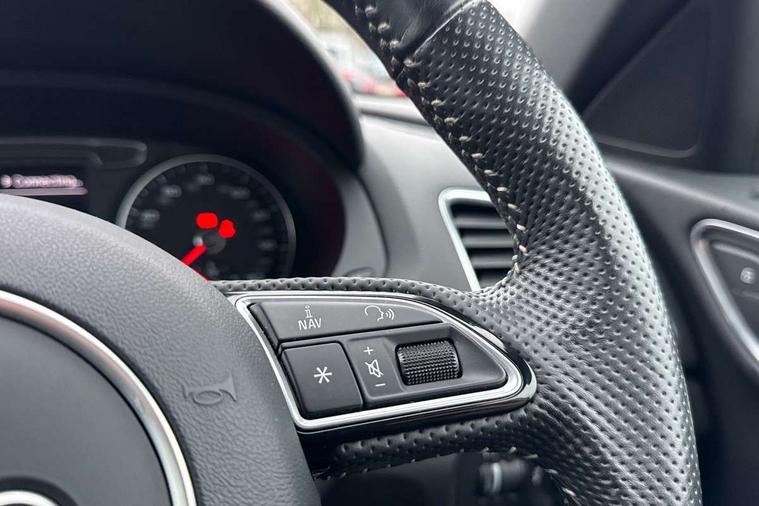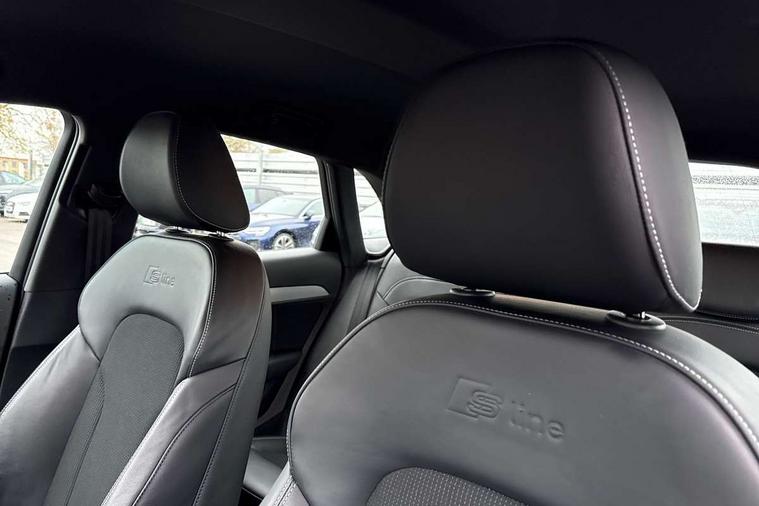 6.5" colour display screen, Audi drive select, Cruise control, Electro-mechanical PAS, Low washer fluid indicator, MMI - Multi Media Interface control system, On board computer, Remote electric boot opening/closing, Service interval indicator, Voice control system, Dynamic suspension, Audi music interface, DAB digital radio module, Acoustic windscreen, Aluminium window surround, Auto dimming rear view mirror, Body colour door mirrors, Body coloured bumpers, Chrome exhaust tailpipe, Coming home function, Door mirror integrated indicators, Front and rear electric windows, Front fog lights, Front lip spoiler, Heated windscreen washer jets, LED daytime running lights, LED headlights with headlight washers, LED rear lights, Light and rain sensor for auto activation of lights and windscreen wipers, Loading sill protector in stainless steel, Rear diffuser with platinum insert, Rear wiper, S Line body styling, Sunband for windscreen, 12V socket in rear centre console, 3 spoke multi-function Q design steering wheel with paddle shift, Aluminium door sill trims, Black cloth headlining, Door sill trim strips, Dual zone climate control, Electric front lumbar adjustment, Front and rear headrests, Front and rear velour floor mats, Front centre armrest with storage compartment and angle adjustment, Front sports seats, Height/reach adjust steering wheel, ISOFIX on front passenger and rear outer seats, Jack and tool kit, Perforated leather gearknob, Retractable luggage cover, Split fold rear seat, Storage compartment and 12V socket, Under floor storage in luggage area, 3x3 point rear seatbelts, ABS+Electronic Brake force Distribution, Curtain airbags, Driver and passenger airbags, Driver and passenger side airbags, EDL + ASR, Electrically operated child locks on rear doors, Electromechanical parking brake, ESP, First aid kit, Front passenger airbag deactivation, Head airbags, Seatbelt warning light, Tyre pressure monitoring system, Warning triangle, Locking wheel bolts, Remote central locking, Thatcham category 1 alarm + immobiliser, Matt brushed aluminium fascia and door trim inlays,
