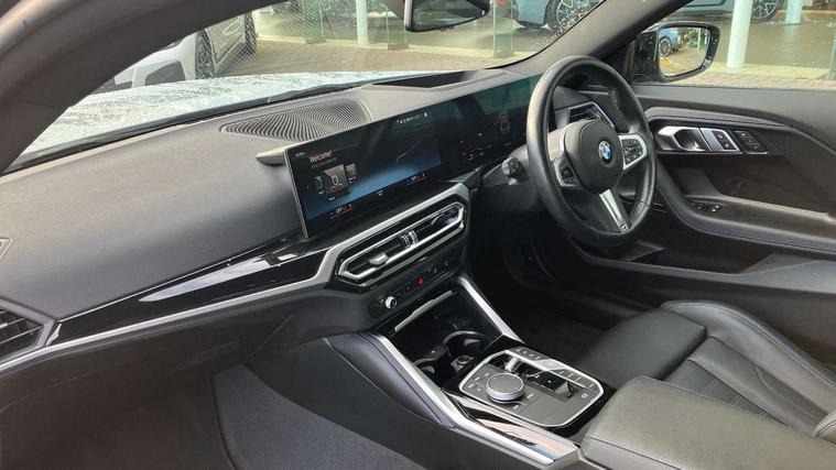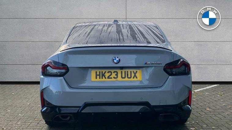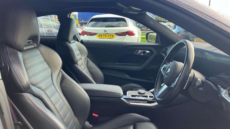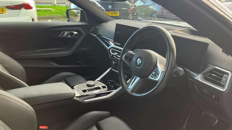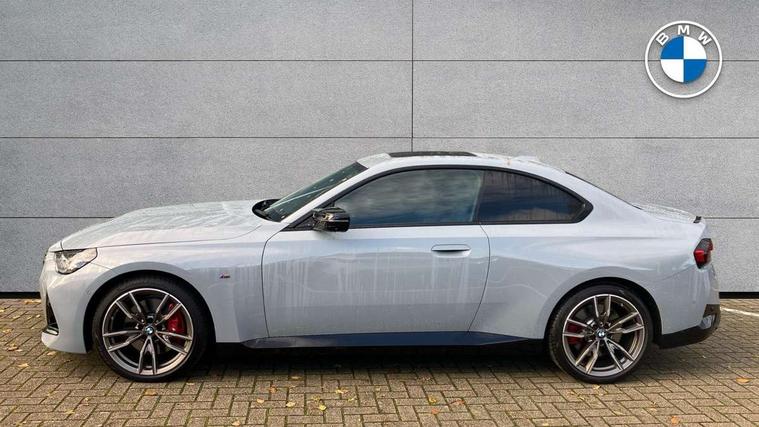 2 USB connections for charging and transferring data, 4G LTE connectivity with hard wired 4G network sim card, Attentiveness assist, Bluetooth with USB, BMW ConnectedDrive online services, BMW Intelligent Personal Assistant, BMW operating system 8 with variable, configurable widgets display information in real time, BMW Teleservices, Check Control warning system for monitoring of lights and door/luggage compartment open warning, Direct selection buttons, Drive off assistant, Driving experience switch with sport+ mode, Eco pro mode, Electric power steering, Front and rear parking sensors, Front/rear Parking distance control, iDrive controller with turn and press function, Integrated owners handbook, Intelligent functions, Live cockpit plus with nav function 12.3" instrument cluster and 14.9" centre display, Oil sensor for level and grade, Optimum shift indicator, Personal Profile, Touch operation on control display, Variable sport steering, Widescreen multi-media display, WiFi interface for wireless connection of mobile terminal devices, Aluminium lightweight construction, Balancer shaft, BMW TwinPower Turbo inline 6-cylinder petrol engine, Double VANOS, Drive performance control with ECO PRO comfort + sport mode, High precision injection, M Sport differential, Petrol Particulate Filter, Sport automatic steptronic transmission with gearshift paddles, manual gearshift time display, launch control, coasting idle ECO PRO/COMFORT modes, Twin scroll turbocharger with Valvetronic, xDrive with rear orientated application, DAB tuner, Acoustic windscreen wipers for reduced driving noise, Adaptive LED Headlights, Automatic windscreen wipers and automatic headlight, Automatically dimming rear view mirror, BMW individual lights shadow line, Body colour door handles flush with door surface, Body colour front and rear bumpers, Daytime running lights, Electric windows - front and rear, with open/close fingertip control and trap release, Exhaust tailpipes x 2 - free form finisher in black chrome in left and right, Exterior air inlets in front bumper with embellishers in high gloss black, Fading support, Flap controlled M Sport exhaust system, Front and rear bumper system with replaceable deformation elements, Front door sill finishers in black plastic with BMW designation, Front ornamental grille frame in high gloss black, Front windscreen wipers with integrated washer jets, Green tinted heat protection glazing, High beam assistant, High gloss black exterior M mirror caps, High gloss black sill, bumper trim sides and diffuser insert, High gloss shadowline exterior trim in mirror triangle cover, mirror cover panel, mirror bezel and window border, High level third brake light, Indicators integrated int mirror housing, LED registration plate light, LED technology rear tail lights, brake lights and turn indicators, Lightweight engineering, M Sport spoiler - Gurney in body colour, Model designation and M badges in cerium grey, Model designation on right side of tailgate, Rear boot, Rear fog lights, Reversing light in rear light cluster, Shark fin antenna, Side frame decorative moulding black high gloss, Single part LED rear lights with smoked glass components, Sun protection glass, Trailer stabilisation logic, Visible VIN plate, xDrive designation on left tailgate, 12V power socket in front centre console with blanking plug, 2 cupholders in front centre console, 2 zone automatic air conditioning, Ambient lighting, Compartment in front of cupholder, Conditioned based service, Driver seat backrest width adjustment, Electric front seat adjustment with driver memory, Front and rear side armrests integrated into door trim, Front armrest, Front door pockets, Front head restraints, Front M Sport seats, Front passenger seat lumbar support, Heated front seats, Illuminated glove compartment with separate small compartment, Lumbar support for driver, M headliner Anthracite, M sport leather steering wheel, M240i badge in instrument cluster, Manually adjustment steering wheel column, Rear seat backrest with manual 40:20:40 split folding, Rear seat centre foldable armrest with integrated cup holder, Single front passenger seat, Storage compartment between rear seats, Storage tray and compartment with cover in centre console, Sun visors with vanity mirrors and insert tab, Through loading system with 40/20/40 split folding 2 rear seat in 2nd row, Two folding rear seat headrests, Velour floor mats, Vernasca leather upholstery, Additional storage compartment pack without USB - 2 Series Coupe, Connected pack professional - 2 Series Coupe, Interior and exterior mirror pack - 2 Series Coupe, M Sport exterior styling aerodynamics pack - 2 Series Coupe M240i, 2 tone horn, Anti lock braking system (ABS) with cornering brake control, Automatic Stability Control (ASC), BMW emergency call, Brake drying, Child seat ISOFIX attachment for the two outer rear seats, Crash sensor activating of airbags, Unlocking doors, hazard warning lights, interior light, safety battery terminal, Deactivation of fuel pump in the event of a crash, Driver and front passenger airbags, Driver and front passenger side airbags, integrated in the door side seat backrest bolsters for all seat variants, Dynamic brake control, Dynamic stability control + (DSC+), Dynamic Traction Control - DTC, Electrically operated hand brake including automatic hold function and automatic release when driving off, Front and rear disc brakes, Head airbags for all 4 outer seats, M seat belts, M Sport brake with red calipers, Manual deactivation of front passenger airbag, Seat belt security check for driver and front passenger, Seatbelt warning, Side impact protection, Three point seat belts on 4 seats including front belt stopper, pyrotechnic belt tensioners and belt force limiters, Tyre pressure sensor, Warning triangle and first aid kit, Alarm system (Thatcham 1) with remote control and electronic engine immobiliser, Central locking switch for all doors, fuel filler cap and luggage