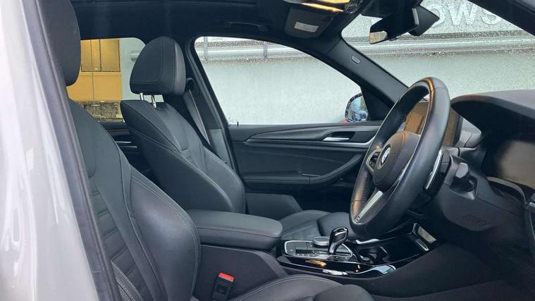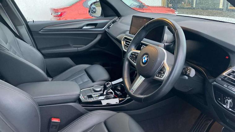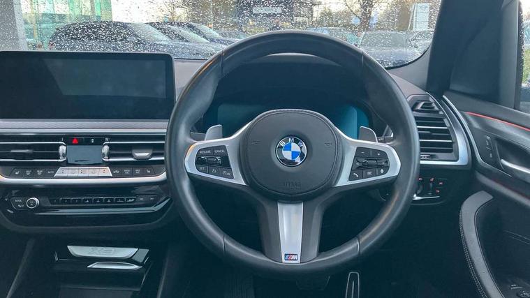 Active Guard, Attentiveness assist, BMW Live Cockpit Professional nav system including 12.3" instrument display + 12.3 high resolution control display, BMW Online services, BMW Teleservices, Brake pad wear indicator in front and rear, Check Control warning system for monitoring of lights and door/luggage compartment open warning, Condition based service - BMW service history, electronic service booklet, integrated owner's handbook, Connected drive services, Cruise control with brake function + speed limiter, Electric boot lid, Front/rear Parking distance control, iDrive touch controller with 8 favourite buttons, Instrument cluster with speedometer with mph readout, tachometer, fuel gauge and oil temperature gauge, Lights on warning by audio warning signal when ignition is switched off, Oil sensor for level and grade, warning by check control system, On board computer - average speed+fuel consumption, service interval, clock/date, odometer/trip meter, outside temperature display and ice warning, Optimum shift indicator, Personal Profile - automatic lock when driving away selectable, Run flat indicator, Stop/start system, Variable sports power steering with drive performance control Sport+ mode, Automatic transmission with gearshift paddles, Diesel particulate filter, Incorrect fuelling protection, Larger capacity fuel tank, M sport suspension, Multi-link rear suspension, Performance Control, BMW professional radio/CD/MP3, DAB tuner, Acoustic glazing, Automatic windscreen wipers and automatic headlight, Black finish on B pillars, Body colour door handles, Body colour electric adjust heated aspherical door mirrors, Body colour roof mouldings, Body coloured bumpers, Direction indicator, side repeaters, integrated in exterior mirrors, Dynamic brake lights, Exhaust tailpipes - dual, round, split left and right with chrome finisher, Fingertip control / anti-trap function on electric window, Folding wing mirrors with auto dimming, Follow me home headlights, Front and rear bumper system with replaceable deformation elements, Front and rear electric windows, Gloss chrome tailpipes finishers, Green tinted heat insulating glass, Heated windscreen washer jets, High beam assistant, High gloss black shadow line roof rails, High gloss shadowline exterior trim in decorative moulding side frame/recess cover/guide rail/B, C pillars/mirror frame and triangle with mirror base, High level 3rd brake light incorporating LED Technology, Interior rear view electrochromatic mirror with automatic anti dazzle function, LED tail lights, Lightweight engineering, M aerodynamic bodystyling, M Sport entry door sill strips, Model designation, Rain sensor, Rear side wing doors, Rear wing door, Rear wiper, Shark fin antenna, Side exterior M designation badges, Visible VIN plate, Welcome lighting, Windscreen wipers with adjustable interval, 12V power point in luggage area, 12V power socket in front centre console, 3 rear headrests, 3 seat bench in 2nd row, 3 zone automatic air conditioning, 4 lashing points to secure luggage, 40:20:40 split folding rear seat with loading system, Ambient lighting, Anthracite headlining, Automatic interior light when door is opened/ignition switched off or via remote key, Driver seat backrest width adjustment, Floor mats in velour, Foldable storage floor with compartment, Four grab handles integrated in roof lining, Front and rear bottle holders integrated into door trim storage compartments, Front and rear side armrests integrated into door trim, Front centre armrest with storage compartment, Front footwell lights, Front head restraints, Front passenger seat, Front sports seats, Front/rear courtesy lights with soft on/off dimming, Front/rear reading lights, Heated front seats, Isofix rear child seat preparation, Leather gear knob, Luggage area underfloor compartment, Luggage compartment lighting, M sport leather steering wheel, Multifunction steering wheel, Parcel shelf removeable and storable under boot floor, Reach and rake adjustable steering column, Rear centre armrest with 2 cupholders, Removable / retractable luggage cover, Slope adjustable rear seats, Storage compartment in rear centre console and front/rear door trims, Sun visors with vanity mirrors and ticket pocket, Toolkit located in luggage compartment, Two front cupholders with removable oddments tray/lid, Vernasca leather upholstery, Connected pro pack - X3, Driving assistant pack - X3, ADB - Automatic Differential Brake, Anti-lock braking system (ABS) with brake assist, Automatic Stability Control (ASC), Battery safety cut-off, BMW emergency call, Brake drying, Brake energy regeneration, Braking pre-tensioning, Child locks on rear doors, Cornering brake control (CBC), Crash Sensor - activation of central locking release, hazard warning light and interior lighting, Deactivation of fuel pump in the event of a crash, Driver and front passenger front and side airbags with passenger deactivation and ITS front and rear head airbags, Driver and front passenger knee airbag, DSC+, Dynamic brake control, Dynamic Traction Control - DTC, Electromechanical parking brake, Hill descent control, Hill start assist, Seatbelt security check for front seats, Side impact protection, Three point seatbelts to all seats with front and outer rear pyrotechnic belt tensioners and seat belt force limiters, Two tone horn, Tyre pressure sensor, Ventilated front and rear disc brakes, Warning triangle and first aid kit, Central locking switch for all doors, fuel filler cap and luggage compartment, Electronic engine immobiliser, Locking wheel nuts, Remote control including two integrated key - one button for open/close all lockable content, windows and separate button for open luggage compartment, Remote control Thatcham category 1 alarm, Start/stop button with Comfort Go keyless engine start and auto Start/stop deactivation button, Low rolling resistance tyres,