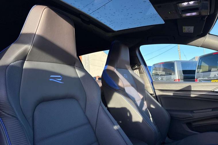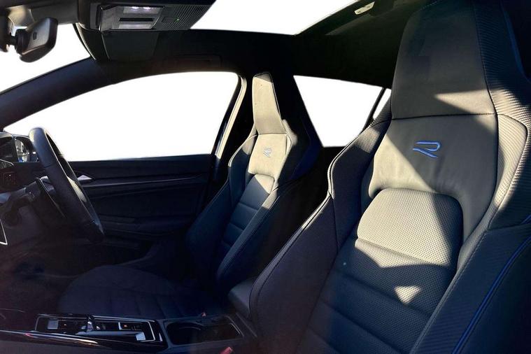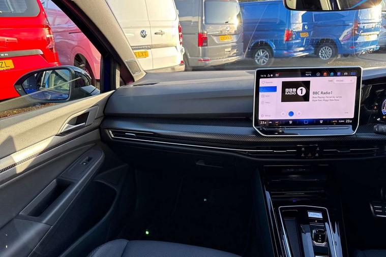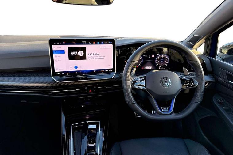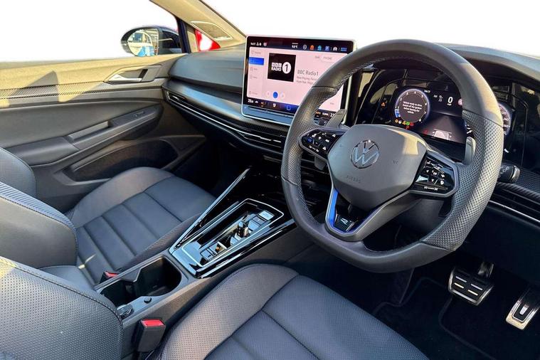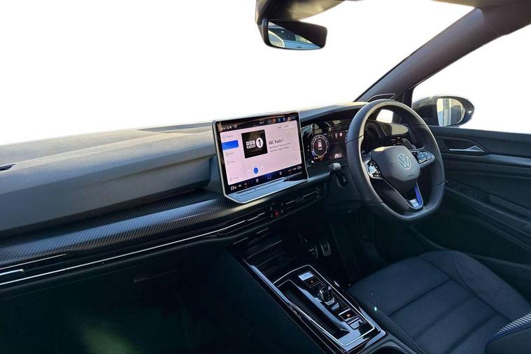 Activated carbon canister, Adaptive cruise control (ACC), Advanced driver attention and drowsiness monitor, Dynamic road sign display, E-Sim card for online connectivity, eCall emergency call system, Electronic maximum speed limit increased to 270 km/h, includes driving Modes 'drift' and 'special', larger roof spolier and GPS laptimer + G-Meter, Multi-color Digital cockpit pro, selection of different info profile possible, Multifunction front facing camera for distance control, Navigation system, Oncoming vehicle braking when turning including swerve support, Side assist blind spot lane change system, rear traffic alert and exit warning system, Speed limiter, Speedo, rev counter, electronic odometer, trip, service interval display, exterior temperature and fuel gauge, Traffic jam assist, Voice enhancer and voice control, Warning signal and warning light for front and rear seatbelts not fastened, We connect plus preparation, We connect preparation, Wireless app connect, All wheel drive - 4Motion, Petrol Particulate Filter, Start-stop system with battery regeneration (recuperation - energy recovery during braking), XDS electronic differential lock for improved traction and handling, 2 USB C ports in front, 2 USB charging sockets on the centre console in the rear charging capacity upto 45W, Digital radio reception (DAB), Diversity antenna for FM reception, Gaming platform via car app, Infotainment system with 12.9" display, Mobile phone interface with inductive charging feature, 3rd brake light, Auto dimming rear view mirror, Automatic headlamp activation with Coming home and Leaving home feature, Black badge on B-pillar, Black mirror caps, Black strips on radiator grille and headlights, Body colour door handles, Darkened headlights, Darkened R Logos and VW logos in front, rear and on fender, Exterior mirrors convex on the left and aspherical on the right, Front and rear electric windows, Front fog lamps and cornering light, Heat insulating windshield made of laminated glass, Illuminated lighting animation with wake up/goodbye scenario, LED matrix headlights with ambient light V2, advanced high beam, dynamic range contol with cornering, LED rear lamp with indicator, poor weather, LED separate daytime running light, R name plate, Rain sensor, Rear fog light on one side and reversing lights on both sides, Rear side wing doors, Rear tinted glass 65% light absorbing from B pillar backwards, Rear windscreen washer and wiper with interval delay, Remote electrically foldable door mirrors, puddle lights and reverse activated passenger's door mirror, Welcome light with surround lighting, 12V socket in front centre console, 12V socket in luggage compartment, 3 rear head restraints, 3 seat bench in 2nd row, 30 colour ambient lighting, illuminated center console storage compartment in front, Air care climatronic 3 Zone automatic climate control with rear air conditioning control panel, Aluminium gearshift handle, Brushed stainless steel pedals, Chrome plated radiator grille inserts, air vent surrounds and light switch surrounds, Entry lights, Front + rear black carpet mats, Front centre armrest, Integrated front head restraints, ISOFIX anchors for child seats on outer rear bench seats and on front passanger seat compatible for i-Size, Luggage compartment lighting, Rear cupholder and loadthough, Single front passenger seat, Soul black instrument panel, Soul black roof lining, Split folding backrest with centre armrest and unsplit rear seat bench, Sun visors with illuminated vanity mirrors, Driver assistance pack - Golf Estate/Hatchback Auto, R styling pack - Golf, Technology park and comfort pro package - Golf Hatchback, 3 point height adj front seatbelts + pretensioners, 3 rear three point seatbelts, ABS, Autonomous emergency braking front assist with pedestrian and cyclist monitoring, Child locks on rear doors, Driver and front passenger airbag with front passenger airbag deactivation, Electronic parking brake with auto hold, ESC (Electronic Stability Control), Extended pedestrian protection measures, Front and rear black brake calipers with darkened R-logo, Hill start assist, Rear disc brakes, Two tone horn, Tyre pressure loss indicator, Volkswagen roadside assistance, Anti theft wheel bolts, Preparation for alcohol interlock, 19" Estoril alloy wheels in black with progressive steering, Sporty vehicle dynamics, Tool kit for tyre mobility set, Tyre mobility kit Includes 12V compressor and tyre sealant, Wheel hub cover with darkened R-logo,