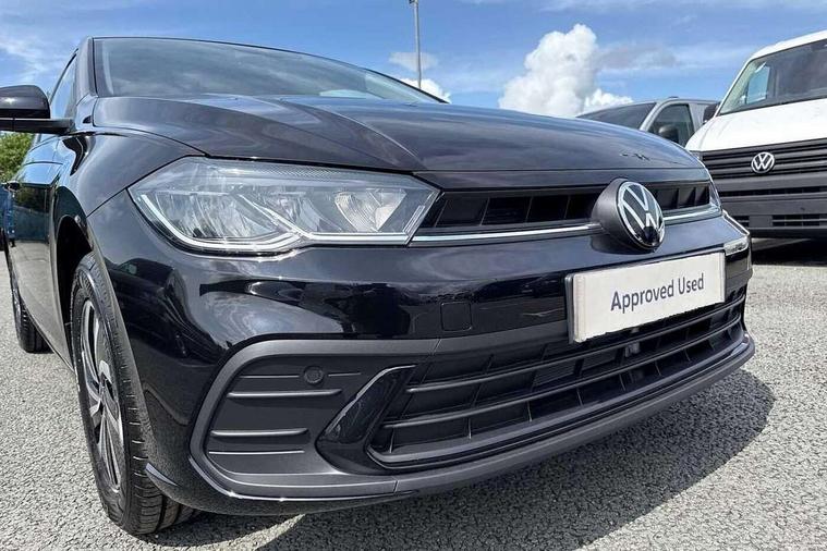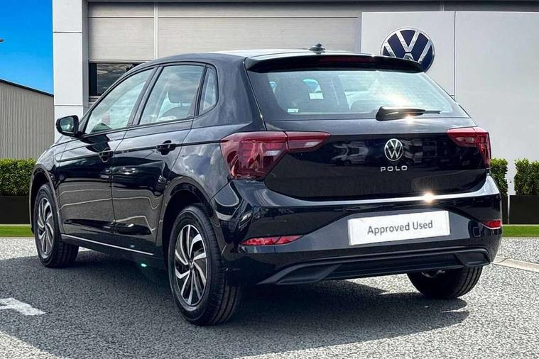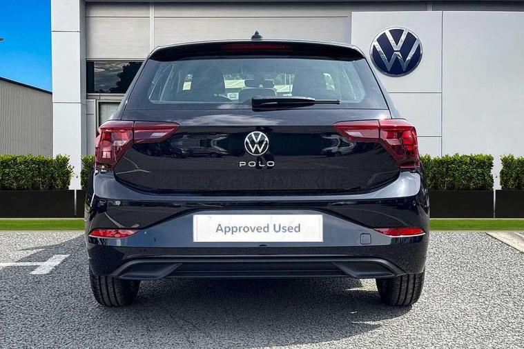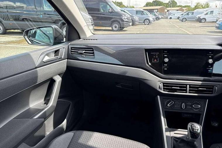 Bluetooth mobile phone interface, Cruise control + speed limiter, Driver alert system, Emergency call service, Lane keeping system Lane Assist, Power assisted speed sensitive steering, Preparation for We connect and We connect plus, Speedo and rev counter, electronic odometer, trip, service interval display and fuel gauge, Standard rear axle, Trip computer, Warning signal and warning light for front and rear seatbelts not fastened, Washer fluid level indicator, Wireless app connect, Front wheel drive, Rear shock absorpion, Start-stop system with battery regeneration (recuperation - energy recovery during braking), DAB Digital radio, Diversity antenna for FM reception, Automatic dimming interior rear view mirror, Body colour bumpers, Body colour door handles, Body colour door mirrors, Electric front windows, Heat insulating darkened glass in side and rear windows, Heat insulating glass windscreen, Power folding adjustable/heated exterior mirrors and front passenger exterior mirror lowering function, Rain sensor, Rear electric windows, Rear fog light, Rear windscreen washer and wiper with interval delay, Third brake light, 12V power socket in centre console, 2 front and 2 rear reading lights, 2 USB-C ports in the front, 2 USB-C charging sockets on the center console in the rear, 3 rear head restraints, 60/40 split folding rear seat and rear seat bench not split, Ceramique headliner, Chrome plated radiator grille inserts, air vent surrounds and light switch surrounds, Door and side trim panel, Driver and front passenger seat height adjustment, Driver/passenger sunvisors with illuminated vanity mirrors, Front centre armrest, Front seat backrest storage pockets, Front standard seats, Handbrake lever handle in leather, Hartley/Thomas cloth upholstery, Isofix child seat preparation easy-fit (for two outer rear seats, and front passenger seat) compatible with I-size, Leather trimmed gear knob, Luggage compartment cover, Luggage compartment floor, Luggage compartment lighting, Multifunction steering wheel, Standard pedal cluster, Light and vision pack - Polo, 3 point height adj front seatbelts + pretensioners, 3x3 point rear seatbelts, ABS, Driver and front passenger airbag with front passenger airbag deactivation, Drivers and front passengers safety optimised head restraints, ESC (Electronic stability control) + EDL (Electronic Differntial lock) and ASR (Traction control), Extended and predictive pedestrian/ cyclist protection, Front assist including city emergency braking, Front curtain and side airbags with center airbag, Front disc brakes, Hill hold control, Rear drum brakes, Single tone horn, Tyre pressure loss indicator, Alarm with interior protection, Anti-theft alarm system with interior monitoring, backup horn, and towing protection, Anti-theft wheel bolts, Electronic engine immobiliser, Remote central locking with 2 remote folding keys, Lava stone black gloss/matt decorative inserts in dash and front door panels, Low rolling resistance tyres,