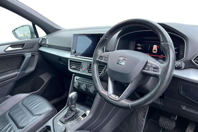 'Lights On' Reminder warning buzzer, 10.25" digital cockpit, Adaptive cruise control with speed limiter, Bluetooth audio streaming with handsfree system, Digital clock, Digital cockpit, e-Call (emergency call), Front assist city emergency braking and pedestrian protection, Full Link Smartphone Integration with Mirror Link, Apple Car Play, Google Android Auto, Lane assist, Low fuel warning light, Outside temperature gauge, Park assist system, Rear view camera, RPM counter, SEAT Drive profile - 4 different modes, progressive steering, 4Drive versions with off-road/snow, steering response, throttle response, gear shifts, Top view camera, Trip computer, Wash water level indicator, Comfort suspension, XDS electronic differential lock, Navigation system with 8" colour touchscreen with proximity sensor, 3D Map display, DAB, AM/FM Radio, 3 USB, Aux-in, 8 speakers, SD card, Steering wheel mounted audio/telephone controls, Auto dimming rear view mirror, Auto headlights with automatic coming and leaving home function, Automatic headlight adjustment, Body colour door mirrors and handles, Body coloured bumpers, Chrome front grille frame, Chrome roof rails, Chrome window trim, Dark tinted rear windows, Electric front/rear windows, Electrically adjustable and folding door mirrors, Front halogen fog lights with cornering function, Fuel door linked to central locking, Full LED headlights with LED rear lights, Hidden exhaust pipe, Illuminated aluminium front door sill with XCELLENCE logo, LED daytime running lights, LED licence plate lighting, Rain sensing wipers, Rear fog lights, Rear wash/wipe, 3 zone climate control, Ambient spot lighting and front footwell illumination, Black interior roof, Centre armrest in front with air outlet in rear, Driver and passenger sunvisor with covered and illuminated mirror, Driver/passenger lumbar adjustment, Easy fold rear seat system - second and third row, Electric driver's seat with memory, Folding table on front seat backrests, Forward and backward adjustable seats 2nd row, Four cargo rings in the boot, Front cupholders, Front seat back storage pockets, Gear shift indicator, Height adjustable driver's seat, Height adjustable front headrests, Height adjustable passenger seat, Illuminated boot, Instrument lighting with brightness control, ISOFIX points in outer 2nd row seats and front passenger seat with top tether anchorage points, Leather gear knob, Leather steering wheel, Leather upholstery with sports seats, Leather wrapped multifunction steering wheel, Luggage compartment floor with split function, Rear armrest and easy back seat release mechanism from boot, Sliding boot cover, Storage draw under front passenger seat, Three 12V sockets, Tool kit, White ambient lighting in front and rear door panels + LED lights in interior door handles, Winter pack - Tarraco, ABS, Active front head restraints, Driver/front passenger airbag, Drivers knee airbag, Electronic parking brake with auto hold, Electronic stability control, Front passenger airbag deactivation, Front side airbags, Hill hold control, Seatbelt reminders for all seats, Tiredness recognition system, Traction control, Two curtain airbags, Tyre pressure monitoring system, Alarm, Central locking, Keyless enter and go with electric tailgate with virtual pedal, Locking wheel bolts, Power locking and remote control with two foldable keys and opening boot selector, Chrome interior detailing - door and dashboard decorative inserts, 20" Supreme machined alloy wheels 37/1,