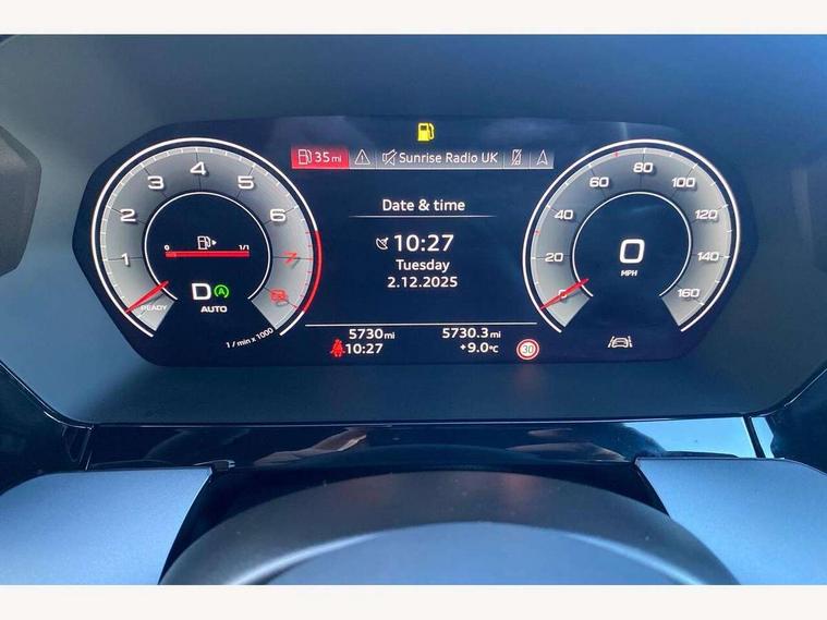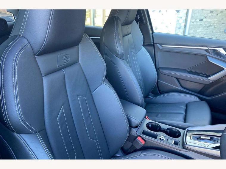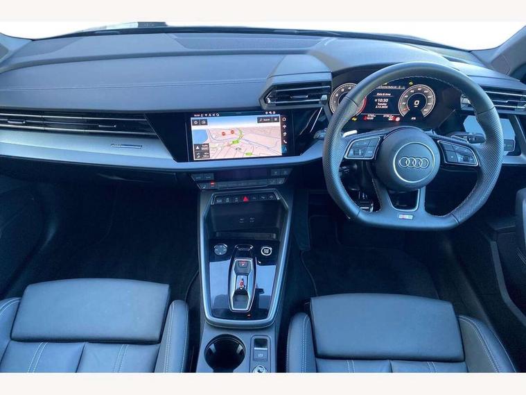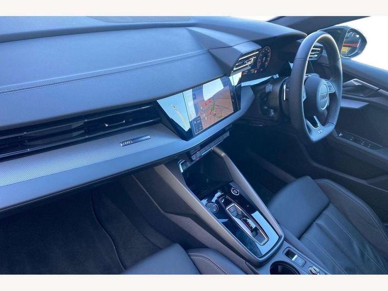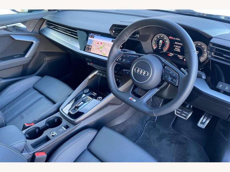 Adjustable speed limiter, Audi drive select, Audi smartphone interface with app store includes wireless Apple carplay, Android auto and Amazon alexa integration, Audi virtual cockpit plus - 12.3" full HD resolution dynamic digital instrument cluster, Automatic start/stop system with recuperation, Bluetooth interface, Camera based traffic sign recognition, Collision avoidance assistant, Cruise control, Distraction and Fatigue warning, e-Call (emergency call), Electromechanical power speed sensitive steering, Emergency assist, Lane departure warning system, MMI Navigation Plus with high resolution 10.1" colour touch screen display, Park Assist with parking system Plus, Service indicator, Trip computer, Voice control system with natural language interaction, Sports suspension, Audi Phonebox light with wireless charging, Audi sound system - 10 loudspeakers including centre loudspeaker and subwoofer, DAB Digital radio, USB ports with charging function in the rear, Acoustic glass windscreen, All weather light, Aluminium window trim, Auto dimming frameless rear view mirror, Automatic dynamic range control, Body colour exterior mirrors, Chrome exhaust tailpipes, Dipped beam, main beam, position light and turning light, Electrically adjustable/heated/folding/auto dimming door mirrors with integrated LED indications + kerb view function for passenger side, Exterior model badging, Front and rear side air inlets in grained matt black with dark liquid chrome frame, Front electric windows, Front radiator grill in high gloss dark chrome, Heat insulating glass windscreen, Illuminated door sills with aluminium inserts at the front with S logo, Intersection light, LED 3rd brake light, LED brake lights, LED daytime running x3, LED headlights with LED rear lights and dynamic rear indicators, LED rear number plate lights, LED reverse light, LED tail lights, Light and rain sensors, Manoeuvring light, Motorway light, Privacy glass - dark tinted rear window, rear door and side windows, Rear boot, Rear diffuser and grill in grained matt black with inlay in dark liquid chrome, Rear electric windows, Rear side wing doors, S line bumpers, Side S line emblems on front wings, Side sill trim in dark liquid chrome, Static cornering light, 12V socket and storage compartment in front centre console, 3 seat bench in 2nd row, 3 spoke flat bottomed leather multifunction sport steering wheel with gear shift paddles, 3-zone deluxe automatic air conditioning, 4 way electrically adjustable lumbar support for driver and front passenger, 40/20/40 split folding rear seat bench, Black cloth headlining, Black front and rear floor mats, Front and rear centre armrest in artificial leather with contrasting stitching on armrests and instrument panel, Front and rear headrests, Heated front seats, Height and reach adjustable steering wheel, Manual boot compartment lid, Manually adjustable front seats, Rear centre armrest with cupholder, S badging on the steering wheel, Seat side bolsters, Single front passenger seat, Stainless steel pedals and front footrest in black, Twin leather upholstery with front sports seats S embossed logo, Aluminium interior elements pack - A3, Multi-coloured LED interior lighting package with Multi-coloured contour lighting of instrument panel - A3, 3x3 point rear seat belts, Driver and front passenger airbag with passenger airbag deactivation, Electronic Stabilisation Control (ESC) including ABS, ASR and EDL, First aid kit with warning triangle and 2 safety vests, Front side airbags with head airbags and interaction airbag, Hill hold assist, Pre-sense front with pedestrian and cyclist detection, Seatbelt monitoring, Tyre pressure loss indicator, Anti theft alarm, Anti-theft wheel bolts, Electronically operated child locks, Immobiliser, Remote central locking with safelock, Black dashboard, Inlay in dark aluminium spectrum,