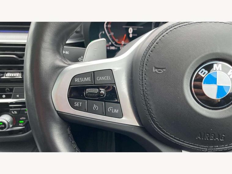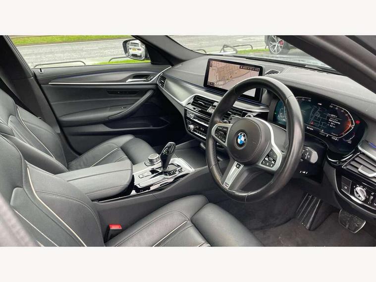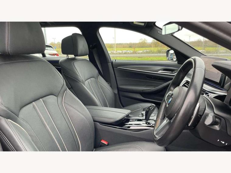 32GB hard disc drive (HDD) memory, Active Guard, BMW Live Cockpit Professional sat nav system with 12.3" instrument display and high resolution control display, BMW Teleservices, Brake pad wear indicator, Cruise control with brake assist, Driving experience switch, eCall emergency call system, Electric boot lid - electrically opening/closing rear tailgate, Electric Power Steering (EPS) with Servotronic, iDrive controller with shortcut buttons, Intelligent emergency call, Multifunctional instrument panel, Oil sensor for level and grade, On board computer inc. average speed, fuel consumption, liquid crystal Info display, journey computer, outside temperature display, personal profile, On-board diagnosis - OBD, Powered by Operating System 7.0, Service interval indicator, Speed limiting function, Stop/start button, 48V Mild hybrid technology, Diesel particulate filter, Drive performance control with ECO PRO comfort + sport mode, Engine cover with twin turbo designation, M sport suspension, Steptronic transmission with gearshift paddles on steering wheel, DAB Digital radio, Favourite buttons, Acoustic glazing, All round anti-corrosion system, Automatic windscreen wipers and automatic headlight, Automatically dimming rear view mirror, BMW Individual high gloss shadow line includes exterior mirror frame, window frame surround, B pillar finish, air breather in high gloss black, Body colour door handles, Body coloured bumpers, Door handle illumination, Dynamic brake lights with LED technology, Electric front and rear windows with fingertip open/close + anti-trap facility and comfort closing function, Electrically adjustable and heated exterior mirrors includes integrated direction indicators and automatic parking function, Folding exterior side mirror with auto- dimming, Follow me home headlight function, Heated windscreen washer jets, High gloss black active air stream kidney grille, High gloss shadow line roof rails, Independent opening for tailgate window, LED daytime running lights, LED third brake light, M designation on front side panels, left and right in chrome, Rear side wing doors, Rear wiper, Trapezoidal visible exhaust tailpipes, xDrive designation on tailgate, 12V power socket in front and rear, 3 seat bench in 2nd row, 40/20/40 split folding rear seats with additional mechanism in luggage compartment, Anthracite headlining, Armrest - front and rear integrated door trim, centre console includes storage compartment, rear centre includes 2 cupholders, Child seat ISOFIX attachment with rear outer seats includes top tether, Cup holders (2 front and 2 rear), Front and rear footwell lights, Front reading lights, Height and length adjustable steering column and activation via lateral lever on the steering column, Lockable glove compartment with light, M door sill finishers, M specific pedals, M specific velour floor mats, Multifunction controls for leather steering wheel, Rear headrests, Retractable luggage compartment dividing net, Single front passenger seat, Three spoke sport M leather steering wheel, Ambient lighting pack - 5 Series, Connected package professional - 5 Series, M Aerodynamic pack - 5 Series, Parking assistant pack - 5 Series, Airbags - driver/front passenger, rear and side, first and second row seats head airbags, front passenger seat airbag deactivation, Anti-lock braking system (ABS), Automatic Stability Control (ASC), Brake assist function, Brake energy regeneration, Cornering brake control (CBC), Crash sensor activating central locking release, hazard warning lights, fuel cut off and interior lighting, Deformation zones - front and rear with door reinforcements and bumpers up to 2.5 mph, DSC - Dynamic Stability Control, Dynamic brake control, Dynamic Traction Control - DTC, Electromechanical parking brake with automatic drive away release and auto hold function, Electronic brake force distribution, Engine drag torque control, Front and rear brake discs with interior ventilation, Front head restraints with anti-whiplash, Hill start assist, M Sport brake in high gloss blue painted brake callipers with M designation, Mechanical child proof lock on rear doors, Passive protection for pedestrians, Rear door child safety locks, Side impact protection, Three point seat belts for all four seats, Two tone horn, Tyre pressure indicator, Warning triangle and first aid kit, Alarm system (Thatcham 1) with remote control and electronic engine immobiliser, Locking wheel bolts,