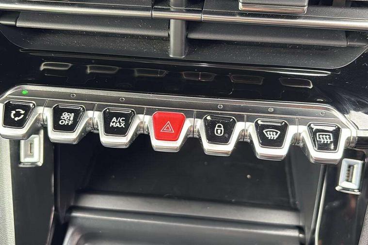Bluetooth telephone facility, Driver attention warning, E-call, Exterior temperature indicator with ice warning, Lane keep assist, Mirror screen with mirror link, apple carplay and android auto, Multi function trip computer, PEUGEOT i-Cockpit with compact steering wheel, PEUGEOT i-Cockpit with configurable 3D headup instrument panel, PEUGEOT SOS and assistance, Rear parking sensor, Smart phone docking station, Speed limit recognition and recommendation, Start/stop system, Visio Park 1 with 180 degree Colour reversing camera, 2 front USB socket with USB-C, 2 USB sockets in rear, 6 speakers radio with mp3 compatible, DAB Radio (Digital Audio Broadcasting), Voice recognition for radio, navigation and telephony features, 2 X Rear number plate lights, Automatic front windscreen wipers, Automatic hazard light activation upon heavy brake application, Black front wing trim with gloss black detail, Body coloured exterior door handles, Chrome Lion Badge front and rear, Colour coded rear spoiler, Colour coded roof, Dark tinted rear side and tailgate windows, Diamond black mirror shells, Eco LED headlights, Electric, heated, and power folding door mirrors, Electrochrome rear view mirror, Front bumper - Silver lower trim, Gloss black finish on B pillar, Gloss black longitudinal roof rails, Gloss black rear cluster connecting strip, Gloss black roof bars, Headlights left on audible warning, LED daytime running lights with distinctive tooth design, LED third brake light, Model designation badges front and rear, One touch electric front/rear windows with pinch protection, Radiator grille - gloss black top edge trim, Radiator grille chrome chequered, Rear full LED 3D peugeot signature claw effect lights with daylight function, Rear reversing lights, Rear side wing doors, Rear windscreen wiper triggered automatically in reverse gear, Tailgate with heated rear windscreen and wiper blade, Trailer Stability Programme, Variable front intermittent wipers, Wheel arch extensions, 1/3 to 2/3 split folding rear seats, 12v power outlet - front, 12V socket, 3 seat bench in 2nd row, Automatic air conditioning with pollen and active carbon filter, Central front armrest with storage compartment, Driver and front passenger comfort seats, Driver seat manual adjustment - height, longitudinal and back rest angle, Electric power steering with reach and rake adjustable steering column, Front centre armrest, Front LED interior light with 2 reading spotlights and rear interior light with timer, Front passenger seat manual adjustment - height, longitudinal and back rest angle, Gear lever top - manual in full grain leather, Gear shift indicator, High centre console, Leather steering wheel, Mint green contrast stitching to front centre console, door panels and dashboard facia, Modular boot floor, Multifunction steering wheel, Piano keys: Gloss black and chrome toggle switches to access main functions of the vehicle, Roof lining - light grey, Seatbelt unfastened on the move audible and visual alert for front and rear seats, Single front passenger seat, Switch for Push Button Start finished in black with chrome surround, Tri material cloth/leather upholstery, Visibility pack - 2008, 2x 2nd row ISOFIX child seat mountings, ABS (Anti-lock Braking System) with EBD (Electronic Brakeforce Distribution) and EBA (Emergency Braking Assistance), Acoustic vehicle alerting system, Active safety brake with night function/cyclists/pedestrians, Adaptive driver and front passenger airbags with passenger airbag deactivation function, Child locking functionality on rear doors, Driver/front passenger side airbags, Electric parking brake, ESP (Electronic Stability Program) + Hill Start Assist, Front and rear curtain airbags, Front and rear disc brakes, Front and rear three-point retractable seatbelts, with force limiters, Front optimised safety headrests and rear retractable headrests (x3), height adjustable, Tyre pressure sensor, Alarm system with anti-lift sensor, Automatic door locking when moving off, Deadlocks, Electronic code immobiliser, Exterior door lock x1 (Left-hand or passenger’s side), Remote central locking, Carbon effect Dashboard, front and rear door panel finish, 17" Salamanca diamond cut alloy wheels,