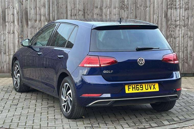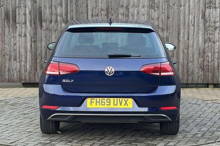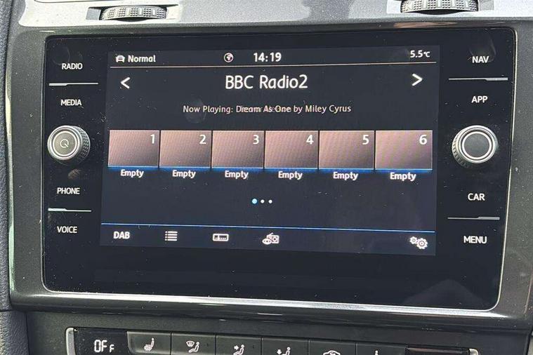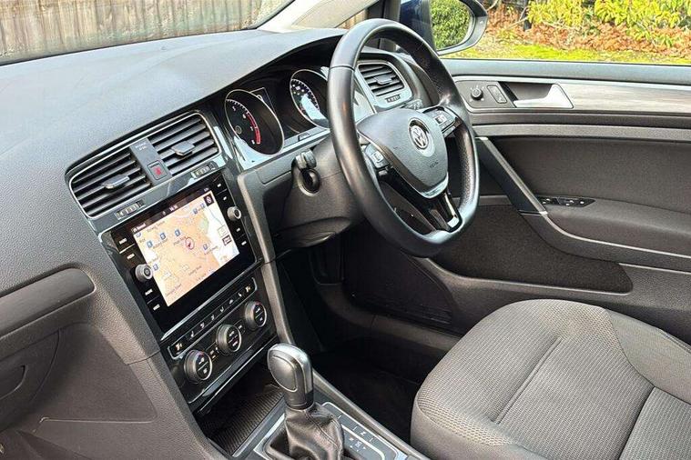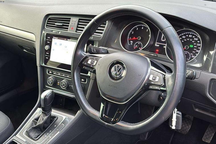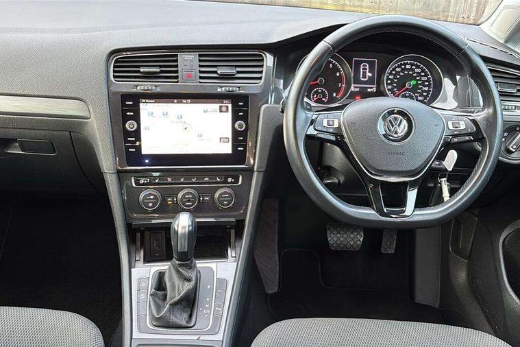 'Lights On' Reminder warning buzzer, ACC - Adaptive cruise control with front assist, forward collision warning, distance monitoring, city emergency brake and speed limiter, Bluetooth telephone and audio connection for compatible devices, Brake pad wear indicator warning light, Driver alert system, Driving Mode Selection with four preset modes - Eco, normal, sport or individual modes, Multifunction computer with visual gear change recommendation for fuel consumption, Power assisted speed sensitive electro-mechanical steering, Push tank flap, Speed limit display, Speedo, rev counter, electronic odometer, trip, service interval display, exterior temperature and fuel gauge, Stop/start system, Think blue trainer driver tips and journey analysis, Warning buzzer and light for front seatbelts unfastened, Battery regeneration during braking, XDS electronic differential lock, Composition media system, DAB Digital radio receiver, Driver Personalisation profile selection, MP3/WMA compatability, Multi device interface (MDI) via USB connection, Premium USB cable in choice of either Apple or Android smartphone compatibility, SMS Functionality, Title and cover art display, USB and SD card connectivity, Volkswagen media control, Black front air intake and radiator grille with chrome insert, Black rear diffuser, Body colour bumpers, Body colour door handles, Body colour door mirrors with integrated indicators, Dusk sensor + automatic driving lights, Electric front windows, Electric rear windows, Electrically adjustable and heated door mirrors, Fully galvanised body, Heated rear windscreen, High level 3rd brake light incorporating LED Technology, LED front fog lights with static cornering light function, Range adjustable headlights via infotainment system with LED daytime running lights, Rear fog lamp, Rear number plate lights incorporating LED technology, Rear tinted glass 65% light absorbing from B pillar backwards, Rear window aerial, Rear window wash/wipe with intermittent wipe, Reflectors in all doors, Tailgate with integrated rear roof spoiler, Windscreen wipers/ intermittent wipe + 4 position delay, 12V socket in luggage compartment, 3 rear headrests, 4 load lashing points in luggage compartment, 60/40 split folding rear seat backrest, Bag hook in luggage compartment x 2, Climate control - 2 zone electronic air conditioning with automatic air recirculation and allergy filter, Cooled glovebox, Cover for storage compartment in centre, Dust/pollen filter, Front and rear reading lights X 2, Front centre armrest with storage compartment and two rear air vents, Front seat back storage pockets, Grab handles front x 2, rear x 2 with integrated coat hooks, Height and reach adjustable steering wheel, Illuminated vanity mirrors, Instrument lighting white adjustable panel illumination, Interior light delay, Isofix preparation for 2 rear child seats, Load through provision with rear centre armrest and cupholders x2, Luggage compartment lighting, Overhead storage box, Pearl grey headlining, Storage box in luggage compartment, Storage compartment in roof console with cover, Storage compartments in centre console, Storage compartments in front doors, Storage compartments in rear doors, Stowable luggage compartment cover, Sun visors, Variable boot floor, height adjustable and removable, Convenience Pack - Golf, Mirror pack - Golf, Winter pack - Golf, 3 rear three point seatbelts, Airbags - Driver's and front passenger's, curtain airbag, Driver's knee, front side impact and passenger's airbag deactivation switch, Anti-lock Braking System (ABS) with Hydraulic Brake Assist (HBA), Automatic post collision braking system, Child locks on rear doors, Driver/Passenger optimised head restraints, Electronic parking brake with auto hold, Electronic stability control (ESC) including Electronic differential lock (EDL) and ASR (Traction control) with deactivation via infotainment system, Front ventilated disc brakes and rear disc brakes, Pre crash preventive occupant protection, Three point height adjustable front seatbelts with tensioners, Tyre pressure loss indicator, Alarm with interior protection and deactivation via infotainment system, Electronic engine immobiliser, Brushed dark silver decorative inserts in dash and door panels, Chrome plated air vent surround, Chrome-plated light switch surround, Polar night black decorative inserts in centre console, Steel space saver spare wheel,
