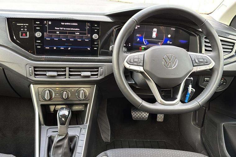 Advanced driver attention and drowsiness monitor, Bluetooth mobile phone interface, Dynamic road sign display, Emergency call service, Multifunction front facing camera for distance control, Park distance control, Power assisted speed sensitive steering, Predictive adaptive cruise control without follow-to-stop and speed limiter, Preparation for navigation system with media and internet package, Preparation for We connect and We connect plus, Rear view camera, Speedo and rev counter, electronic odometer, trip, service interval display and exterior temperature gauge, Standard rear axle, Travel Assist - Lane keeping system and traffic jam assist, Travel assist including emergency assist, Trip computer, Warning signal and warning light for front and rear seatbelts not fastened, Washer fluid level indicator, Wireless app connect, Front wheel drive, Rear shock absorpion, Start-stop system with battery regeneration (recuperation - energy recovery during braking), DAB Digital radio, Diversity antenna for FM reception, Front and rear 6 speakers, Automatic dimming interior rear view mirror, Automatic headlight control with LED separate daytime running lights with coming/leaving home function, Body colour bumpers with chrome inserts, Body colour door handles, Body colour door mirrors, Electric front windows, Engine badge deletion, Headlight range adjustment, Heat insulating and laminated safety glass windshield, LED Headlights, LED rear combination lamps, Power folding adjustable/heated exterior mirrors and front passenger exterior mirror lowering function, Rain sensor, Rear electric windows, Rear fog light, Rear side wing doors, Rear tinted glass from B-pillar backwards approx 65% tinted, Rear windscreen washer and wiper with interval delay, Third brake light, 12V power socket in centre console, 2 front and 2 rear reading lights with switch off delay and dimmer, 2 USB-C ports in the front, 2 USB-C charging sockets on the center console in the rear, 3 rear head restraints, 60/40 split folding rear seat and rear seat bench not split, Ceramique roof lining, Chrome plated radiator grille inserts, air vent surrounds and light switch surrounds, Door and side trim panel, Driver and front passenger seat height adjustment, Driver/passenger sunvisors with illuminated vanity mirrors, Front centre armrest, Front seat backrest storage pockets, Front standard seats, Handbrake lever handle in leather, Hartley/Thomas cloth upholstery, Headliner in recycled material, Isofix child seat preparation easy-fit (for two outer rear seats, and front passenger seat) compatible with I-size, Leather trimmed gear knob, Luggage compartment cover, Luggage compartment lighting, Removable luggage compartment floor, Single front passenger seat, Standard climatic zones, Standard pedal cluster, Three spoke leather wrapped multifunction steering wheel with shifting paddles, Light and vision pack - Polo, 3 point height adj front seatbelts + pretensioners, 3 point seat belt for centre rear seat, 3 point seatbelts, outer rear with ECE lable, ABS, Driver and front passenger airbag with front passenger airbag deactivation, Drivers and front passengers safety optimised head restraints, ESC (Electronic stability control) + EDL (Electronic Differntial lock) and ASR (Traction control), Extended and predictive pedestrian/ cyclist protection, Front assist with autonomous emergency braking (for Adaptive Cruise Control ACC up to 130 mph), Front curtain and side airbags with center airbag, Front disc brakes, Hill hold control, Manual child lock in rear doors, Rear drum brakes, Single tone horn, Tyre pressure loss indicator, Alarm with interior protection, Anti-theft alarm system with interior monitoring, backup horn, and towing protection, Anti-theft wheel bolts, Electronic engine immobiliser, Lava stone black gloss/matt decorative inserts in dash and front door panels, 16" Torsby alloy wheels, Low rolling resistance tyres,