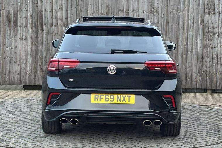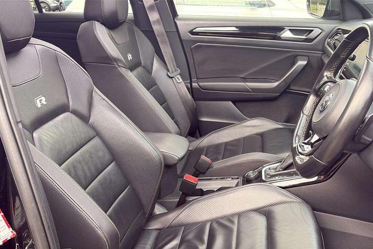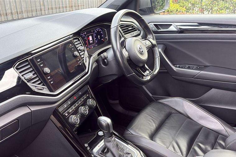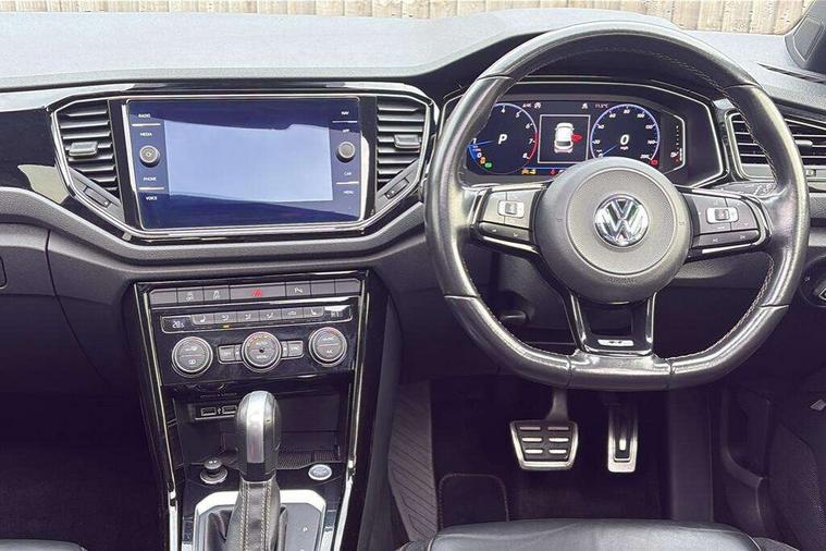 App-Connect, 'Lights On' Reminder warning buzzer, 2 USB connection charging sockets, Active Info Display, 10.3" high resolution TFT dash display screen with customised information, Adaptive cruise control with front assist, radar sensor controlled distance monitoring, city emergency braking, Automatic start/stop system, Bluetooth telephone and audio connection for compatible devices, Car information display, Car-Net Security and Service, Discover navigation, 8" touch screen navigation/infotainment system with Car-Net, European map, CD/radio, 2D/3D map and speed limiter, Driver alert system with audible and visual fatigue detection system, Driver tips and journey analysis, Driving profile selection - Eco, normal, sport or individual modes with Individual mode allows for steering, drive and air conditioning settings, Dusk sensor, Lane assist, Multifunction computer with visual gear change recommendation for fuel consumption, Race mode in driving programme selection, Service interval indicator, Think blue trainer driver tips and journey analysis, Ultrasonic front and rear optical and audible parking sensors, Unique R instrument cluster, Voice activation, Warning sound and light for doors and tailgate open, Warning sound and light for front seatbelts unfastened, 4MOTION active control, Battery regeneration during braking, Four wheel drive, DAB Digital radio, Dynamic navigation based on TMC+, Multi device interface (MDI) with USB connection, Music playback - MP3, WMA and AAC files, Premium USB cable in choice of either Apple or Android smartphone compatibility, SD card slot, Simultaneous pairing of 2 compatible mobile devices, SMS functionality - read, compose and send SMS messages using touch-screen display, Three route options - Fast, Short, Eco, Title and cover art display, Auto dimming interior rear view mirror, Black grained lower door protectors, Black grained wheel arches, Body colour bumpers with silver metallic underbody fascia, Body colour door handles, Body colour rear roof spoiler, Electrically foldable, adjustable and heated door mirrors with puddle lights and reverse activated kerb-view adjustment on passenger's door mirror, Front and rear electric windows, Front windscreen wiper with intermittent wipe and 4 position delay, Fully galvanised body, Heated rear window, High level 3rd brake light, LED darkened rear light clusters, LED rear number plate lights, Manual coming/automatic leaving home lighting function, Radiator grille with R Logo, Rain sensor, Rear tinted glass from B-pillar backwards approx 65% tinted, Rear wash/wipe with intermittent wipe setting, Unique R badging, Unique R design key, Unique R door sill protectors, 12V socket in centre console storage area, 2 Front and rear reading lights incorporating LED technology, 3 rear head restraints, 4 load lashing points in luggage compartment, Ambient lighting in front footwell and light strips below trim in front doors, Black roof lining and sun visors, Branded points of interest, Climate control - 2 zone electronic air conditioning with automatic air recirculation and allergy filter, Drawer under drivers seat, Front and rear carpet mats with grey contrast stitching, Front centre armrest with storage compartment, longitudinal and height adjustable and two rear air vents, Front cupholders x 2, Front footwell illumination, Front seat back storage pockets, Front seat backrest, Glovebox, Height adjustable front seats, Height/reach adjust steering wheel, Illuminated vanity mirrors, Instrument lighting, white adjustable panel illumination, Interior light delay, Isofix easy fit child seat preparation for 2 outer rear seats, Load through provision with single cup holder when folded down, Luggage compartment cover, removable, Luggage compartment lighting, Lumbar support for driver's and front passengers seat, Split folding rear seat backrests with centre armrest, Stainless steel pedals with brake and accelerator, Storage compartment in left and right luggage area, Storage compartment in rear doors, Storage compartments in driver and front passenger doors, Three spoke multifunction leather trimmed steering wheel with grey contrasting stitching and aluminium inserts with R logo, Unique R gear lever knob, R styling pack - T-Roc, 3 rear three point seatbelts, ABS, Black brake calipers with R logo, Curtain airbags, Driver and front passenger safety-optimised head restraints, Drivers and front passengers airbags with passengers deactivation switch, Electronic parking brake with auto hold, Electronic stability control (ESC) includes ASR, EDL, EDTC and trailer stabilisation function, Front seat side impact airbags, Predictive pedestrian protection, Rigid safety cell with front and rear crumple zones, Three point height adjust front seatbelts + pretensioners, Tyre pressure loss indicator, Ventilated front and rear disc brakes, Volkswagen roadside assistance, Alarm with interior protection and deactivation via infotainment system, Electronic engine immobiliser, Remote central locking with 2 remote folding keys, 19" Pretoria alloy wheels with anti-theft wheel bolts, Space and weight saver spare wheel,